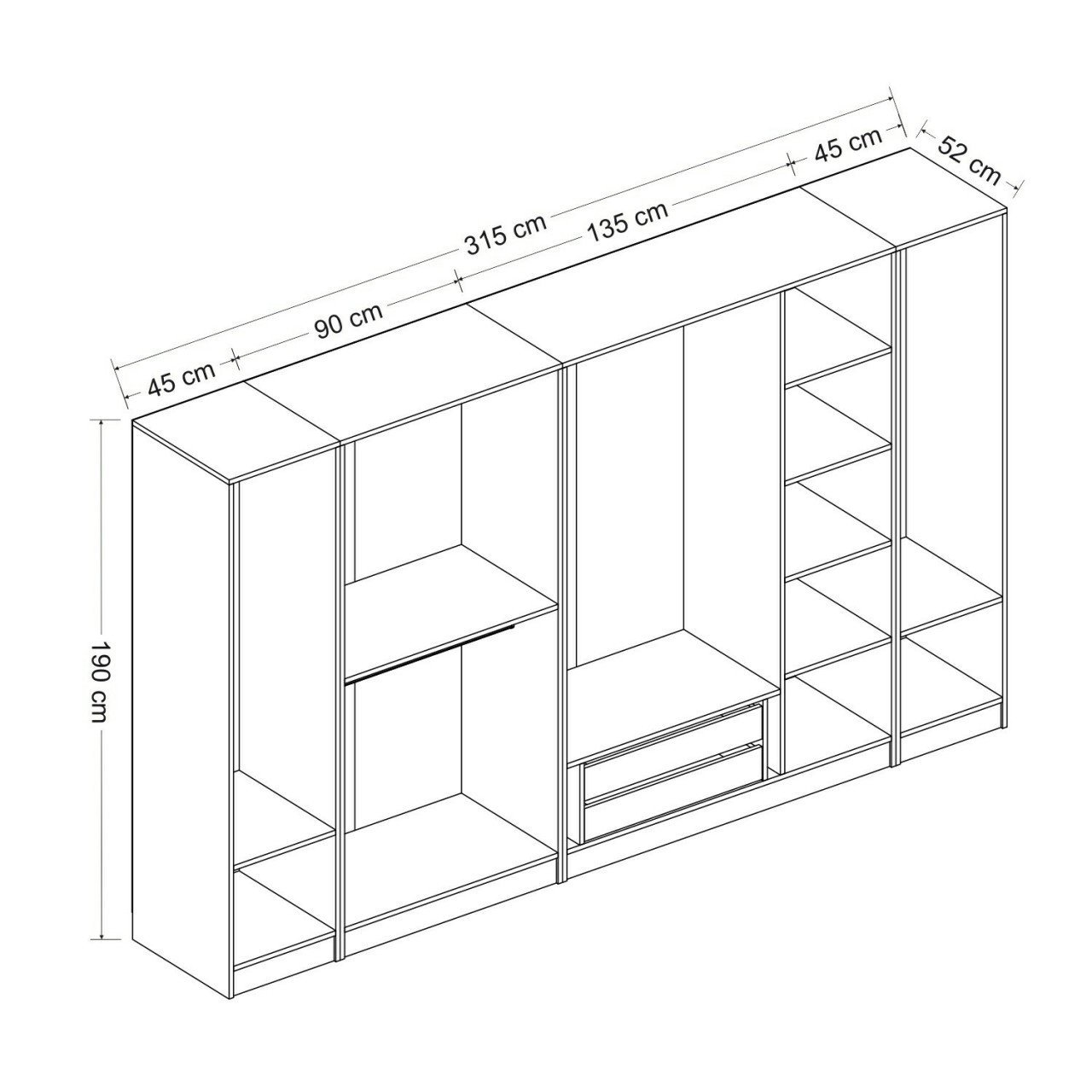 | Dolap Genişlik | : | 315 Cm |