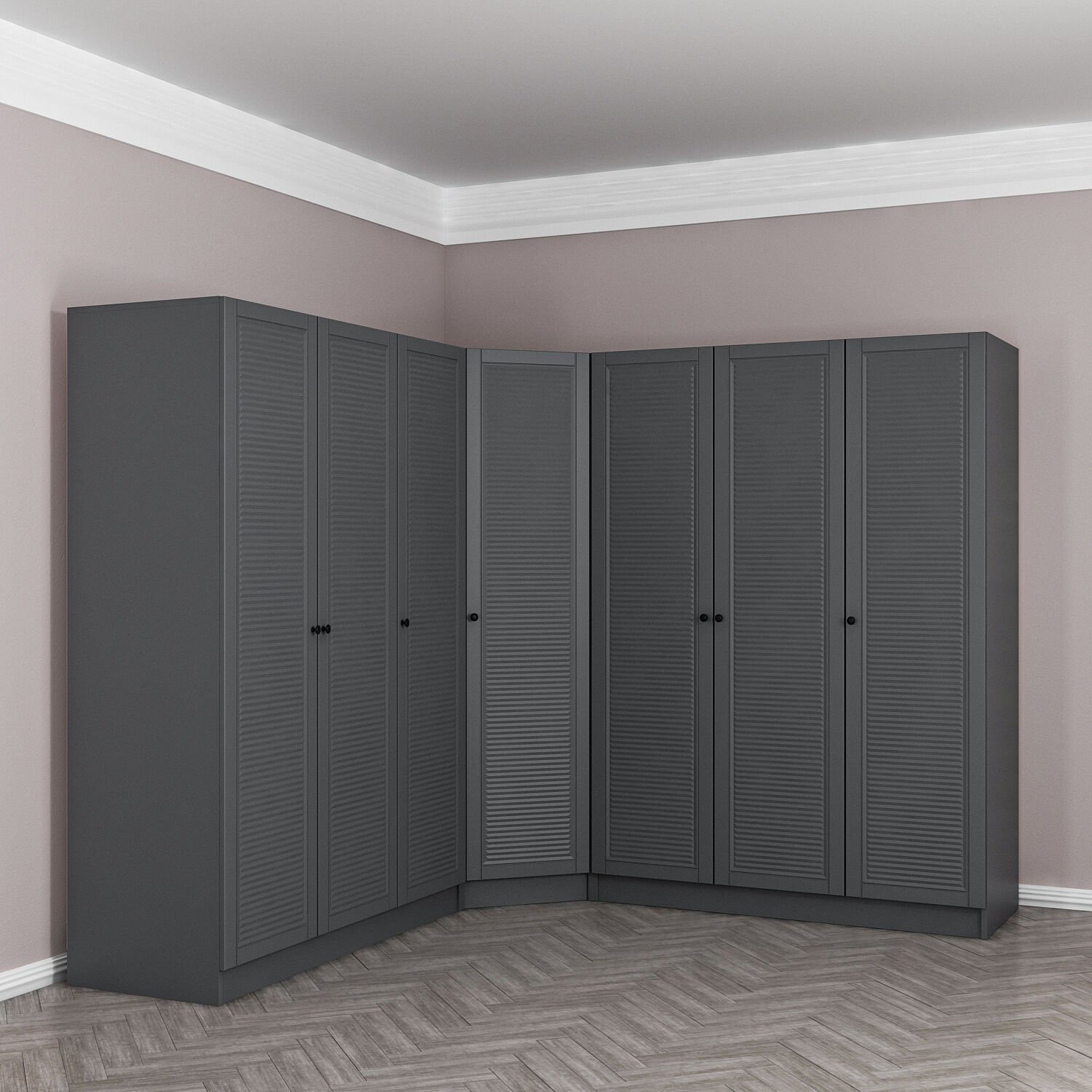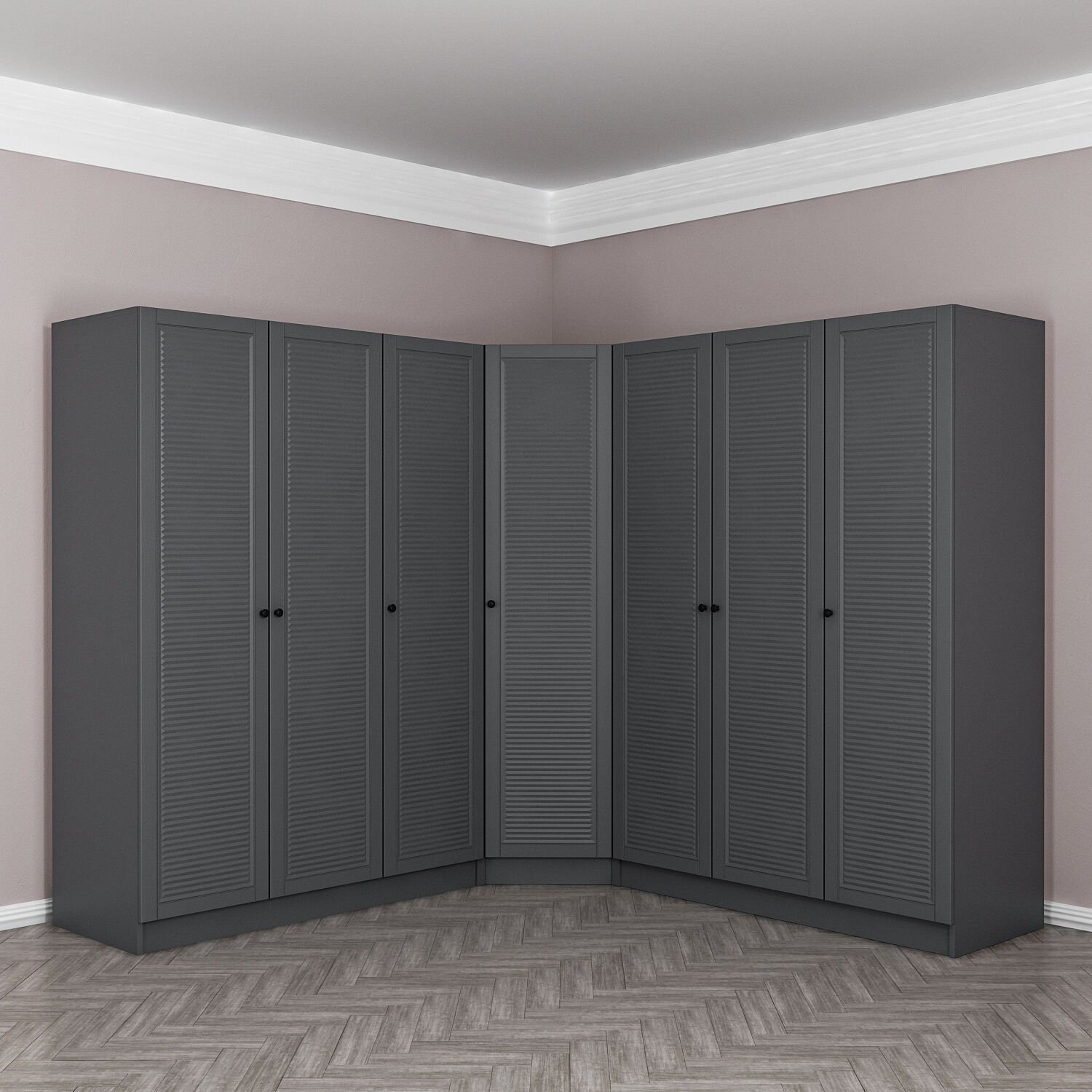 Kale 7 Kapaklı 4 Çekmeceli Köşe Dolap Antrasit Mebran Panjur