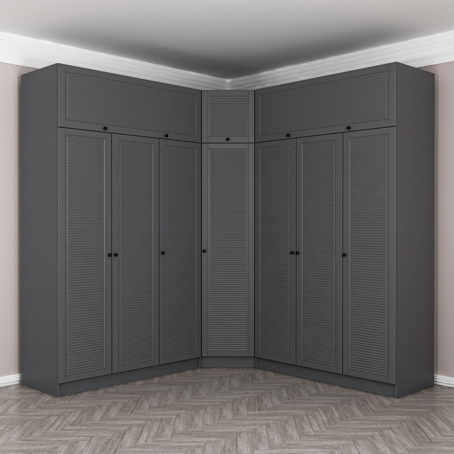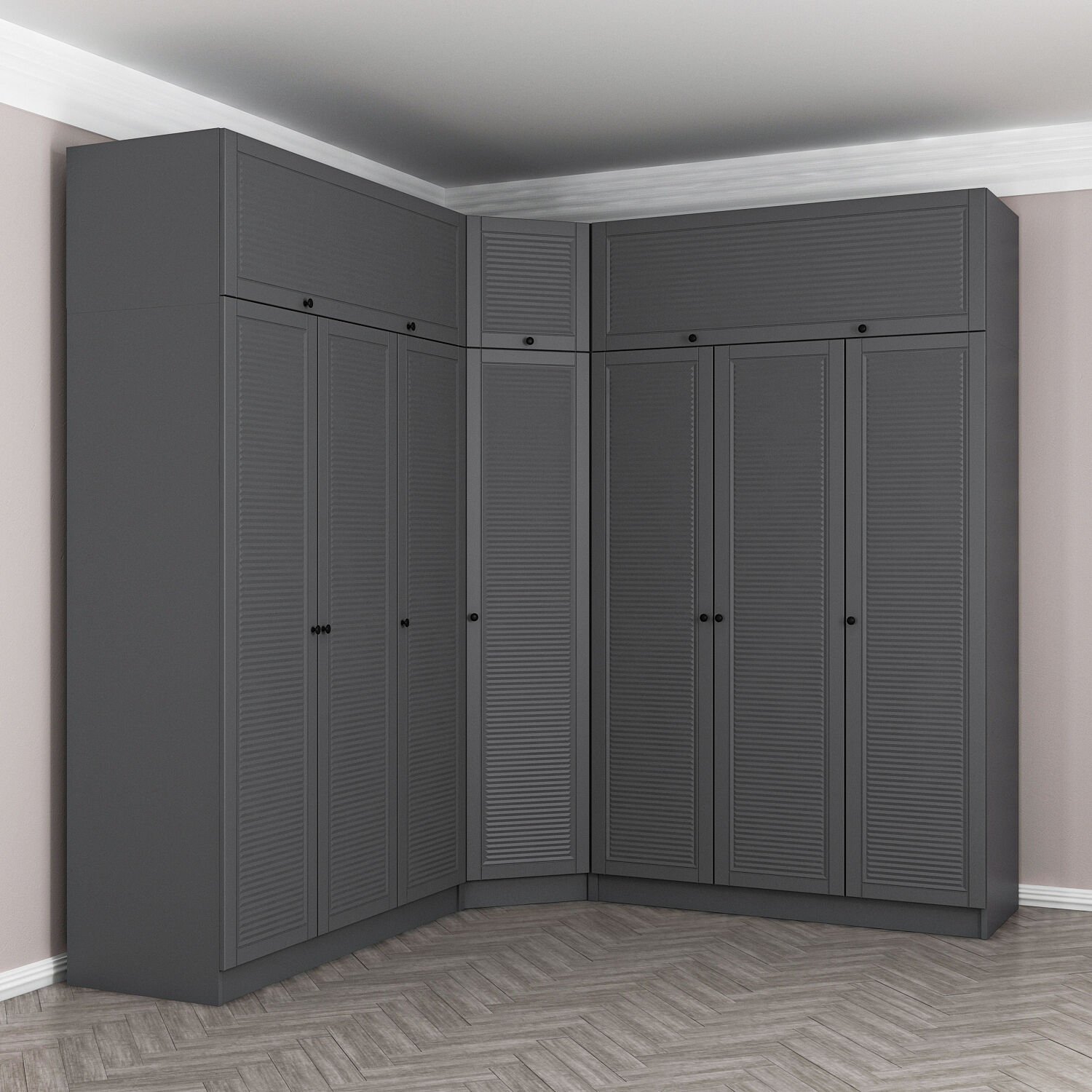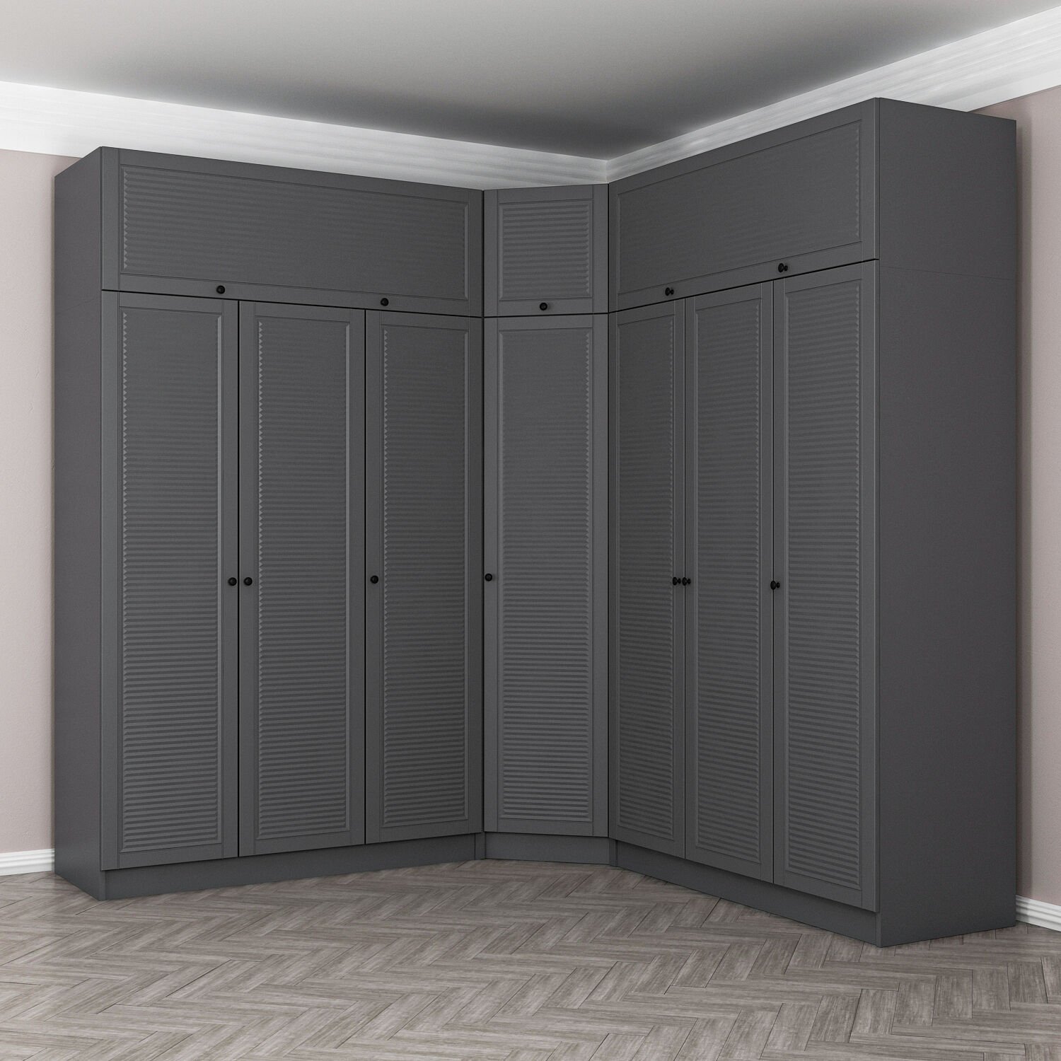 Kale 7 Kapaklı 4 Çekmeceli Köşe Dolap + Yüklük Antrasit Mebran Panjur