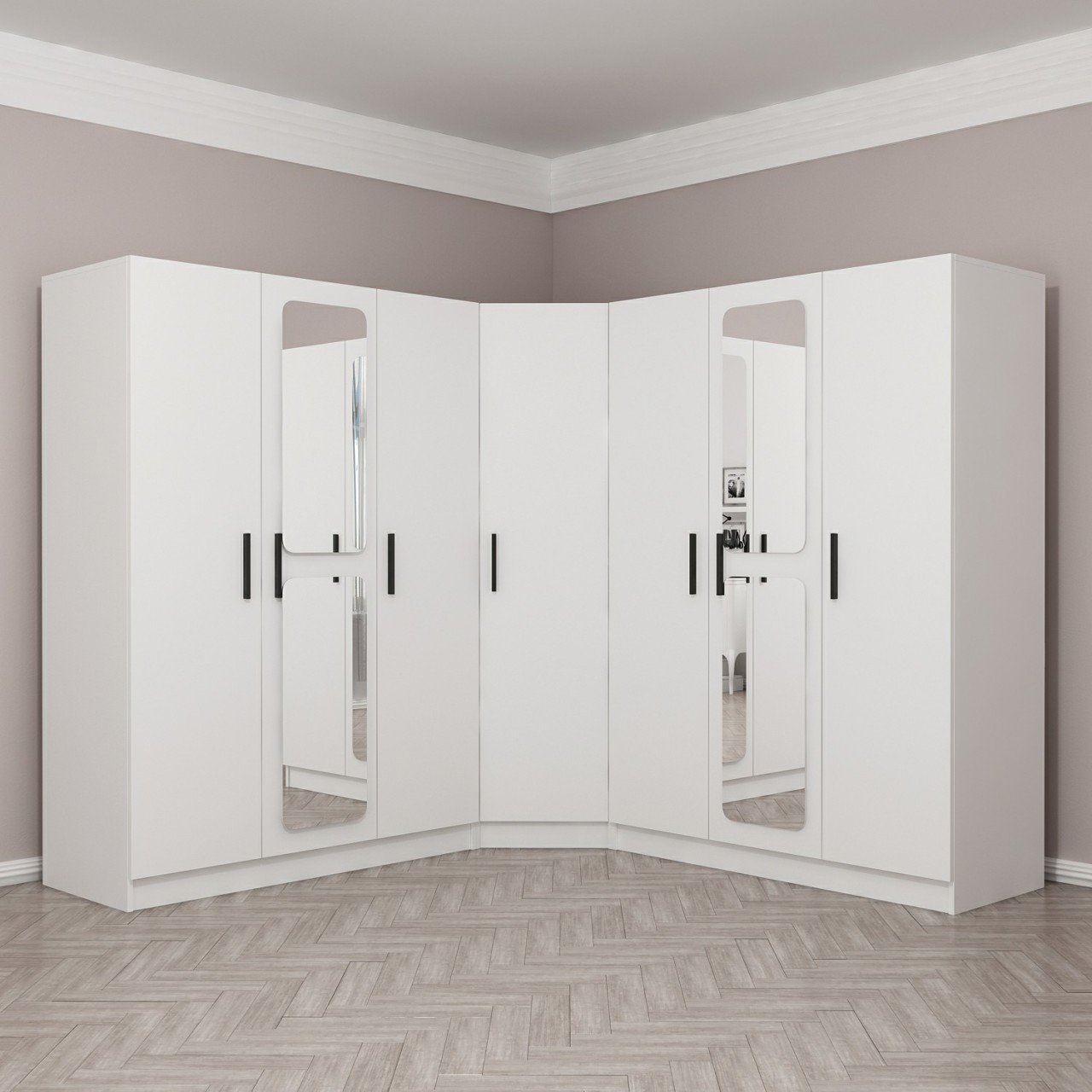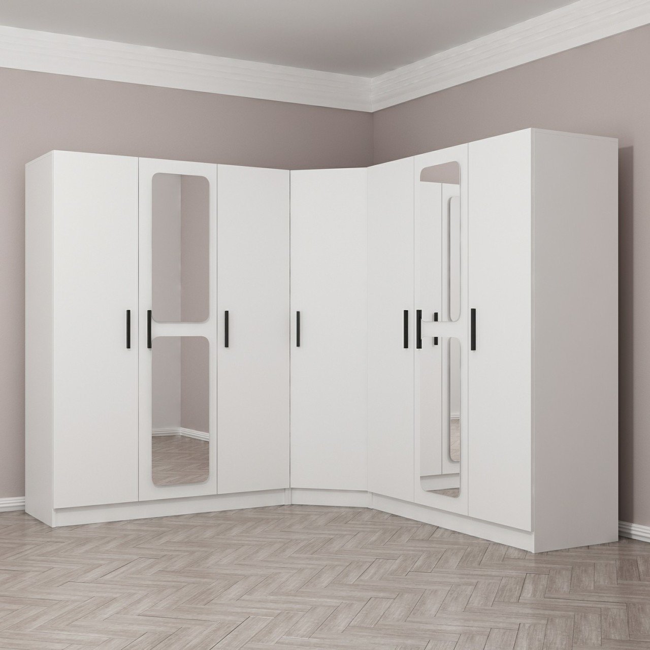Kale 7 Kapaklı Aynalı 4Ç Köşe Dolap - Beyaz