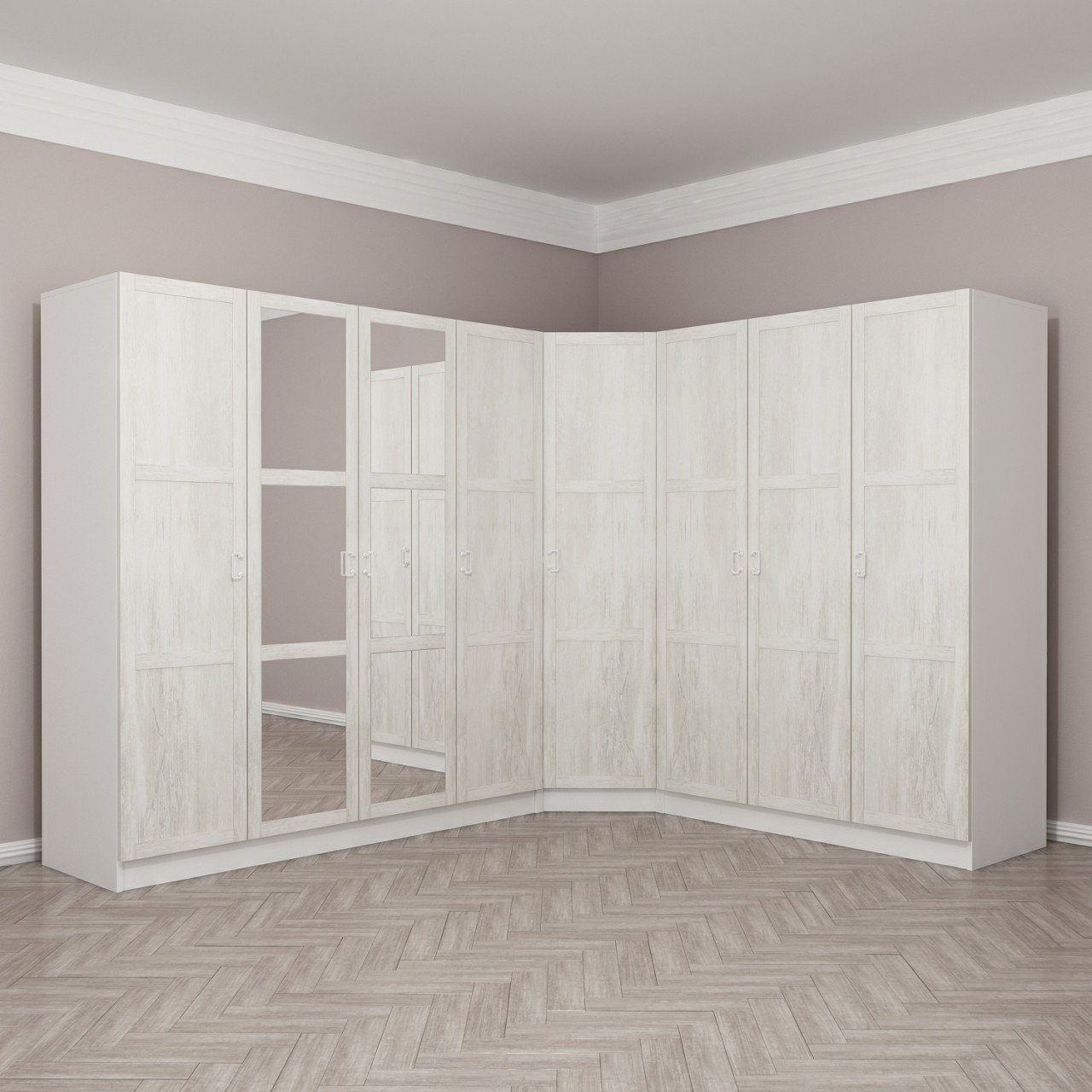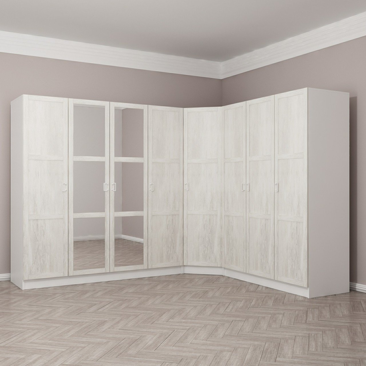 Kale 8 Country Kapaklı Aynalı 4Ç Köşe Dolap - Eskitme Beyaz