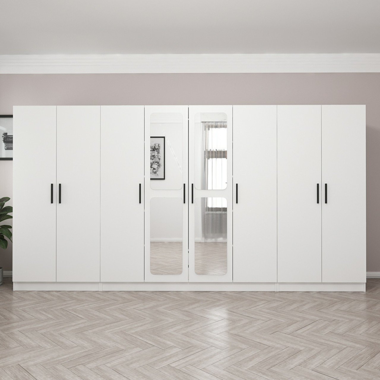 Kale 8 Kapak Aynalı 2 Çekmece Zincir Dolap - Beyaz 210CM