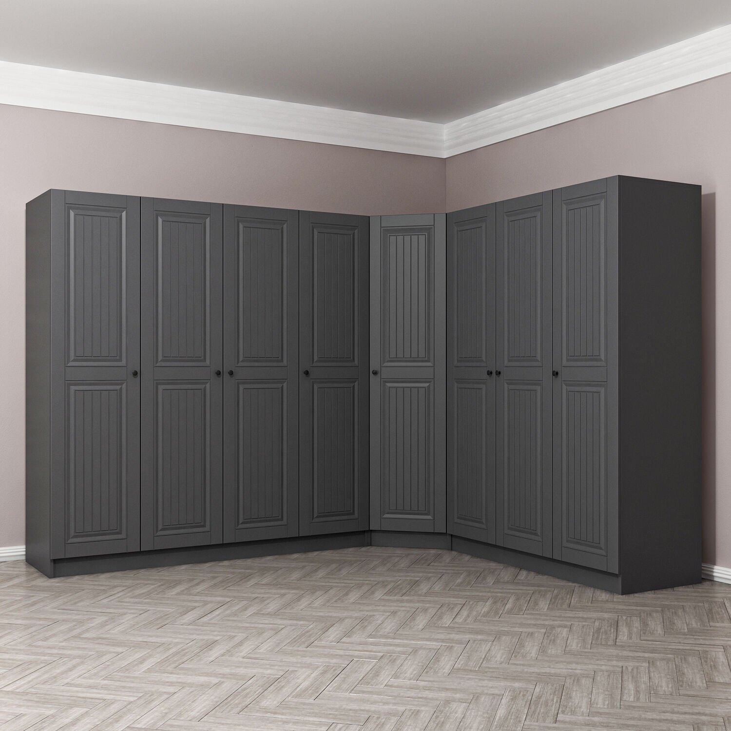 Kale 8 Kapaklı 4 Çekmeceli Köşe Dolap Antrasit Mebran İlkbahar