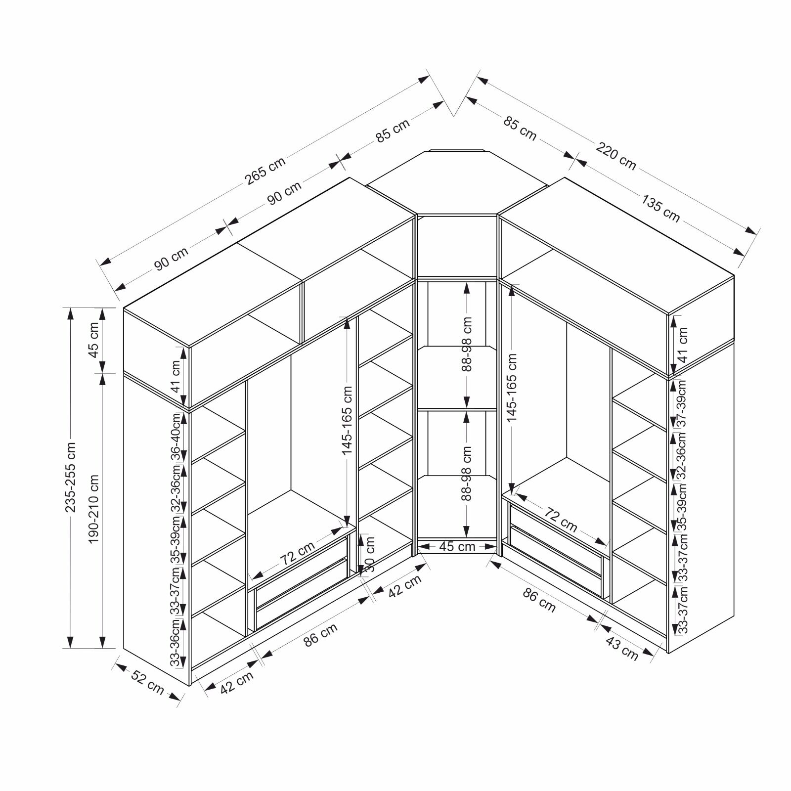 | Dolap Yükseklik | : | 235 cm, 255 cm |