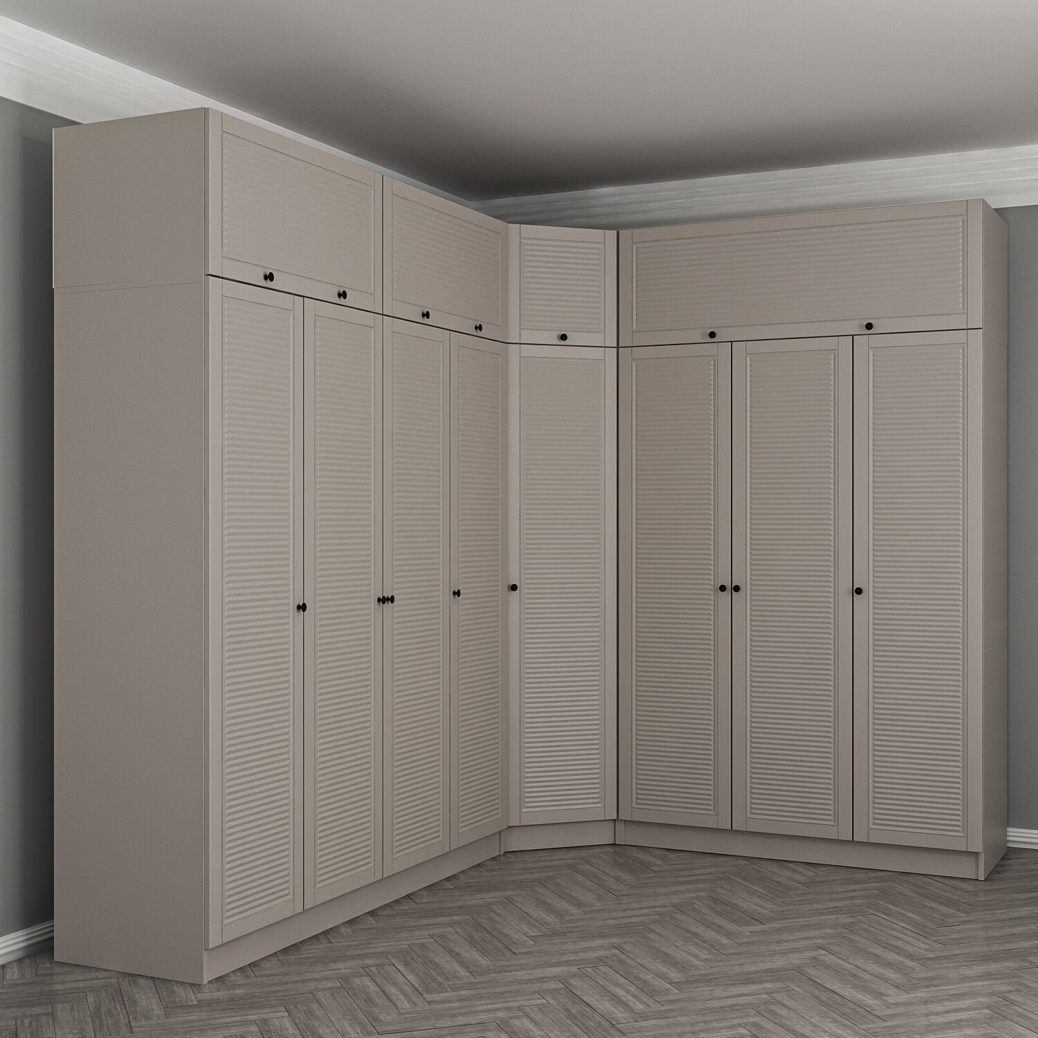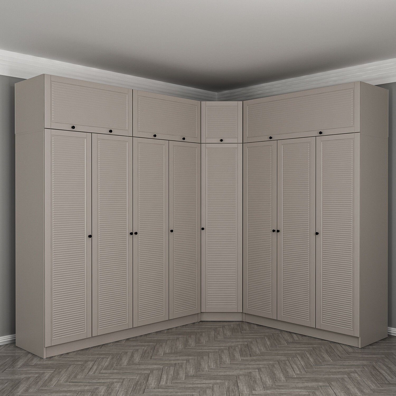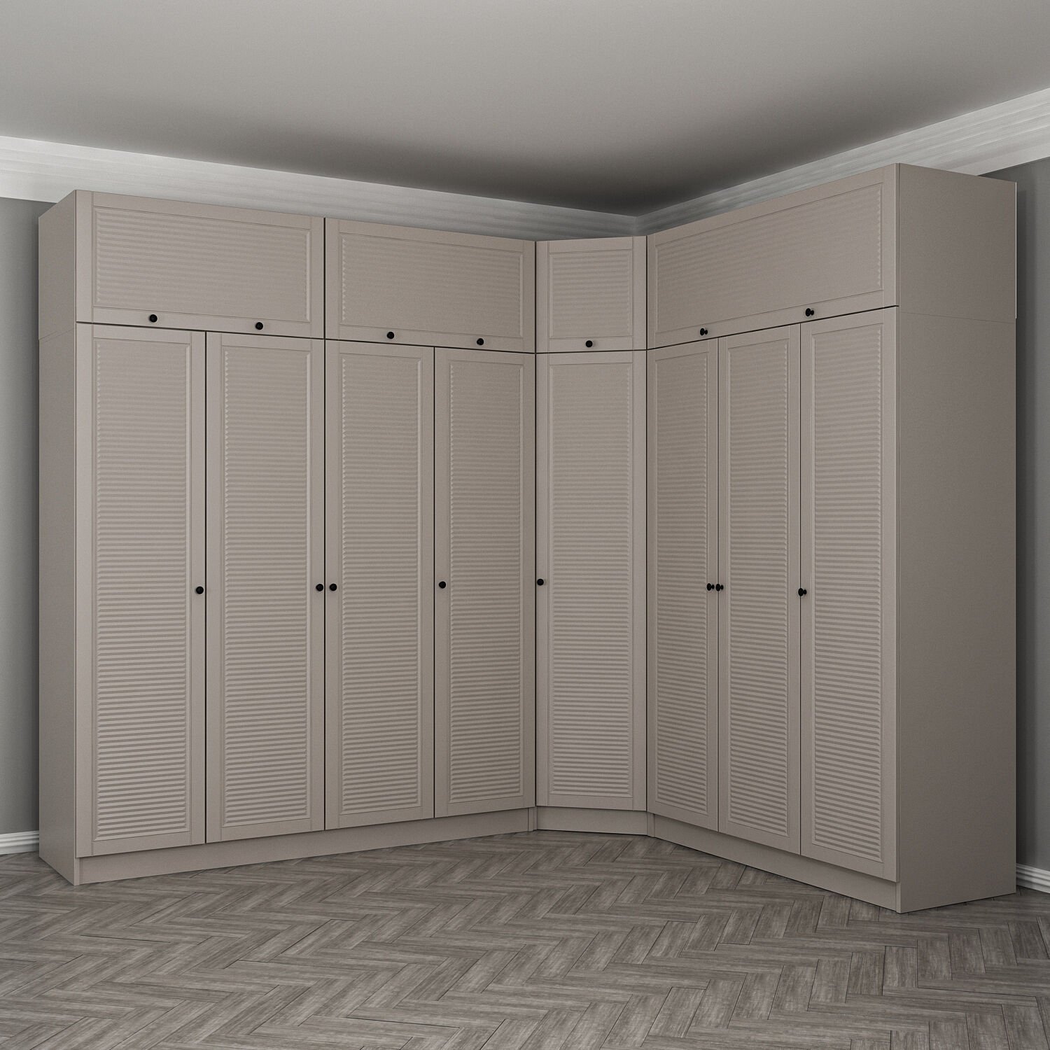 Kale 8 Kapaklı 4 Çekmeceli Köşe Dolap + Yüklük Kumtaşı Mebran Panjur