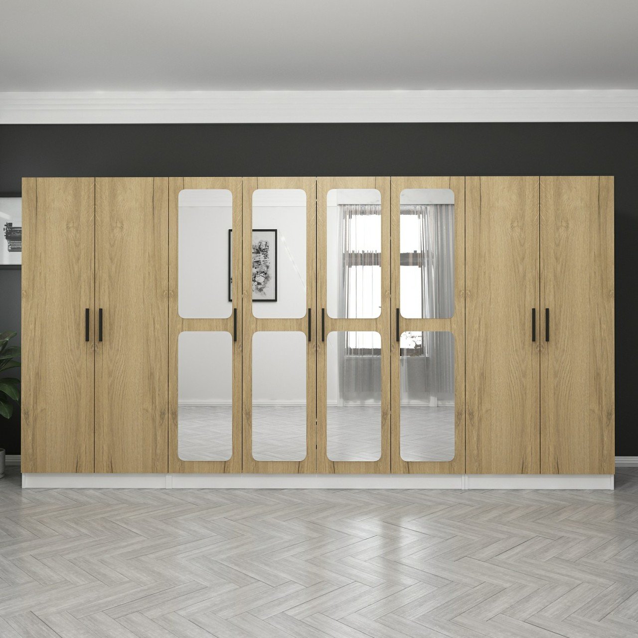Kale 8 Kapaklı Aynalı 2Ç Dolap - Pera Ceviz