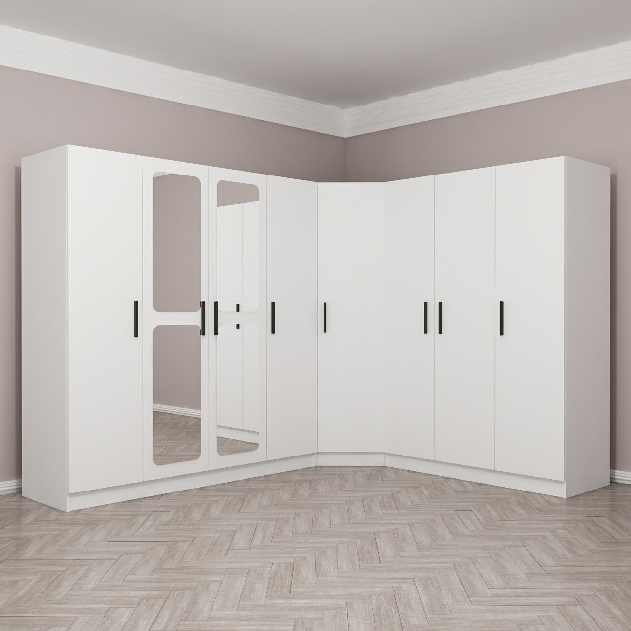 Kale 8 Kapaklı Aynalı 4Ç Köşe Dolap - Beyaz