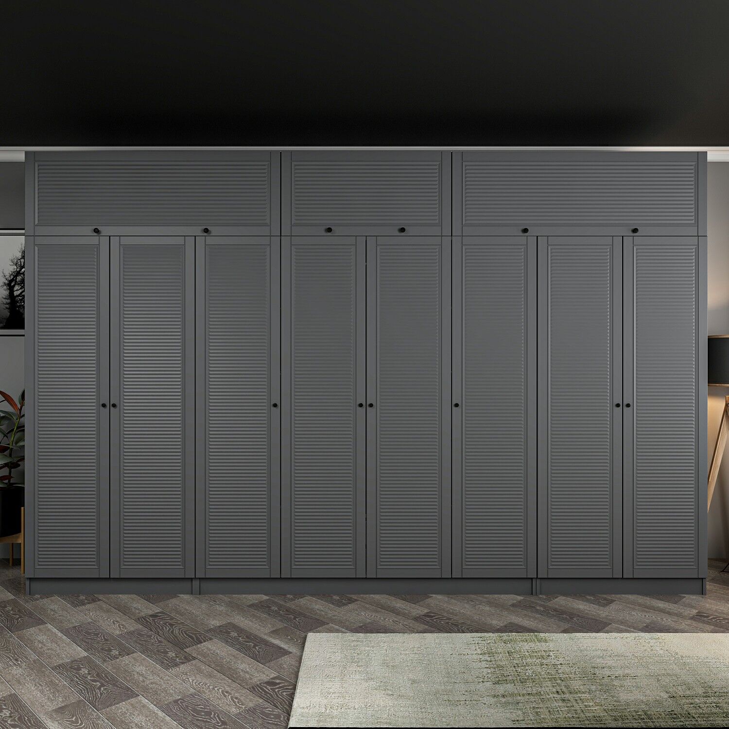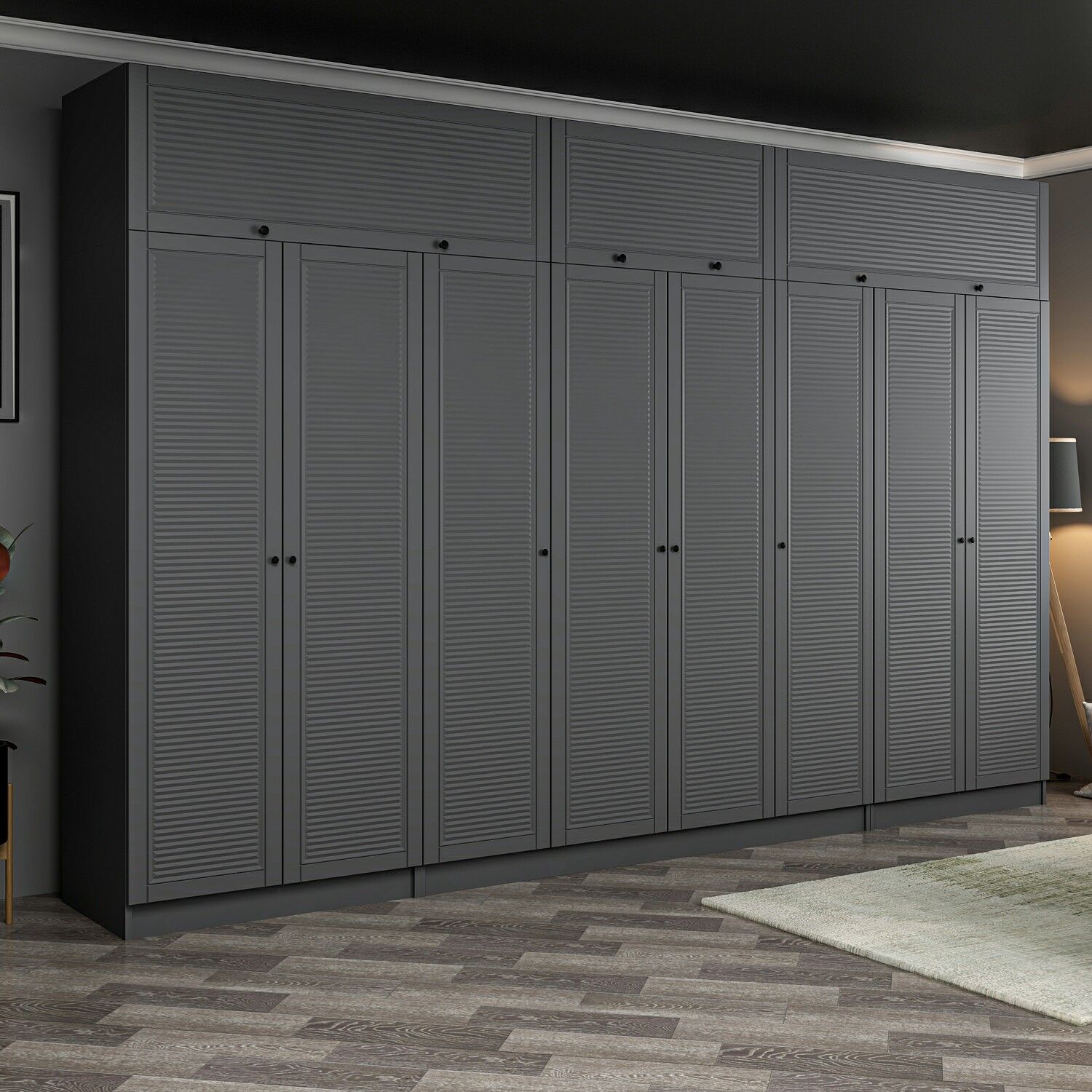 Kale 8 Mebran Panjur Kapaklı 2 Çekmeceli Dolap Ve Yüklük Antrasit 255CM