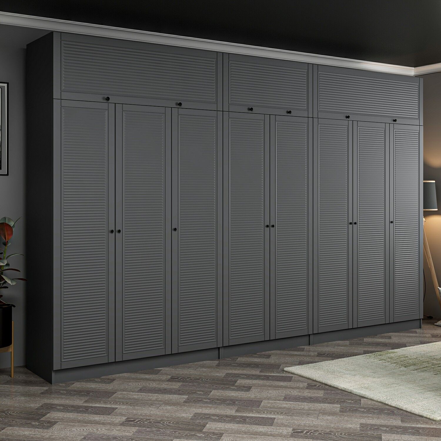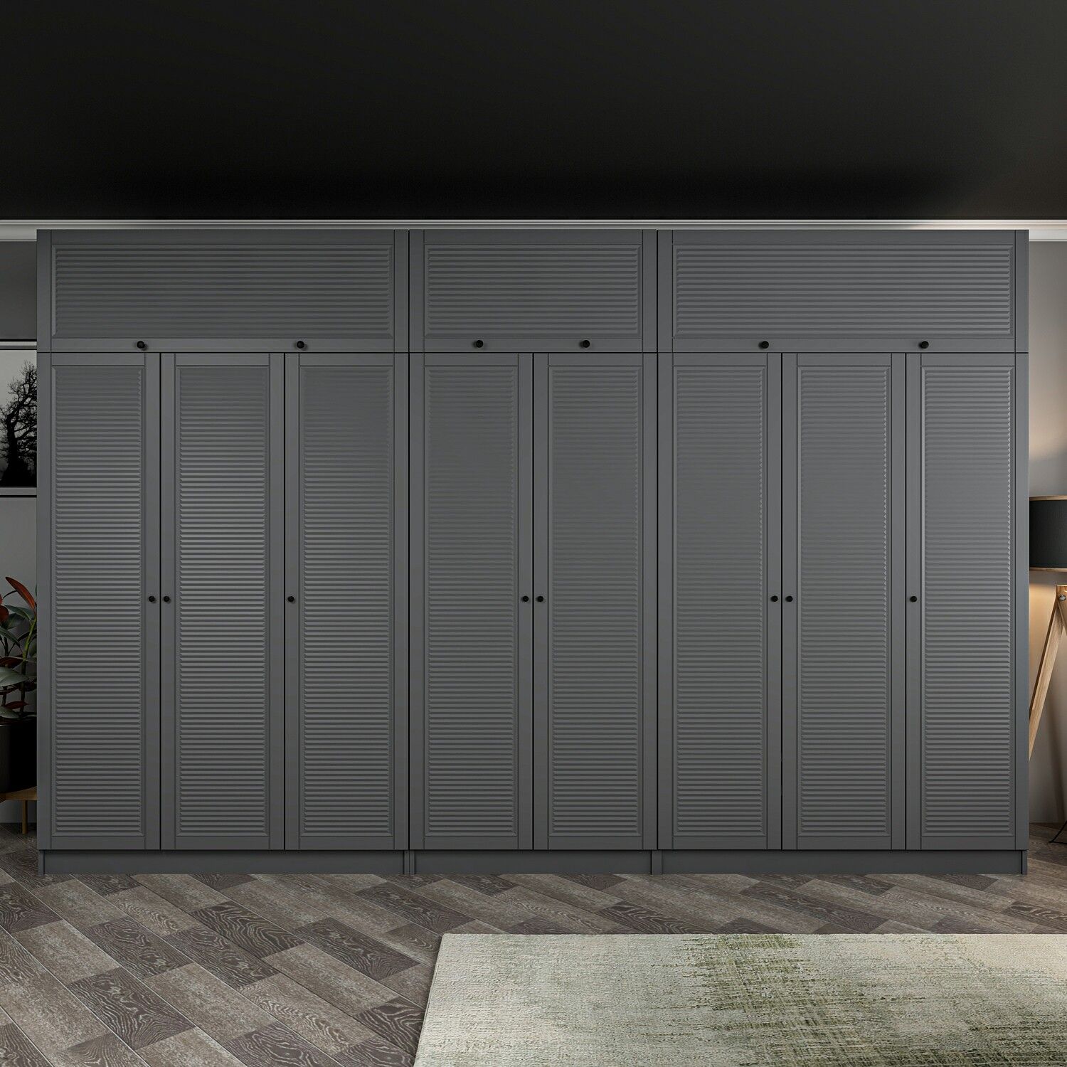 Kale 8 Mebran Panjur Kapaklı 4 Çekmeceli Dolap Ve Yüklük Antrasit 255CM