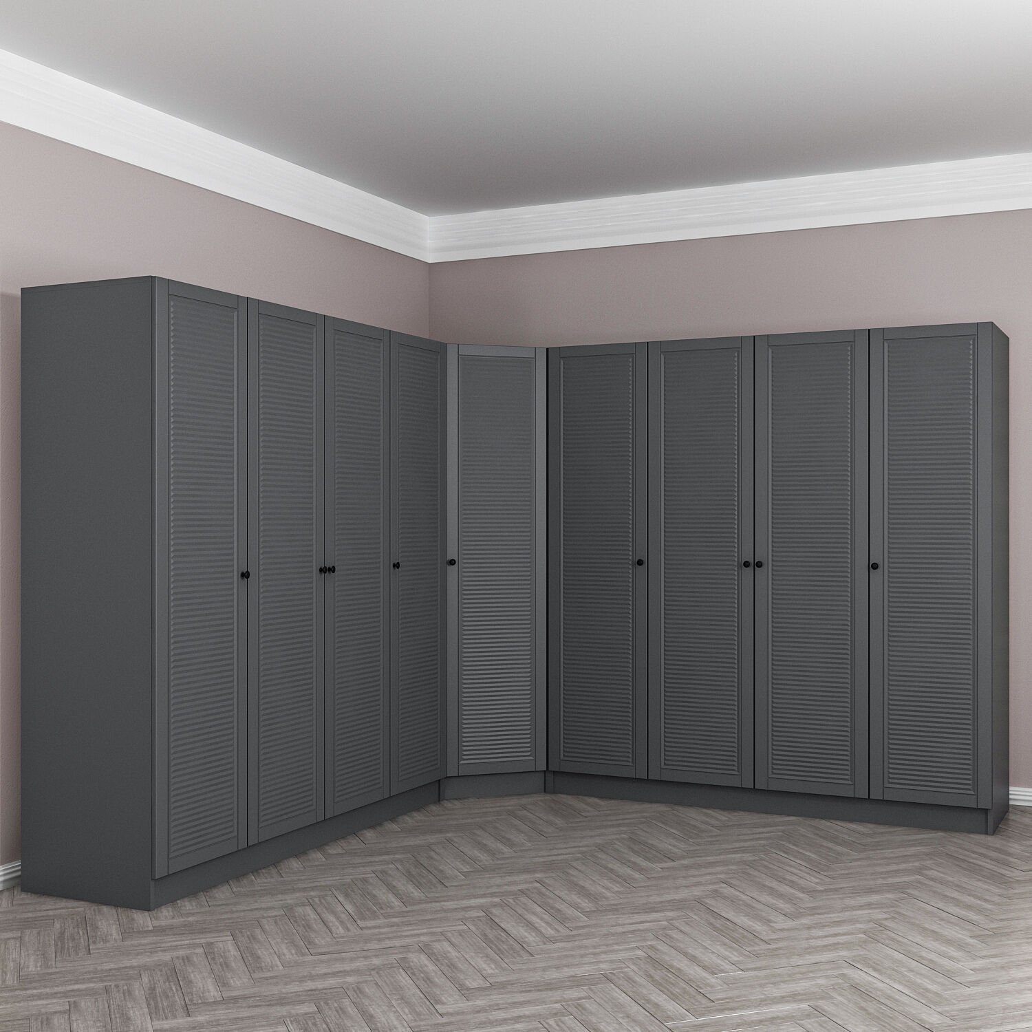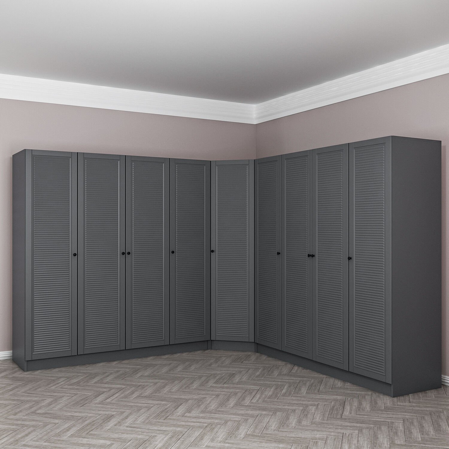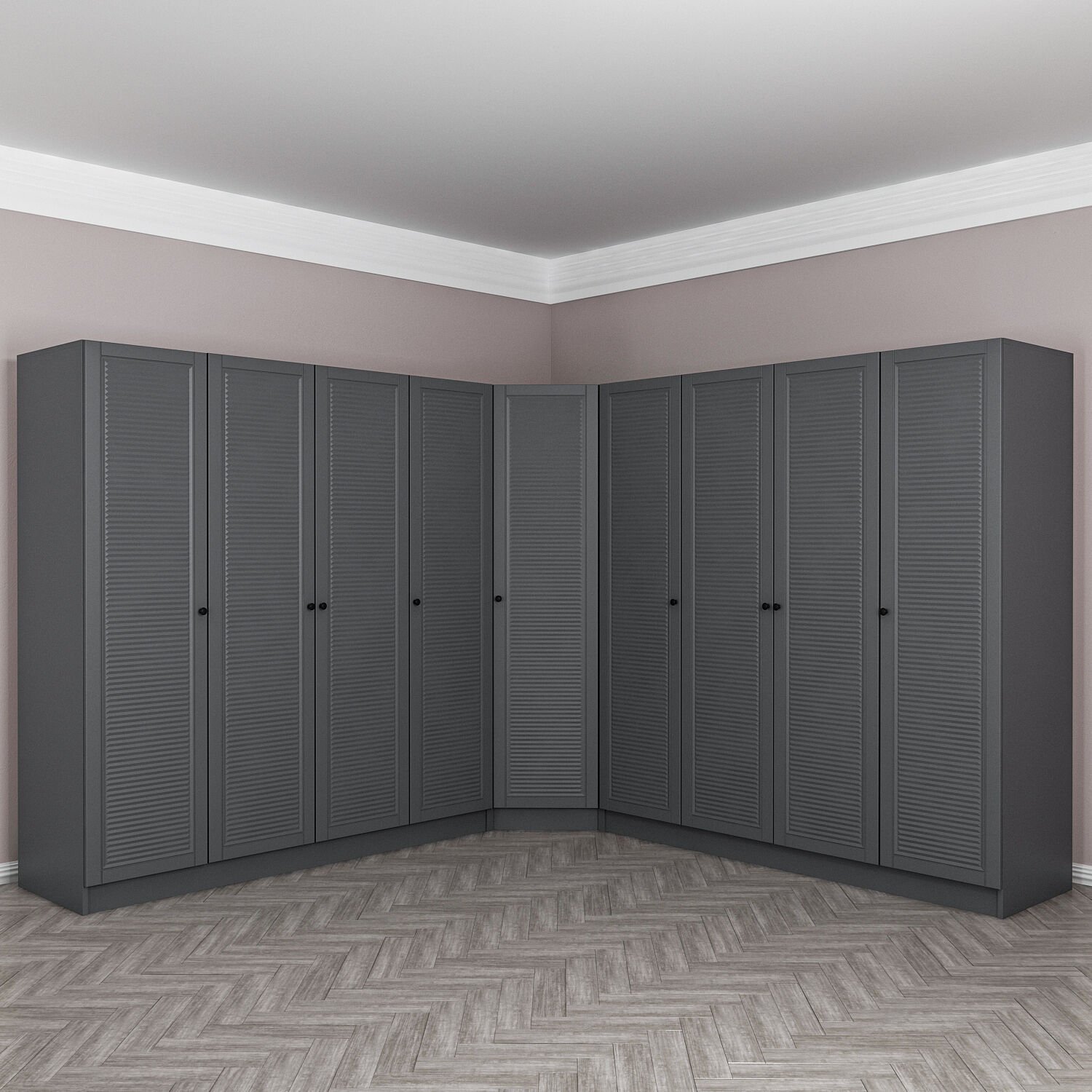Kale 9 Kapaklı 4 Çekmeceli Köşe Dolap Antrasit Mebran Panjur