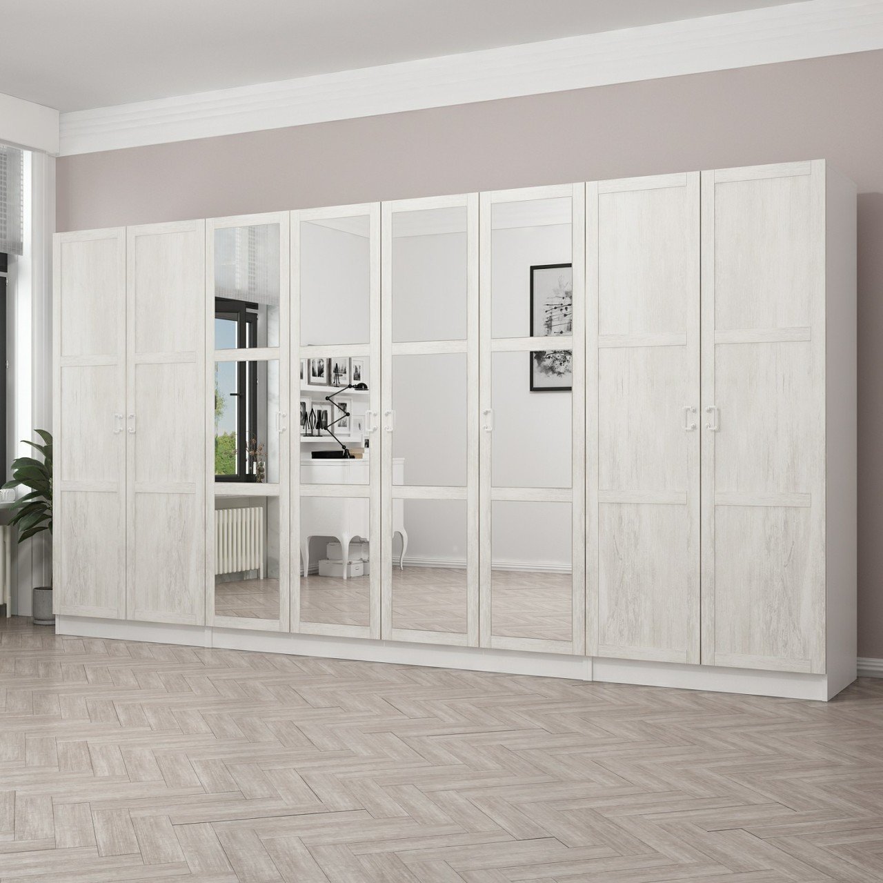 Kale Country 8 Kapak Aynalı 2Ç Zincir Dolap - Eskitme Beyaz
