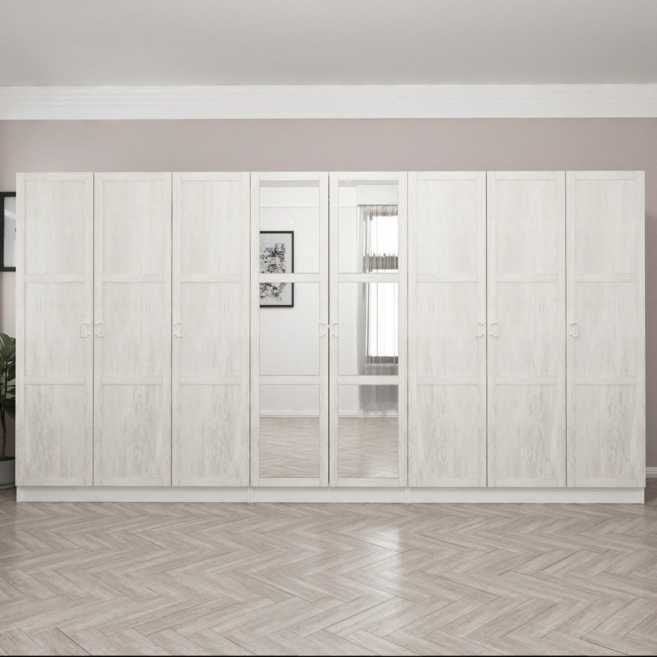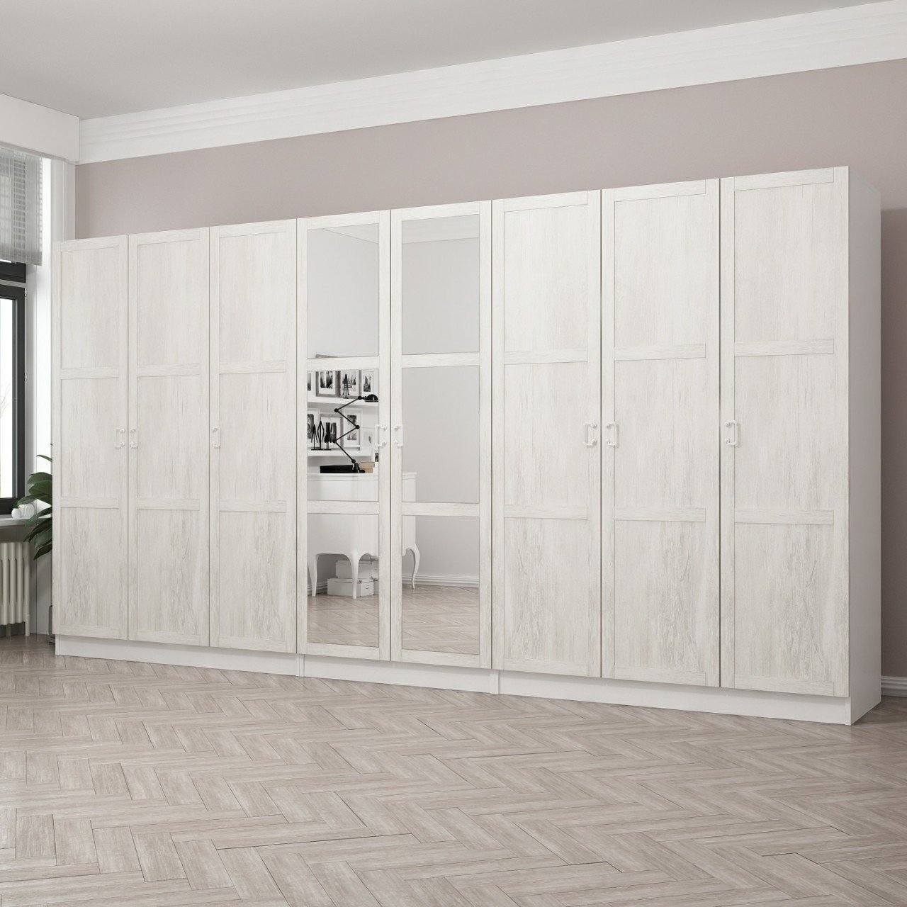 Kale Country 8 Kapak Aynalı 4Ç Zincir Dolap - Eskitme Beyaz