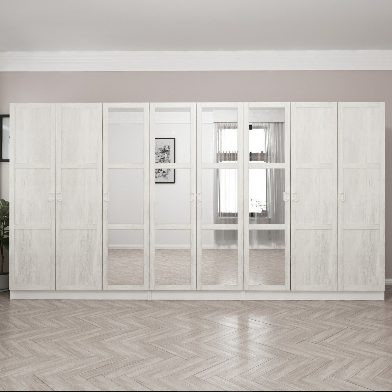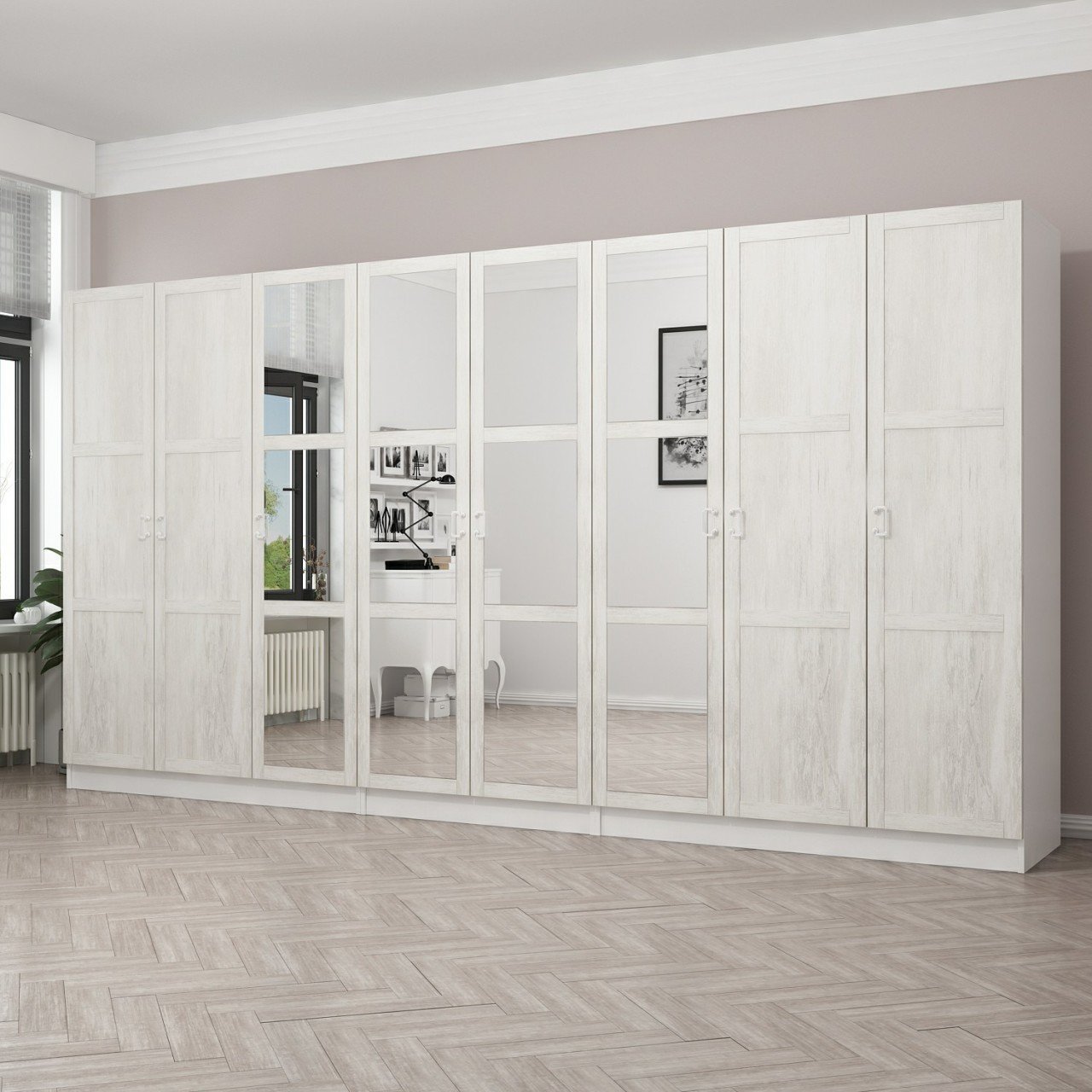 Kale Country 8 Kapak Aynalı 4Ç Zincir Dolap - Eskitme Beyaz