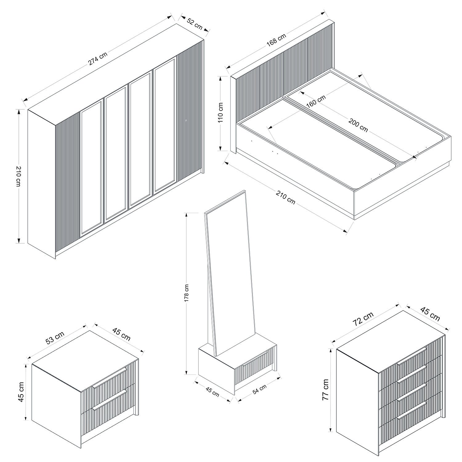 Kale Luxe Yatak Odası Takımı - Kumtaşı, modern ve şık tasarımıyla yatak odalarına zarafet katar. Takım; 6 kapaklı geniş gardrop, 160x200 ölçülerinde baza ve başlık seti, 4 çekmeceli şifonyer, 2 adet 2 çekmeceli komodin ve boy aynasından oluşur. Kumtaşı renginin sıcak ve doğal tonları, odanıza huzurlu ve modern bir atmosfer kazandırır. Geniş depolama alanı sunan gardrop ve çekmeceler, eşyalarınızı düzenli ve kolayca ulaşılabilir şekilde saklamanıza yardımcı olur. Dayanıklı malzeme yapısı sayesinde uzun yıllar güvenle kullanılabilir. Kale Luxe Yatak Odası Takımı, estetik ve fonksiyonelliği bir araya getirerek yaşam alanınızı mükemmel bir şekilde tamamlar.| Yatak Odası Takımı Renk | : | Kumtaşı |