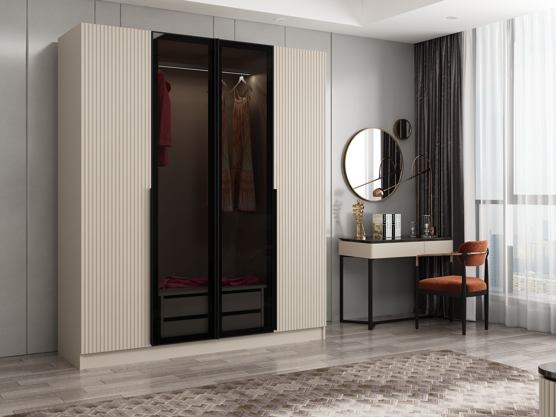 Dolap Kapak Rengi | : | Füme Cam, Kumtaşı |
