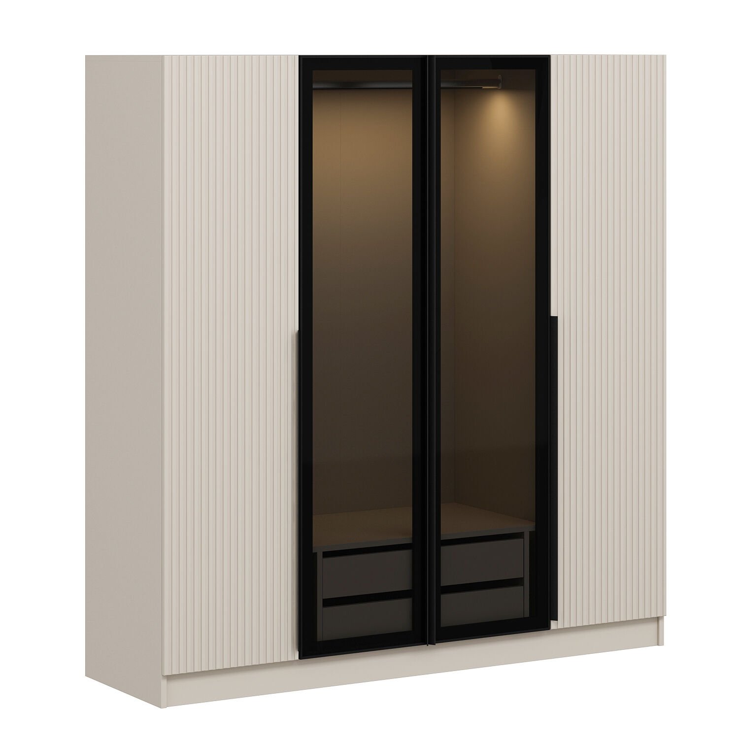 Kale Plus 4 Mebran Kapaklı 2 Çekmeceli Dolap Kumtaşı Mebran Füme Cam