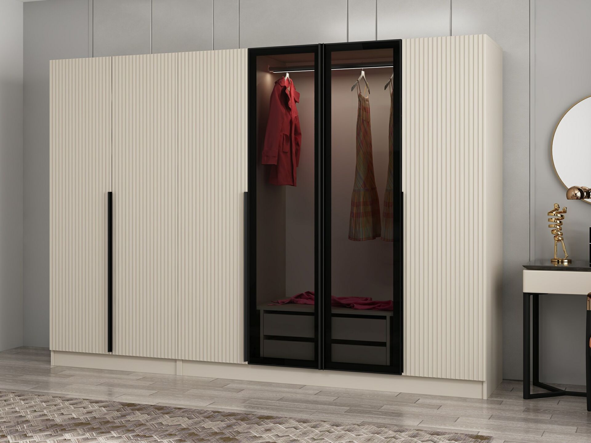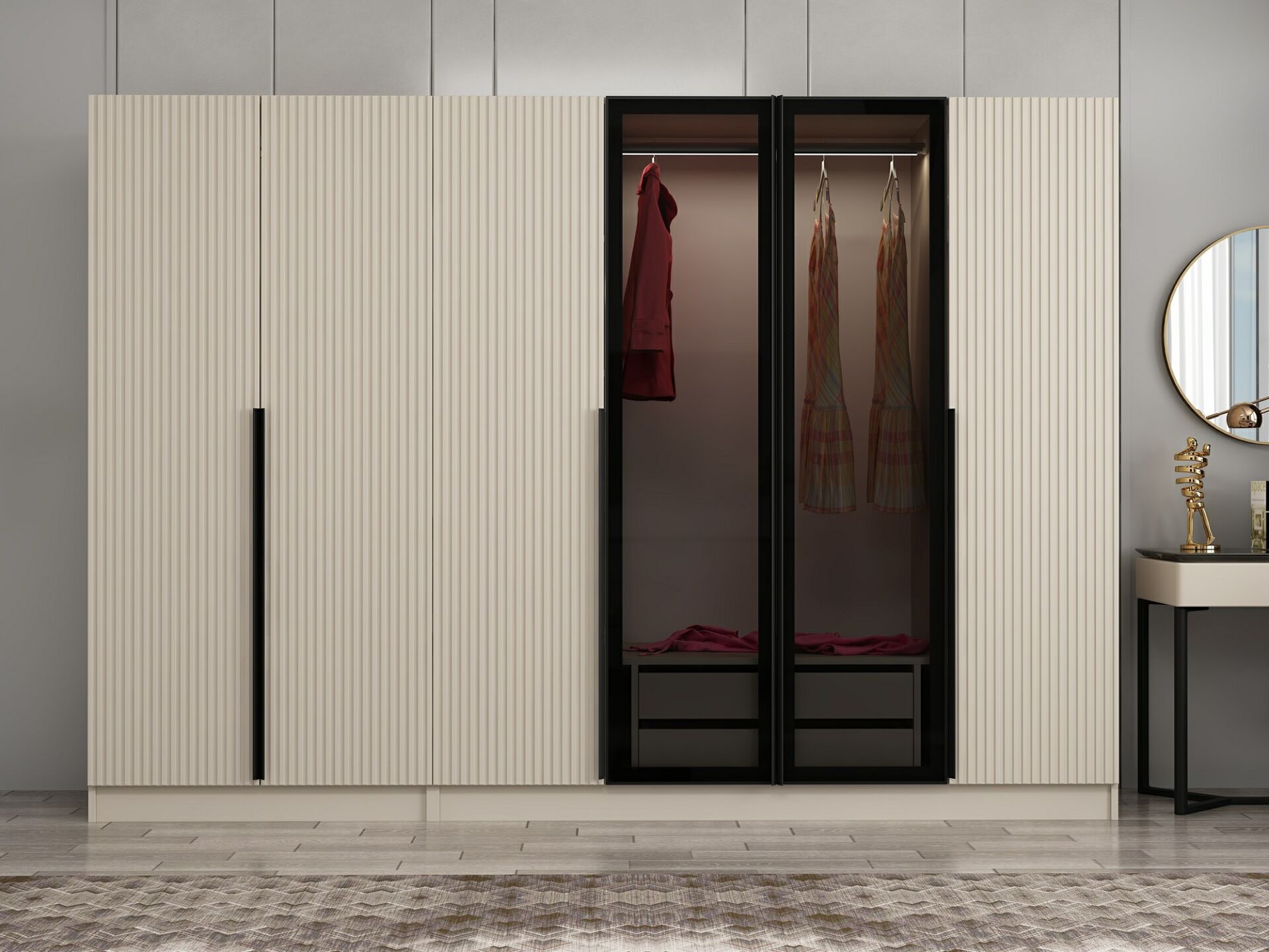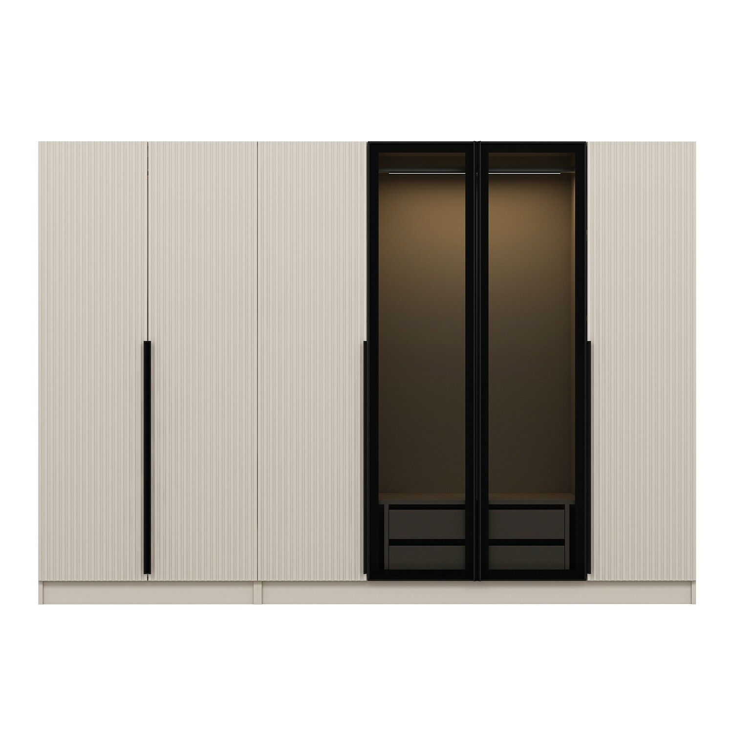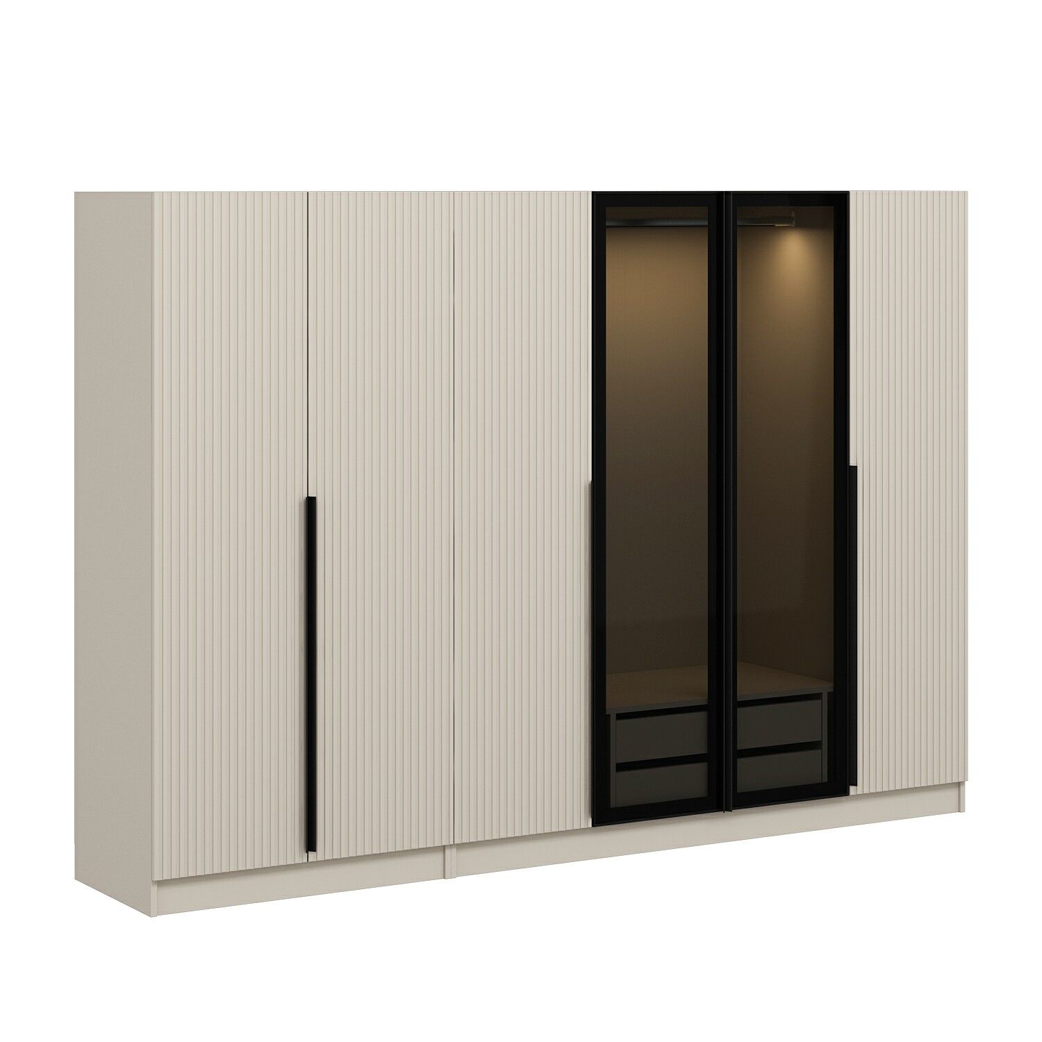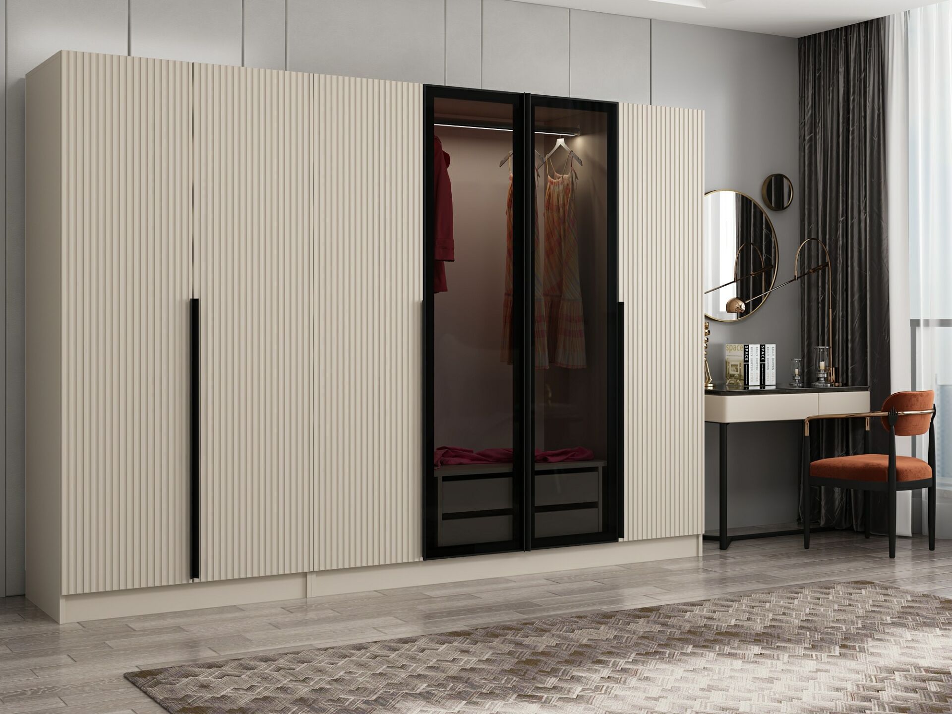 Kale Plus 6 Mebran Kapaklı 2 Çekmeceli Dolap Kumtaşı Mebran Füme Cam