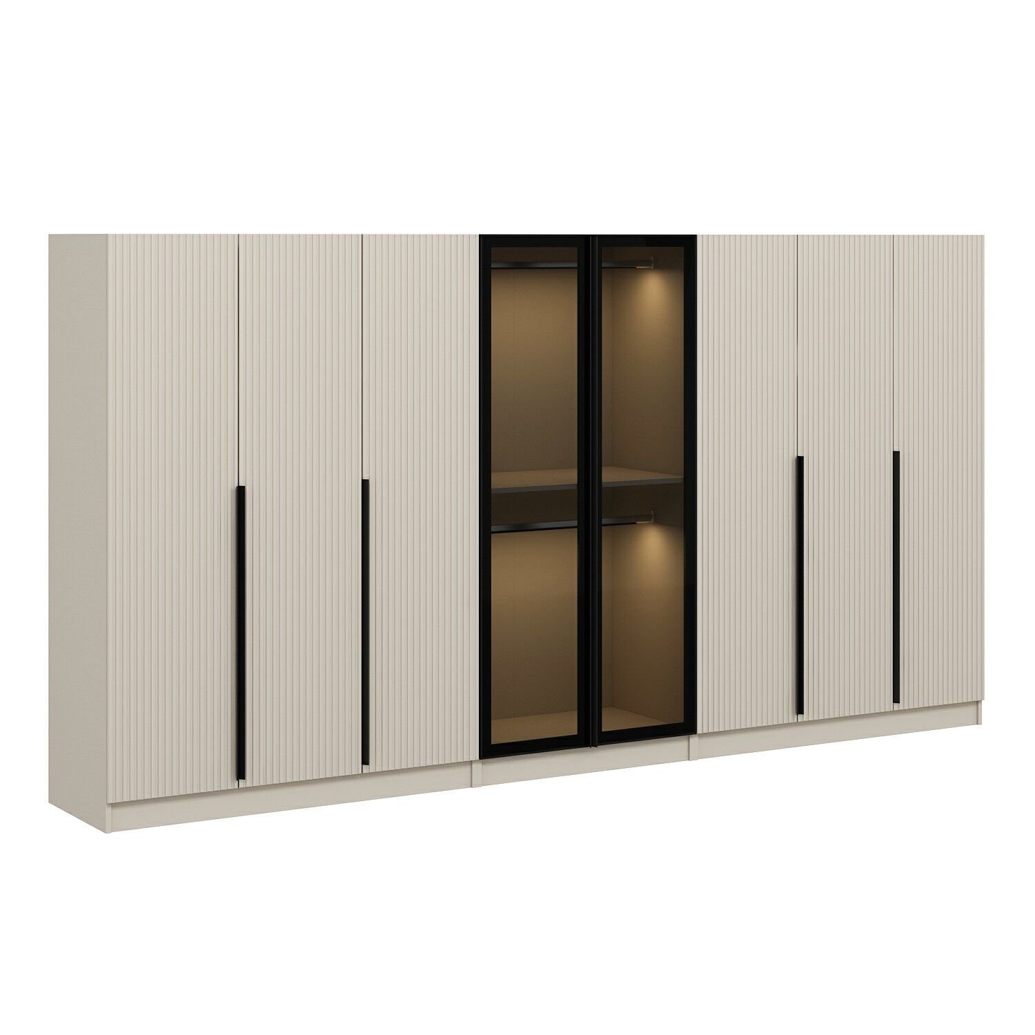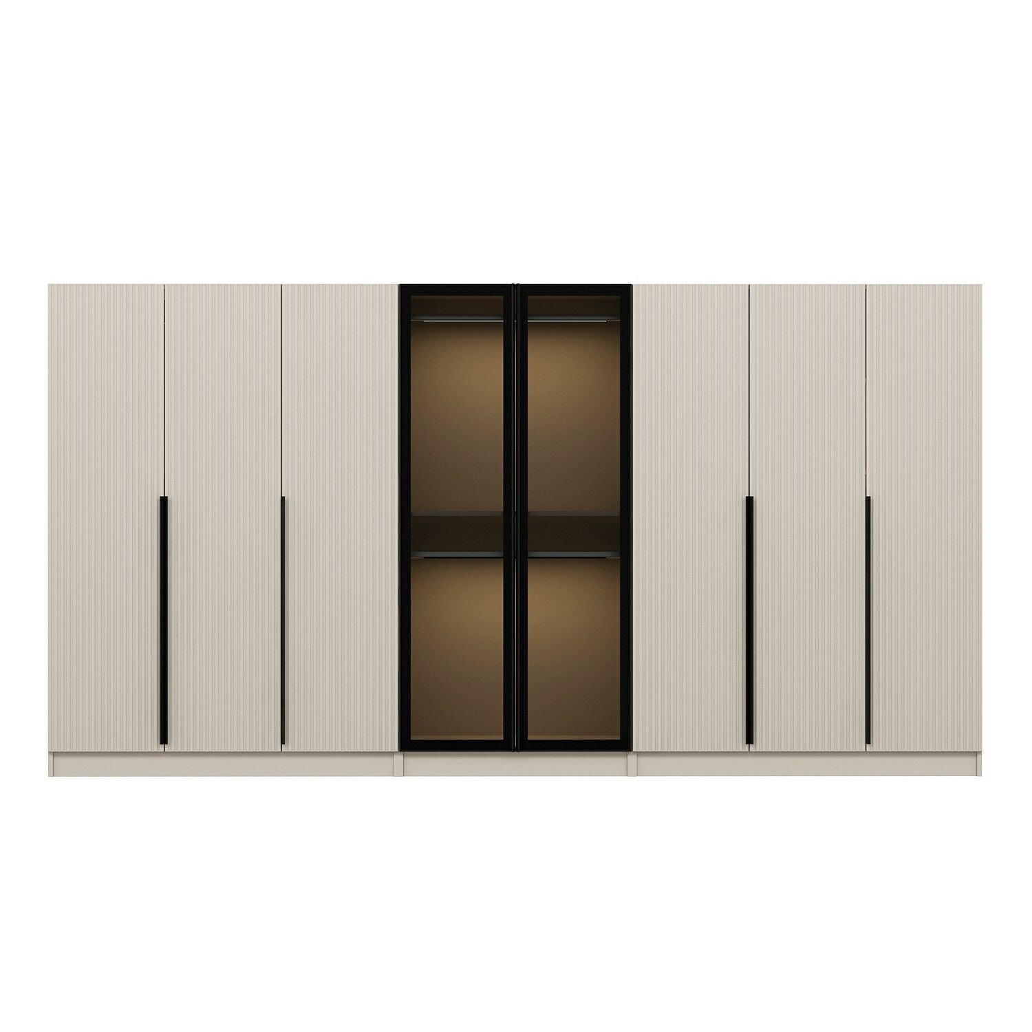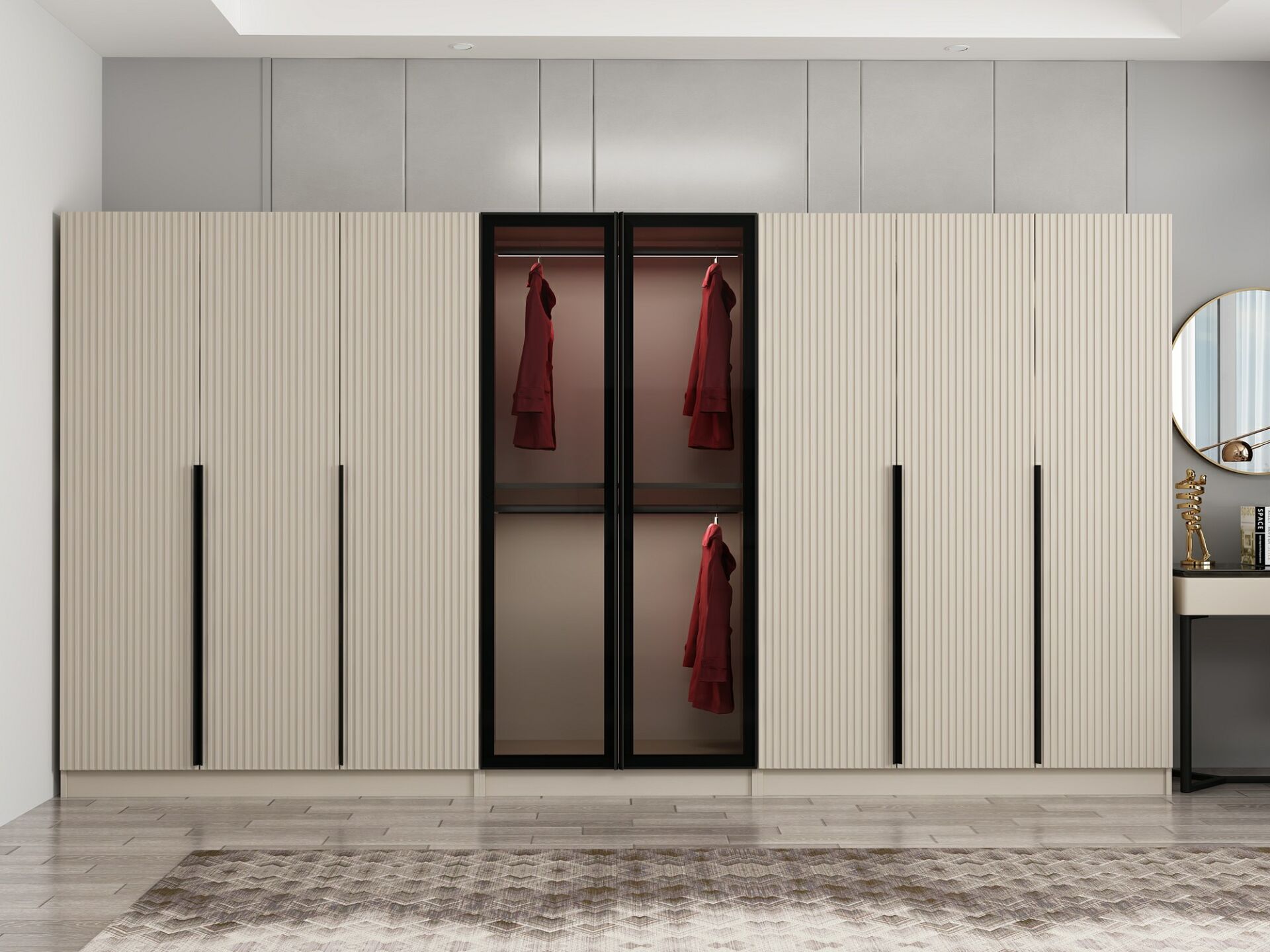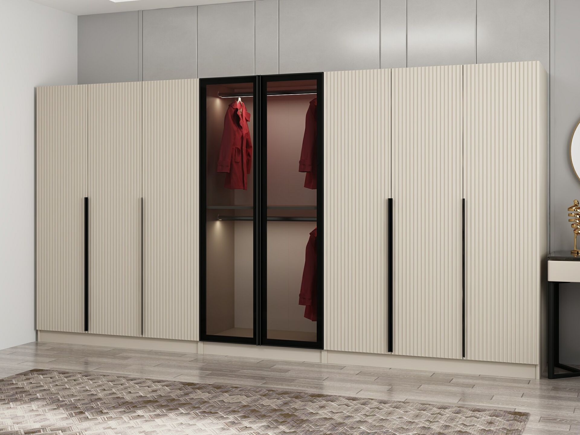 Kale Plus 8 Mebran Kapaklı 4 Çekmeceli Dolap Kumtaşı Mebran Füme Cam 190CM