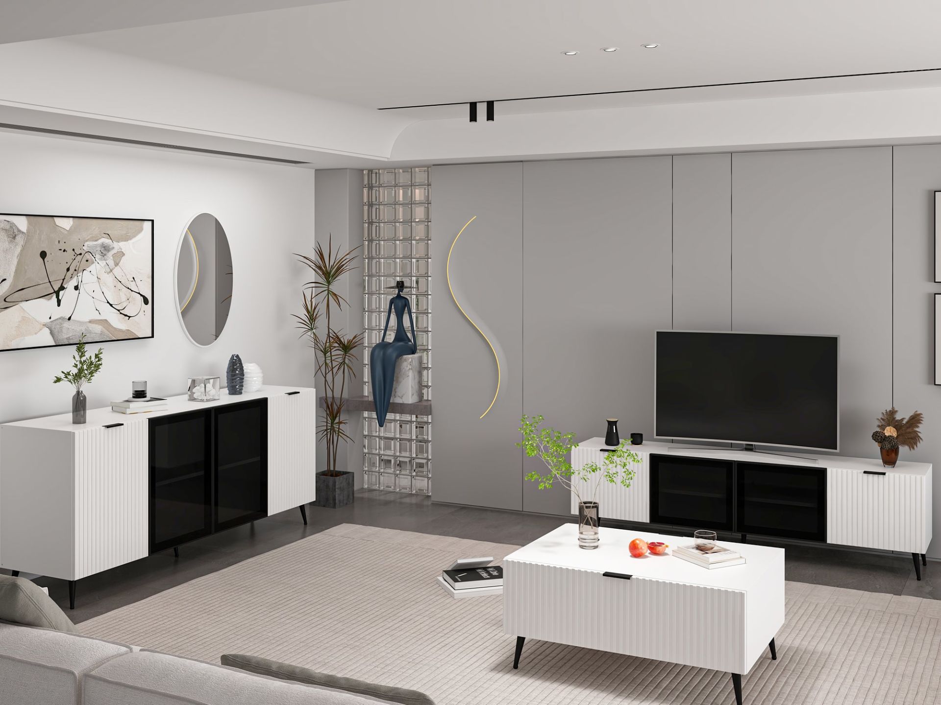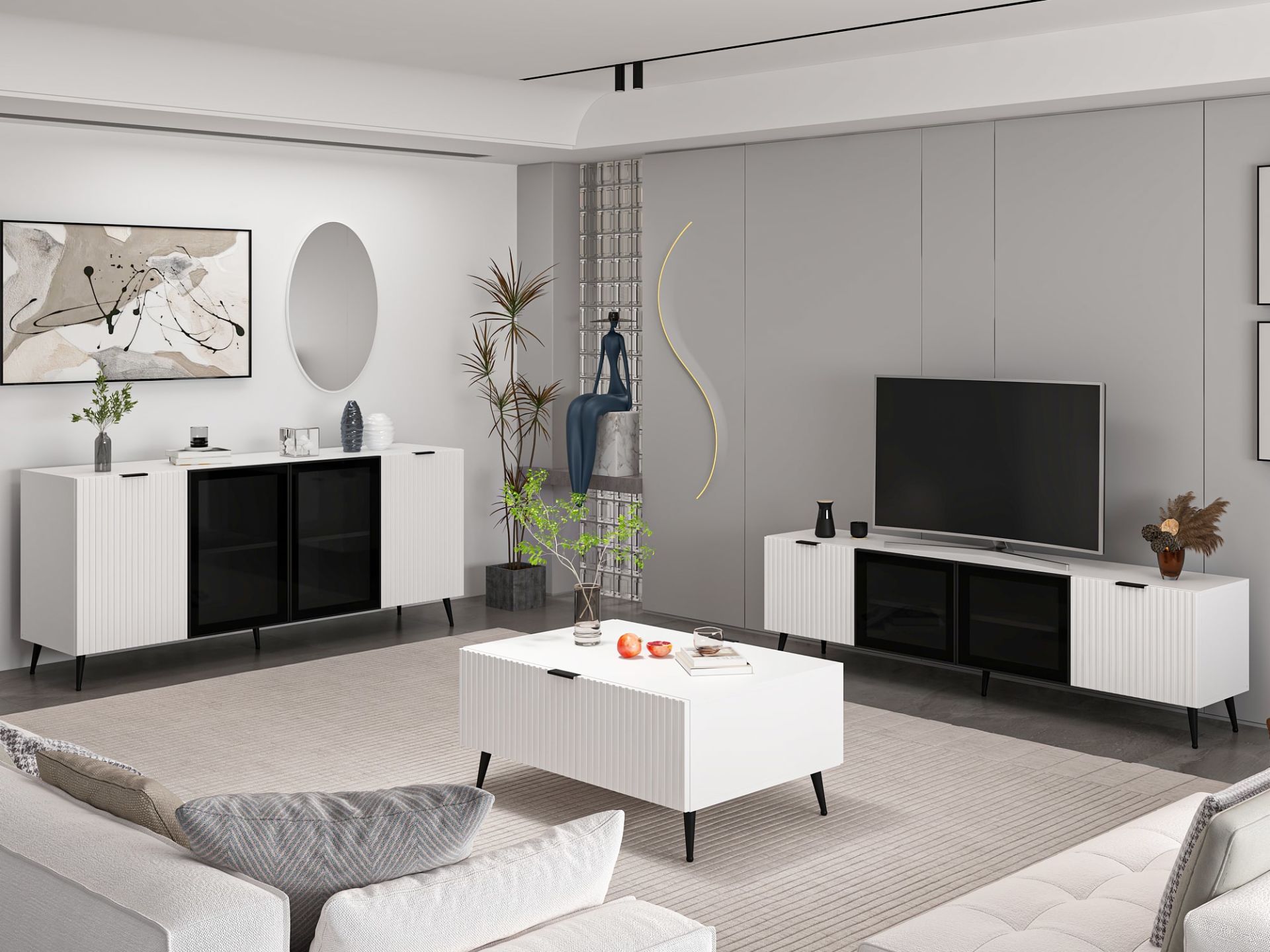 Minar Kale Plus Set1 Tv + Orta Sehpa + Aynalı Konsol Beyaz