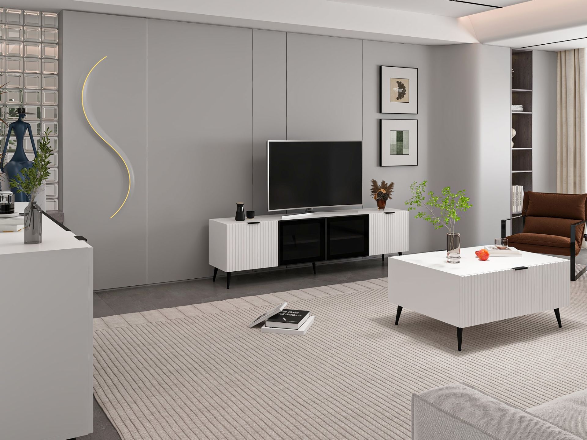 Modern Oturma Odası Seti – Cam Kapaklı, şık tasarımı, fonksiyonel yapısı ve kaliteli malzemeleriyle yaşam alanlarınıza hem estetik hem de kullanım kolaylığı sunuyor. Cam kapaklı detayları sayesinde odanıza zarif bir dokunuş eklerken, eşyalarınızı sergileyebileceğiniz şık bir alan sağlıyor. Orta sehpa, TV ünitesi ve konsol-ayna kombinasyonu ile hem düzen hem modernlik bir arada.