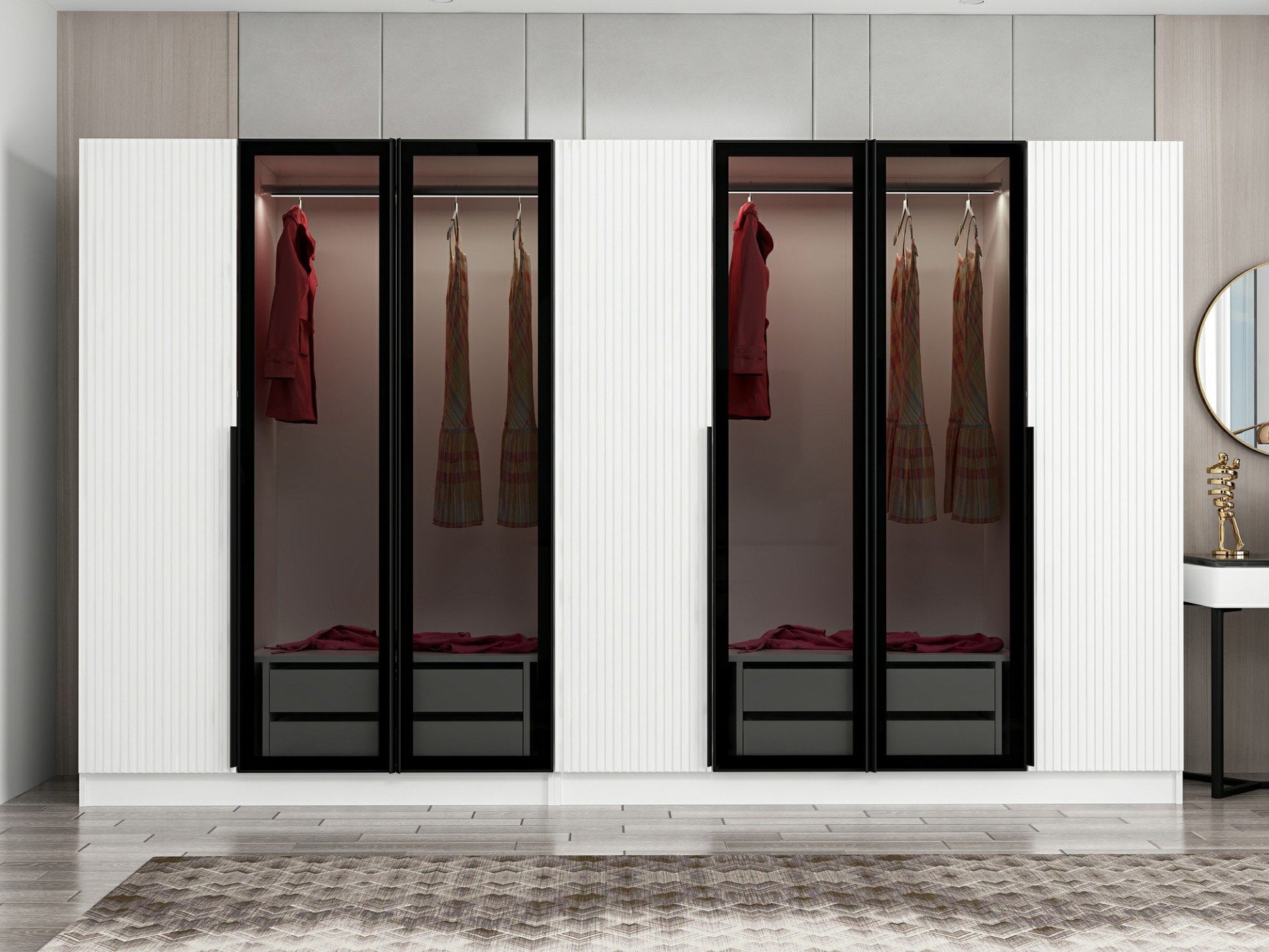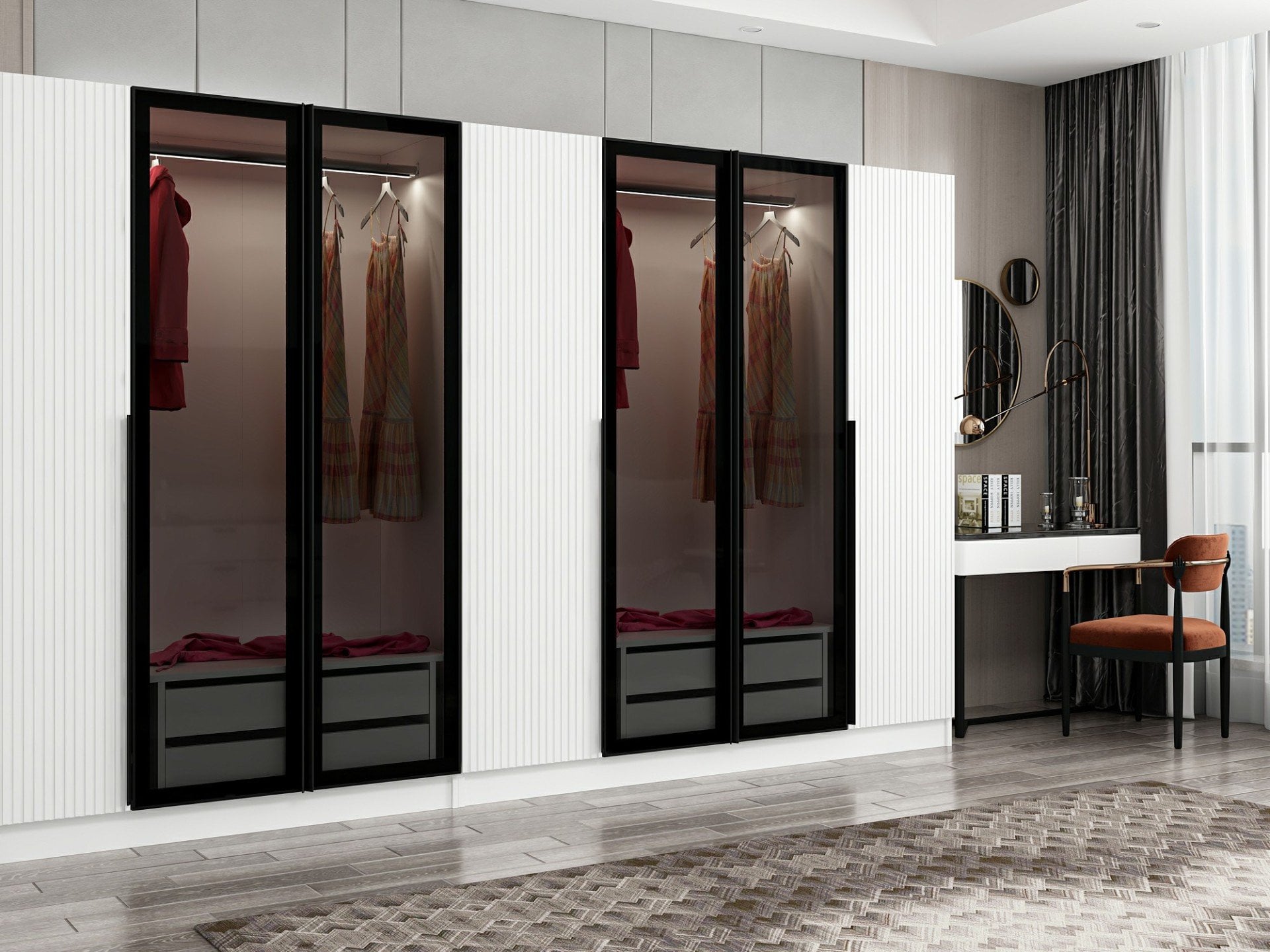 Kale Plus 7 Mebran Kapaklı 4Ç Dolap Beyaz Mebran Füme Cam 210CM