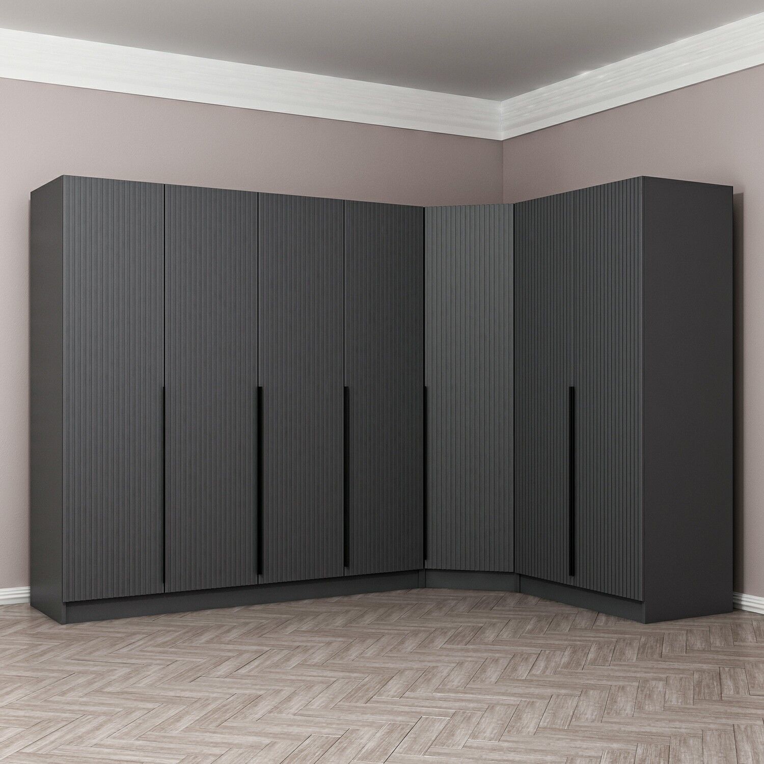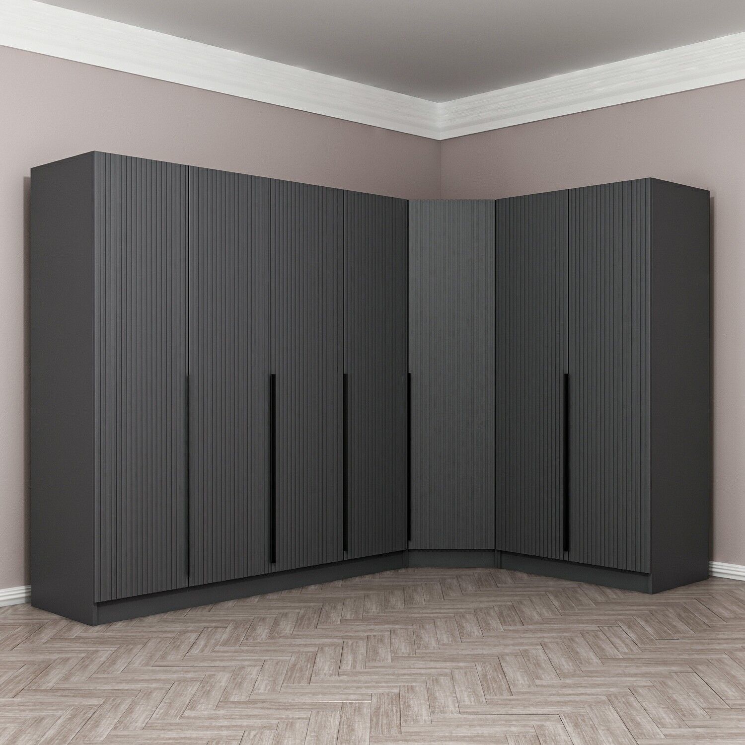 Kaleplus 7 Kapaklı 2 Çekmeceli Köşe Dolap Antrasit Mebran Antrasit Çizgili