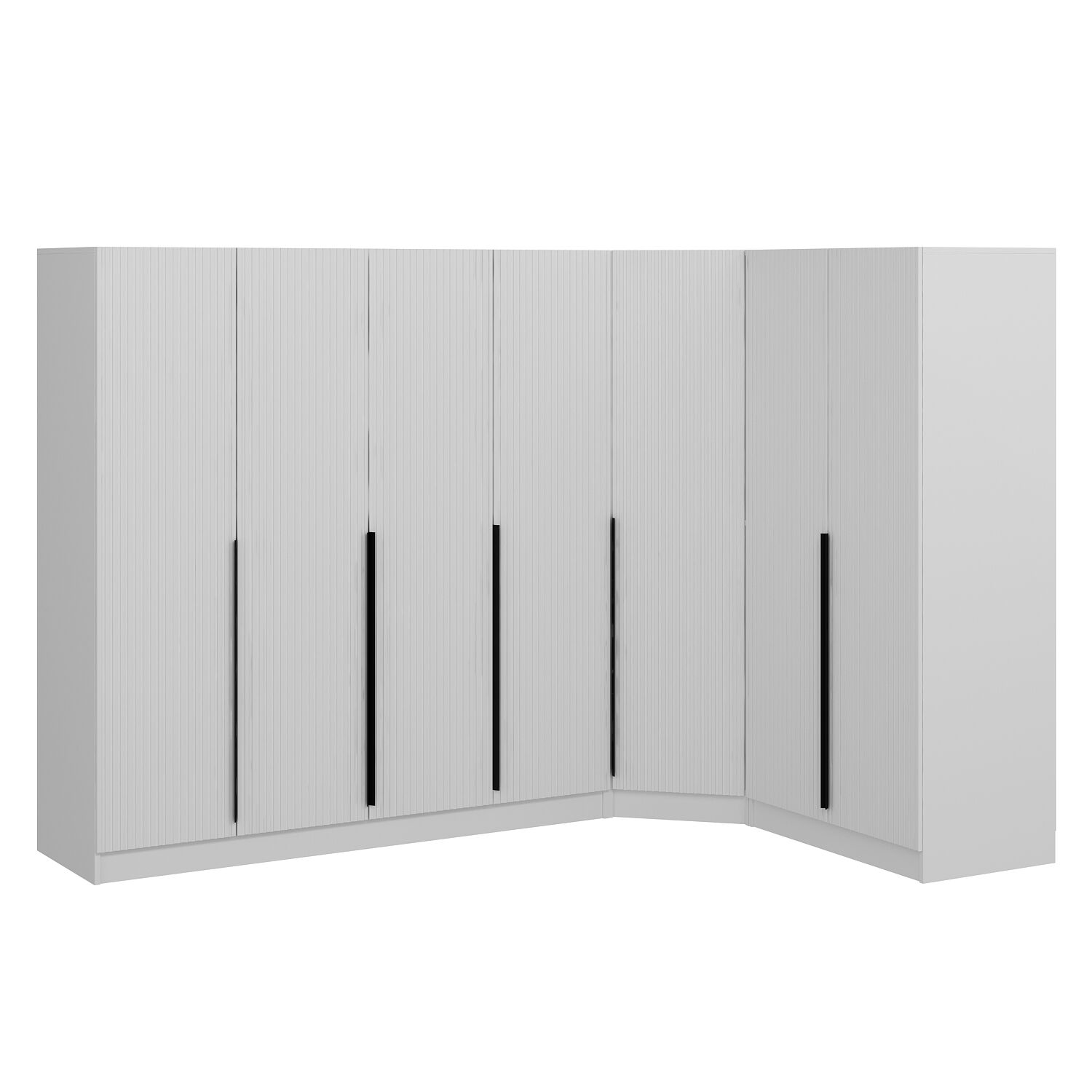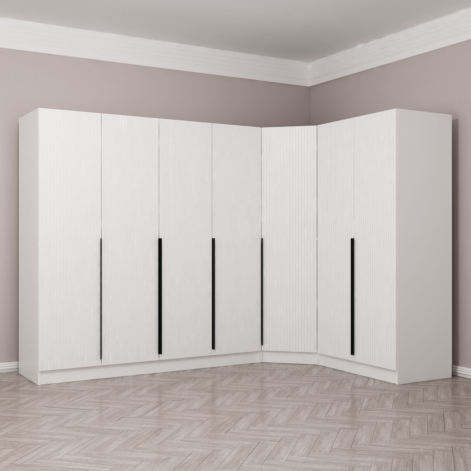 Kaleplus 7 Kapaklı 2 Çekmeceli Köşe Dolap Beyaz Mebran Beyaz Çizgili