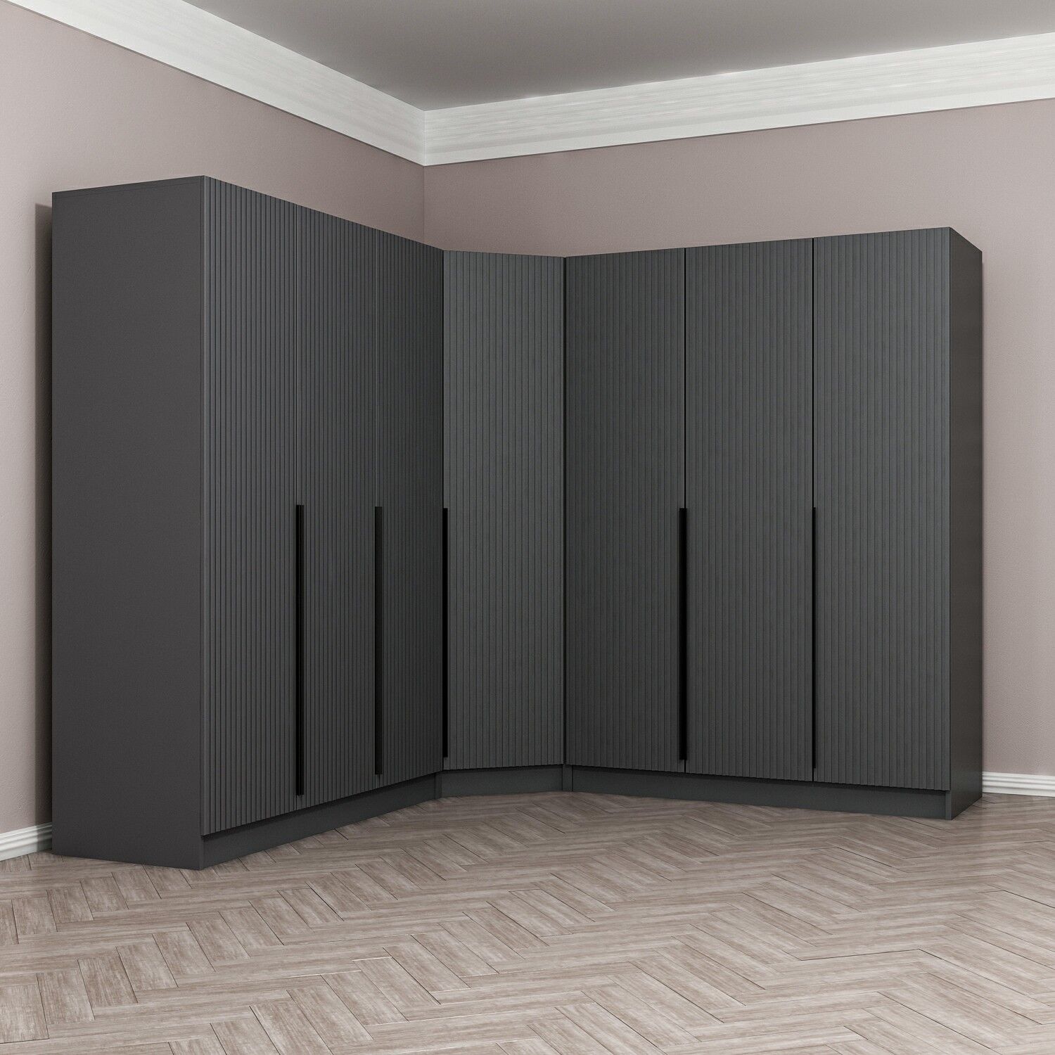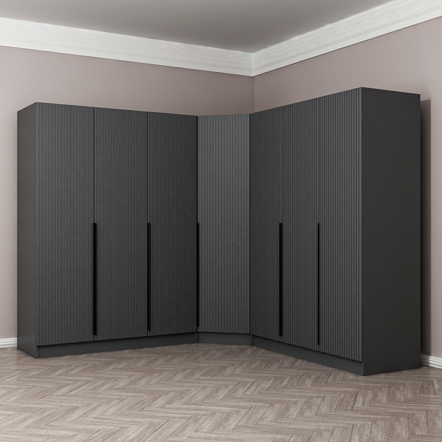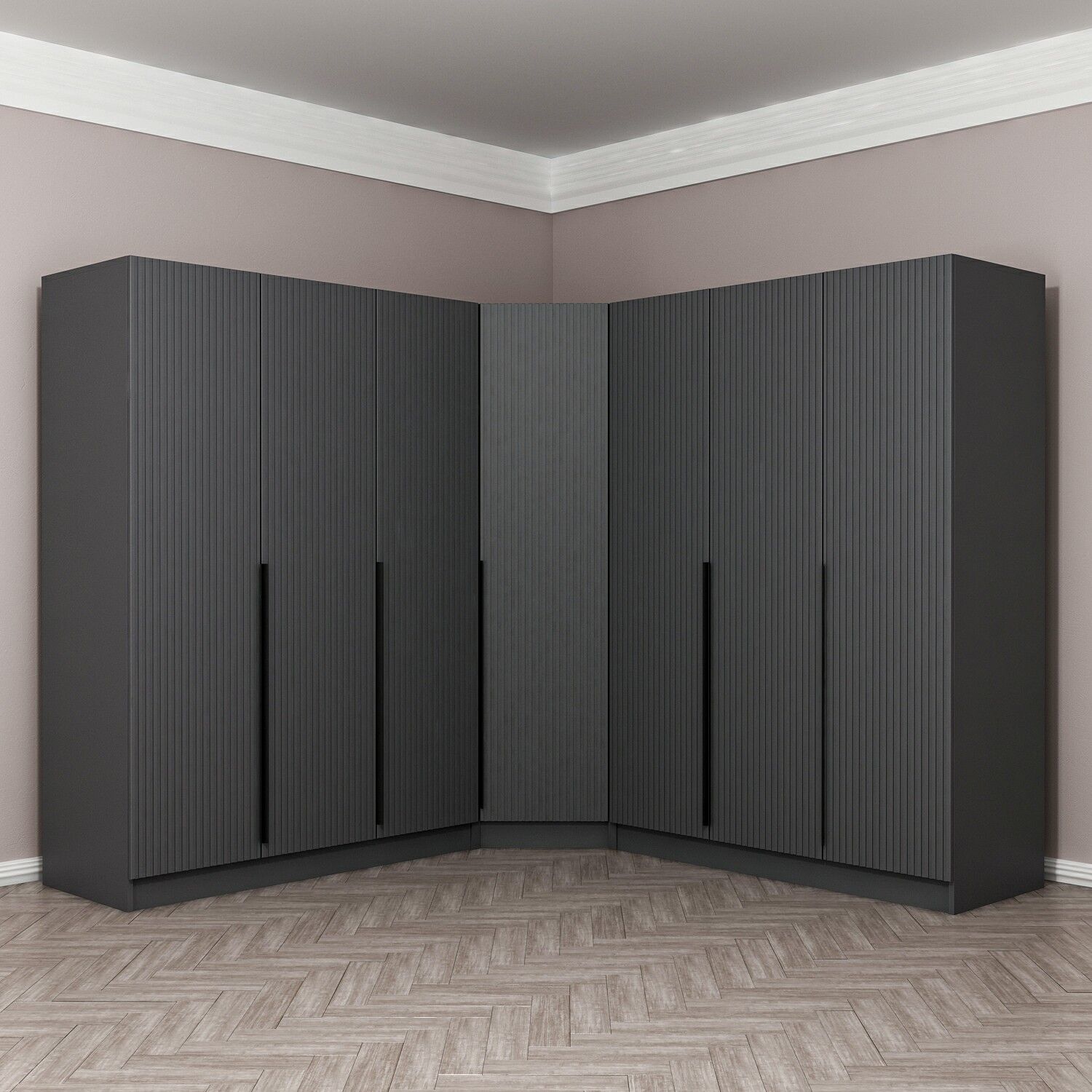 Kaleplus 7 Kapaklı 4 Çekmeceli Köşe Dolap Antrasit Mebran Antrasit Çizgili