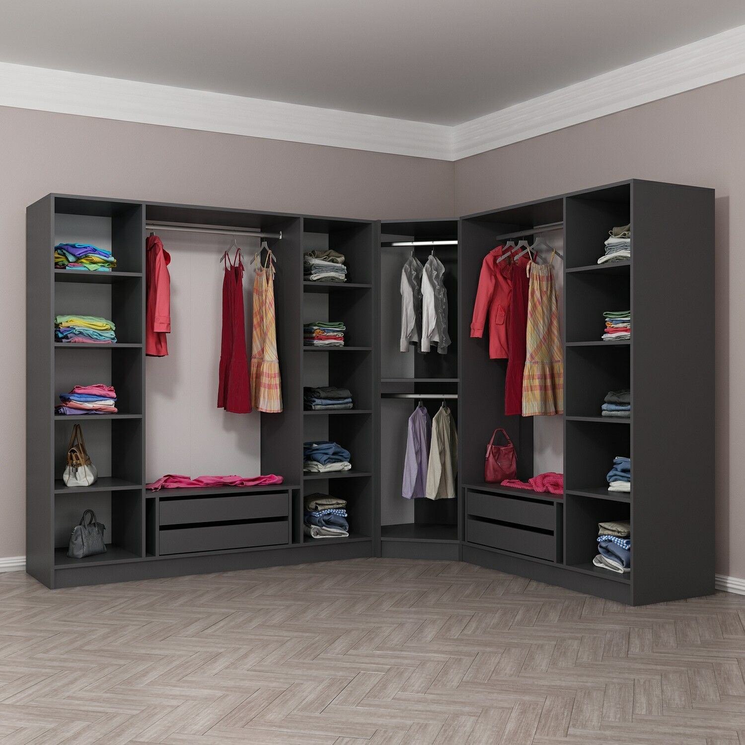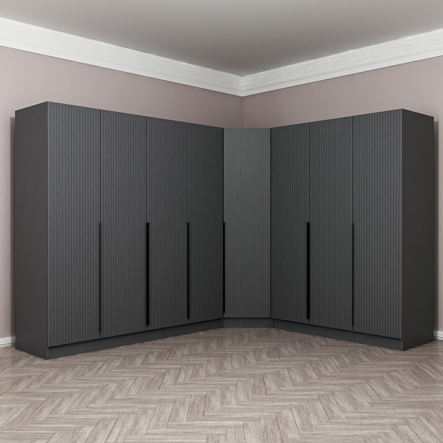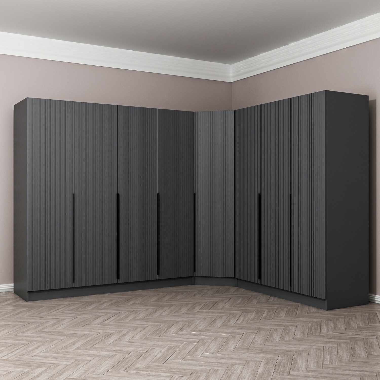 Kaleplus 8 Kapaklı 4 Çekmeceli Köşe Dolap Antrasit Mebran Antrasit Çizgili