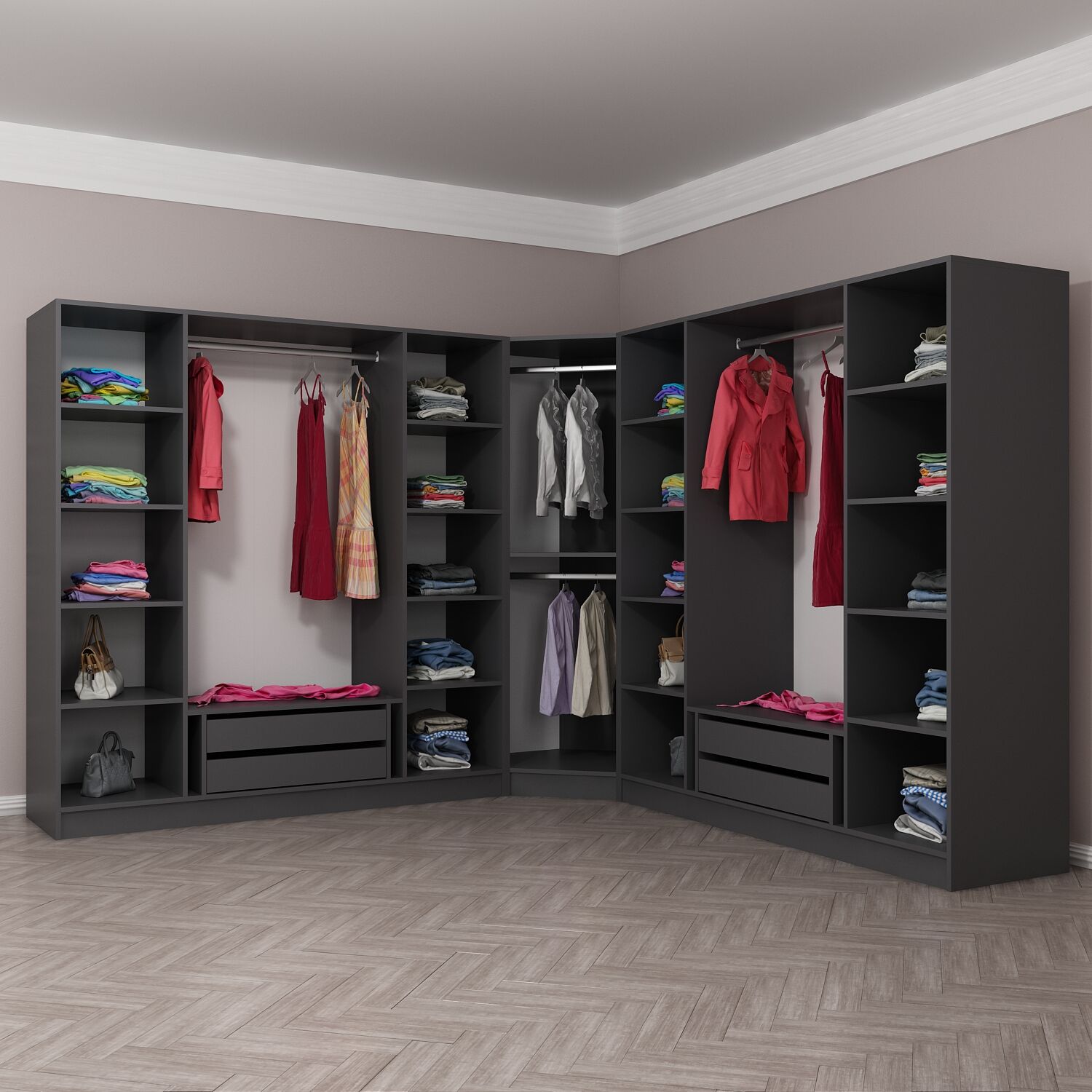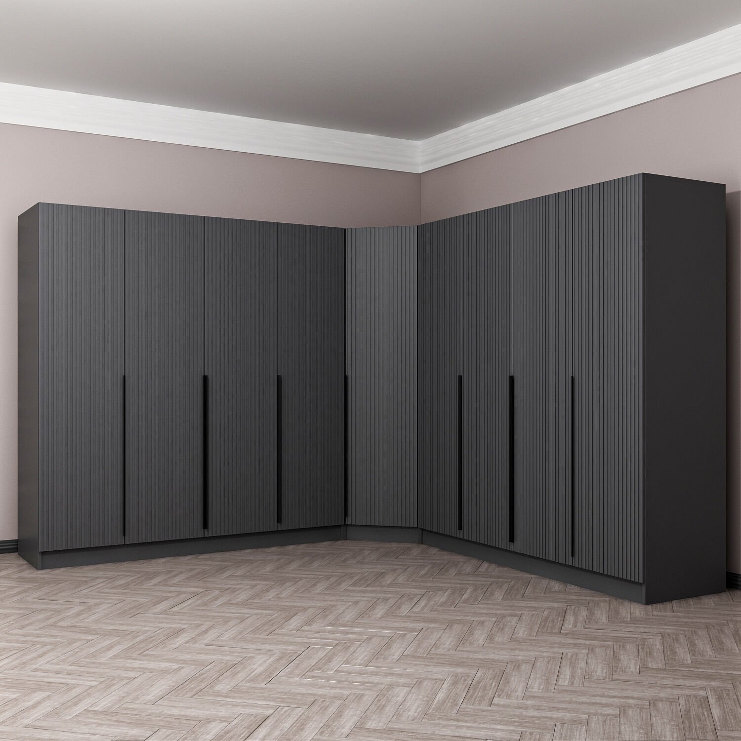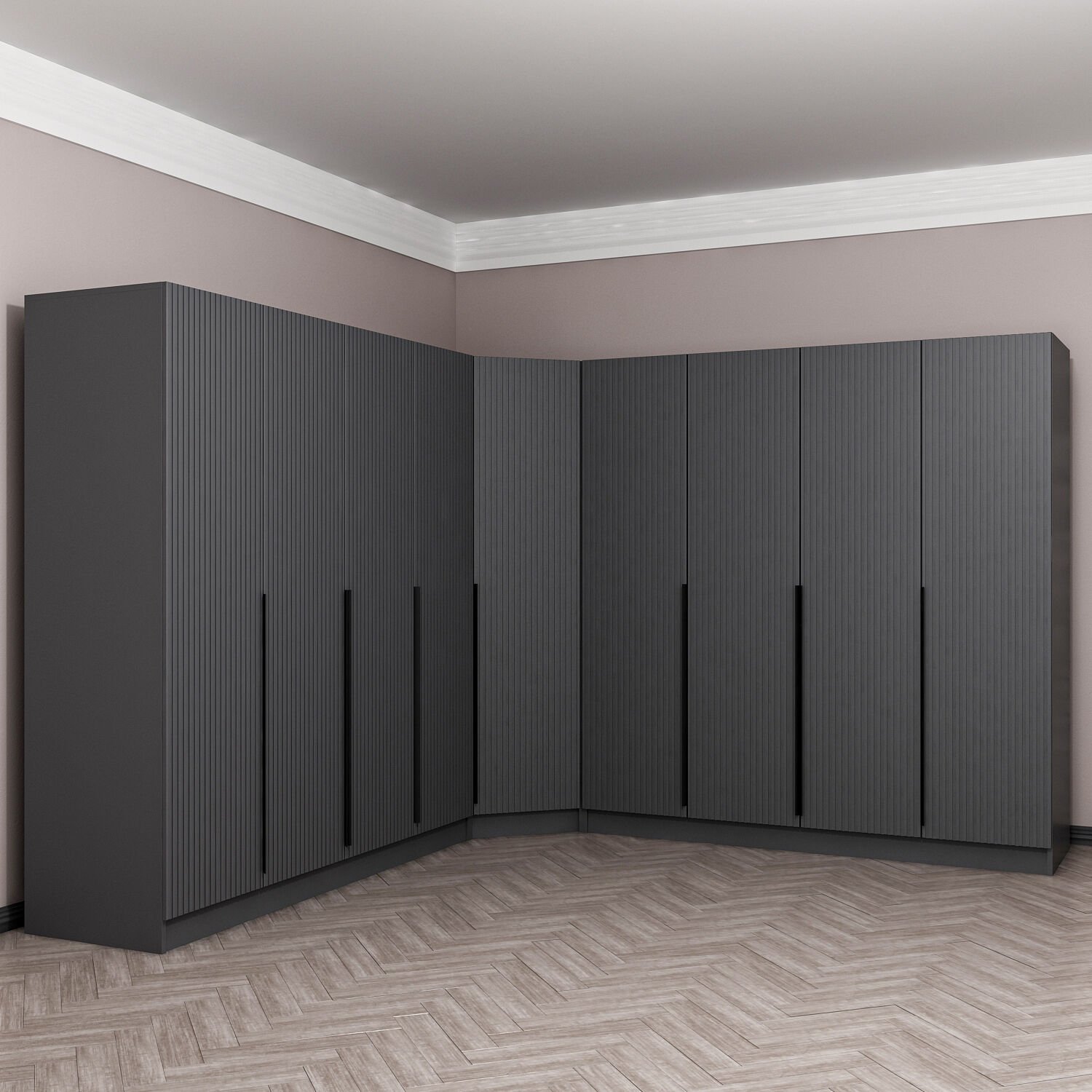 Kaleplus 9 Kapaklı 4 Çekmeceli Köşe Dolap Antrasit Mebran Antrasit Çizgili