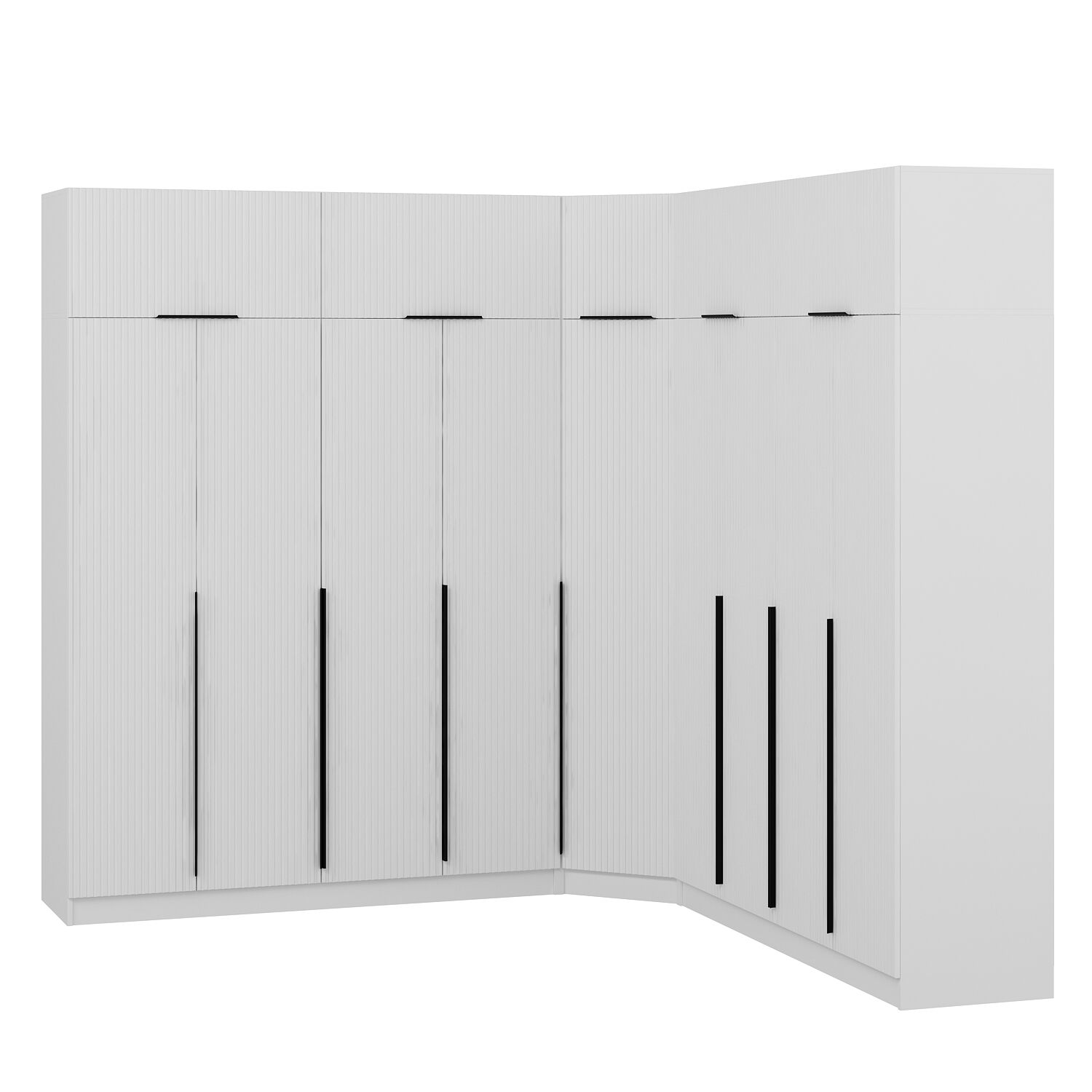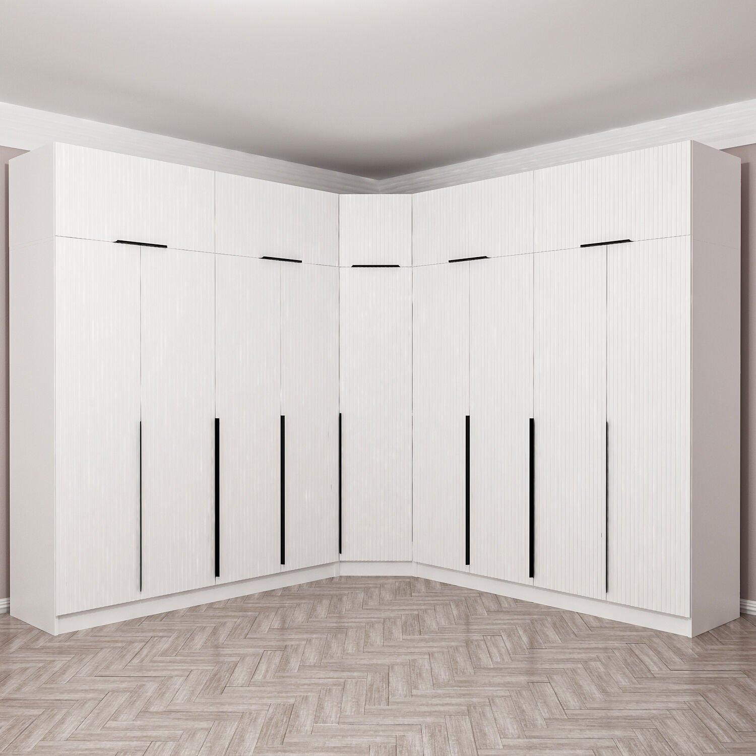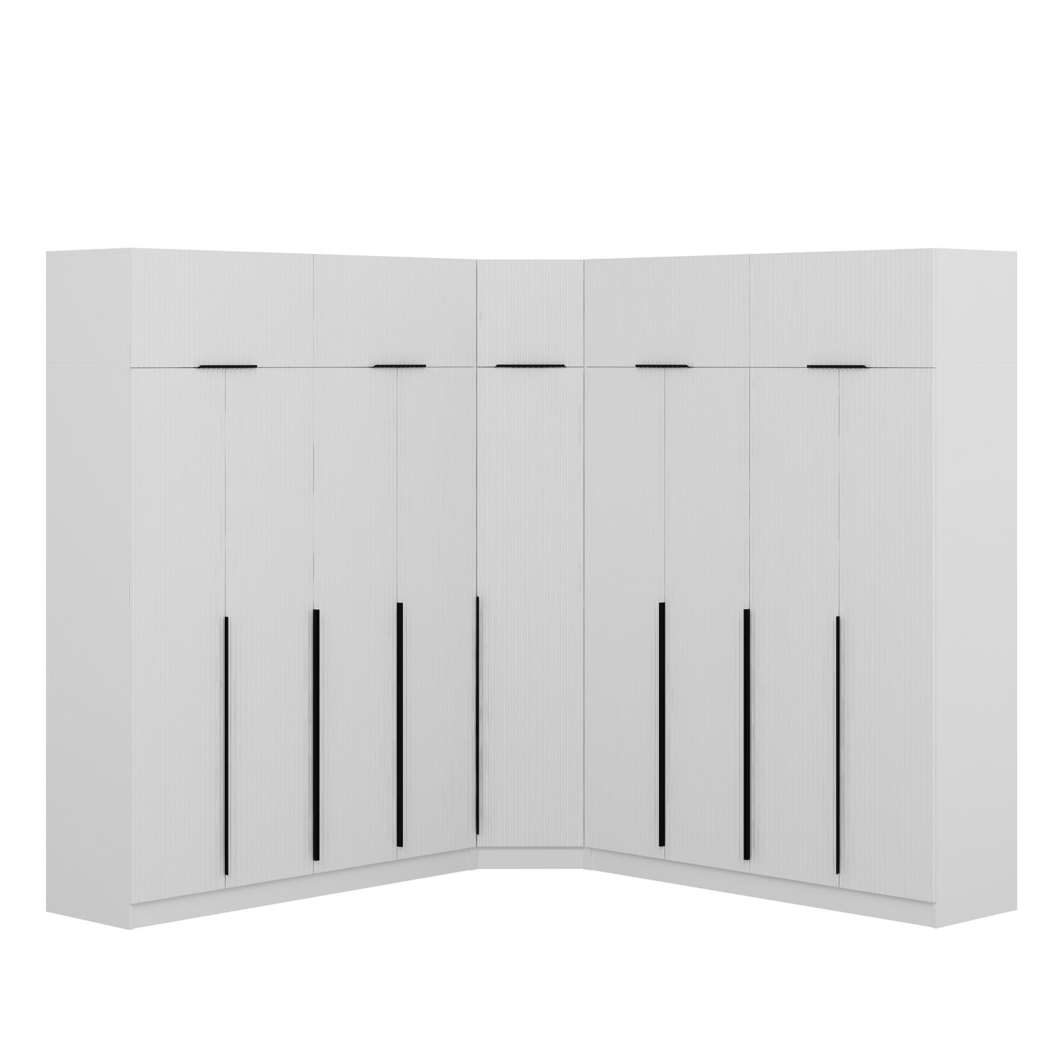 Kaleplus 9 Kapaklı 4 Çekmeceli Köşe Dolap + Yüklük Beyaz Mebran Beyaz Çizgili