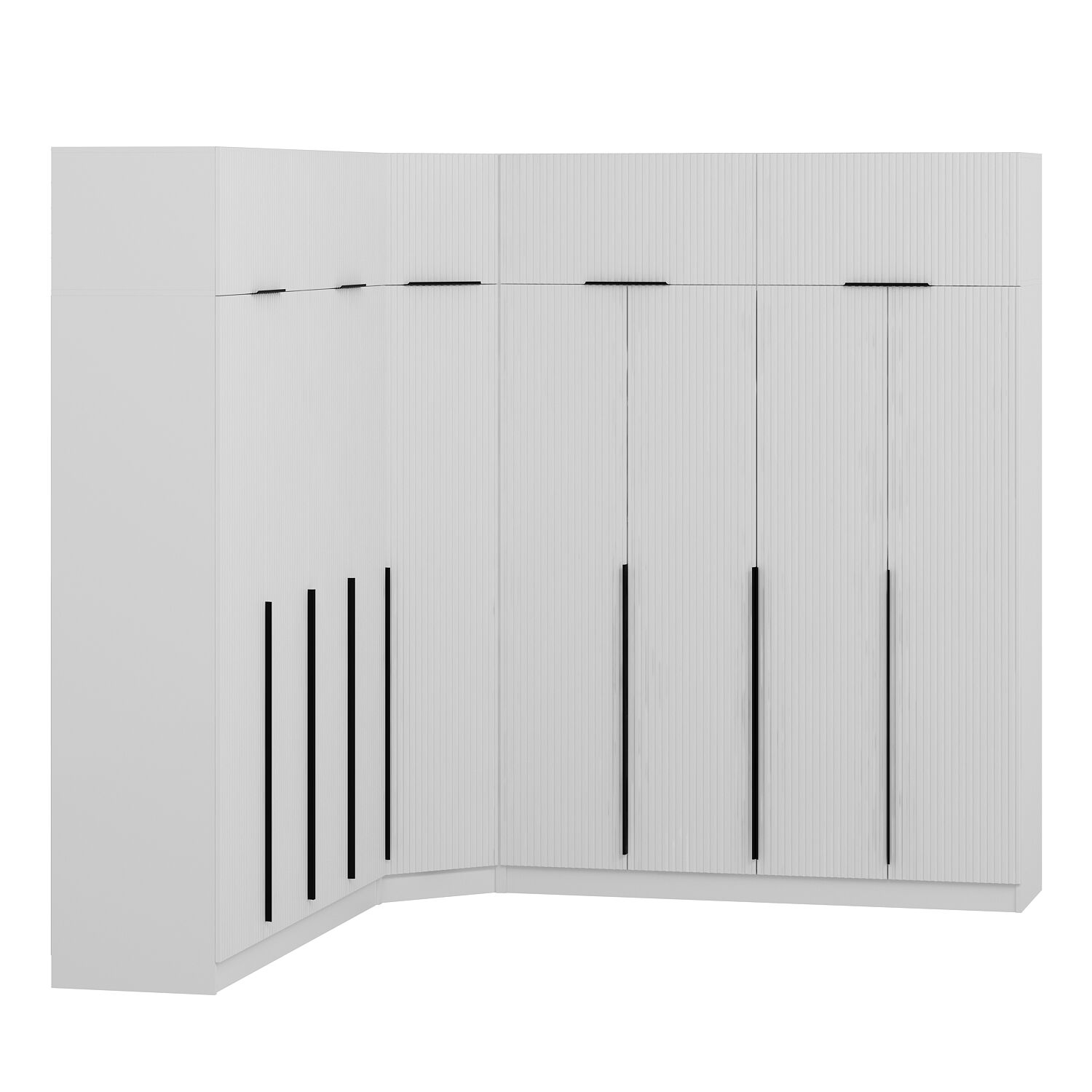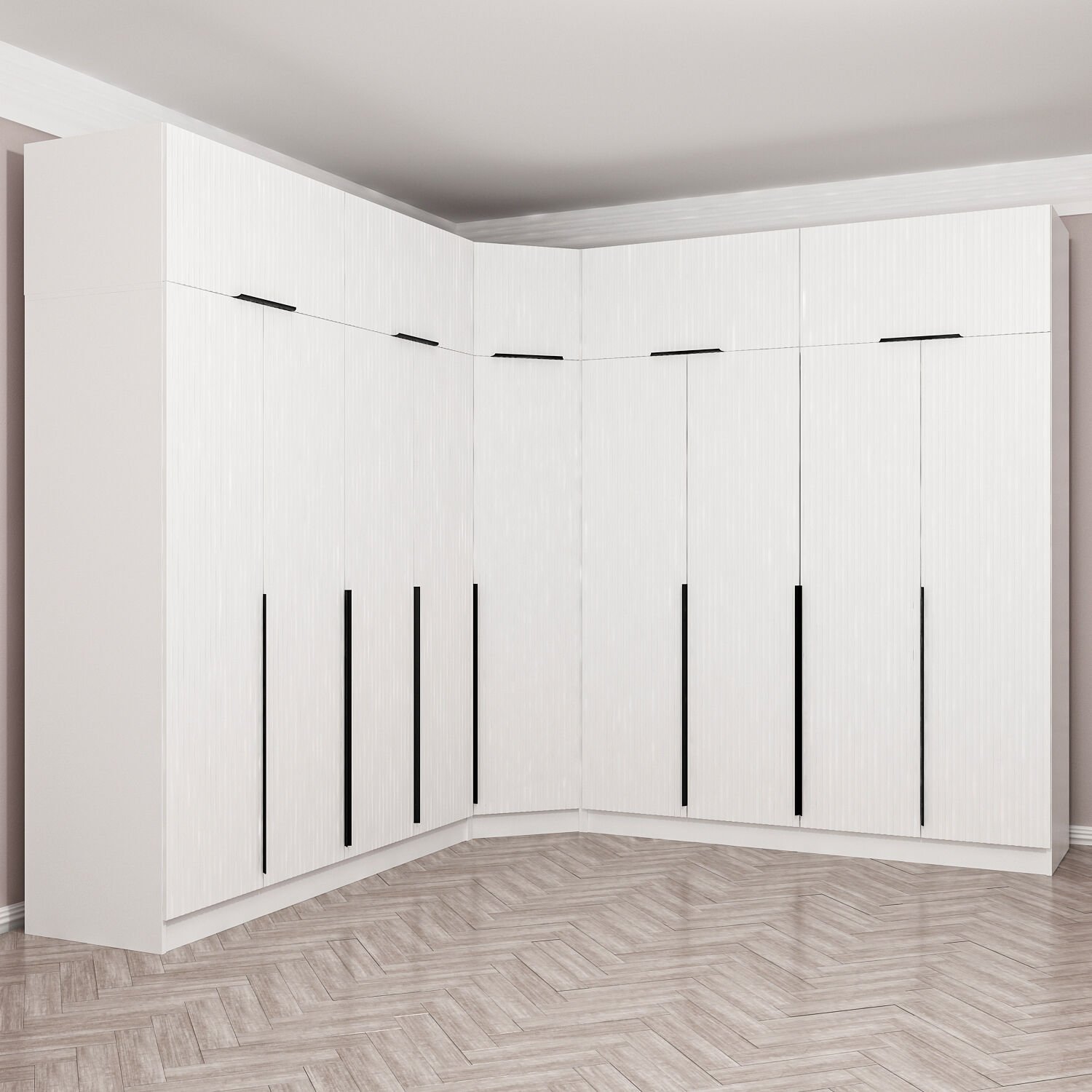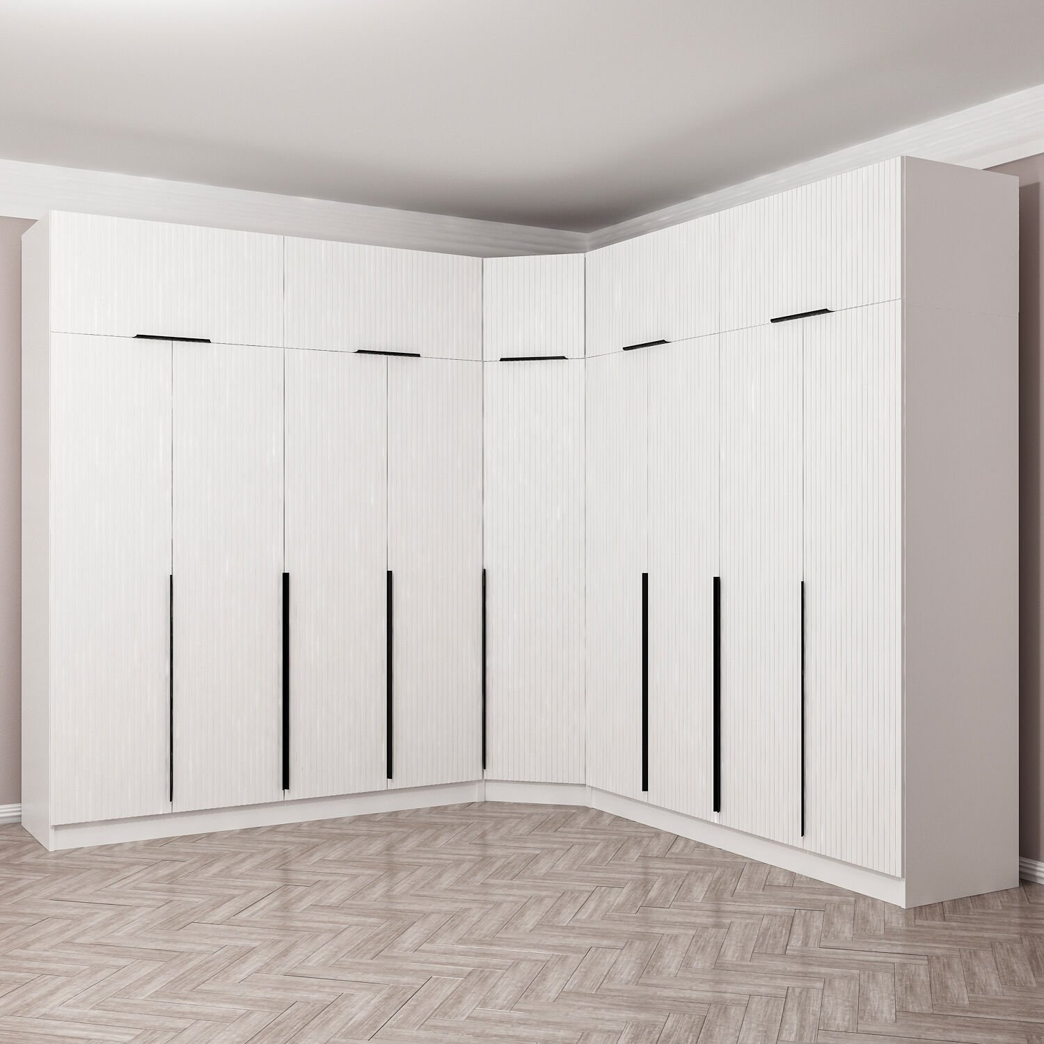 Kaleplus 9 Kapaklı 4 Çekmeceli Köşe Dolap + Yüklük Beyaz Mebran Beyaz Çizgili