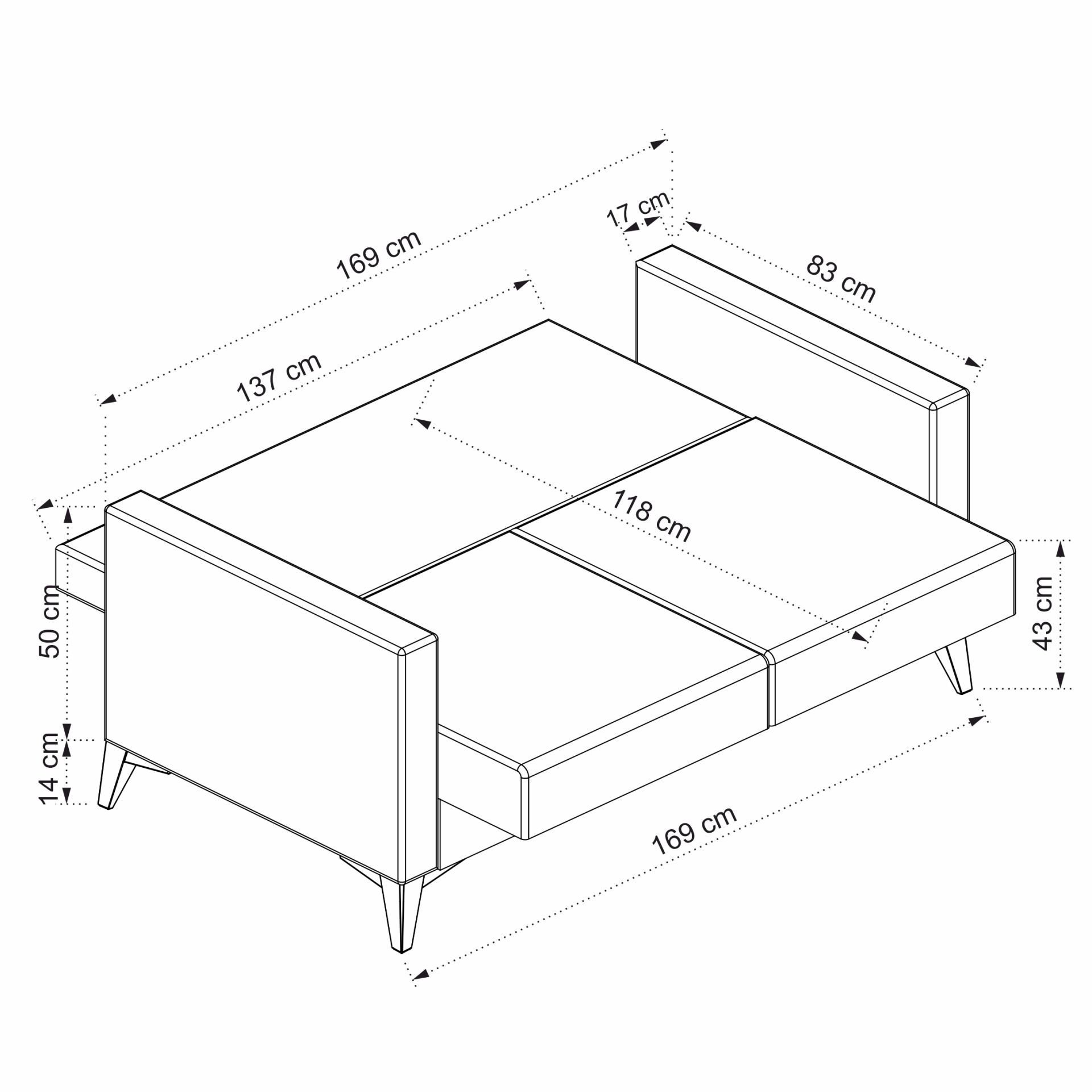 - Geniş ölçüler: 169 cm genişlik, 83 cm derinlik, 89 cm yükseklik.