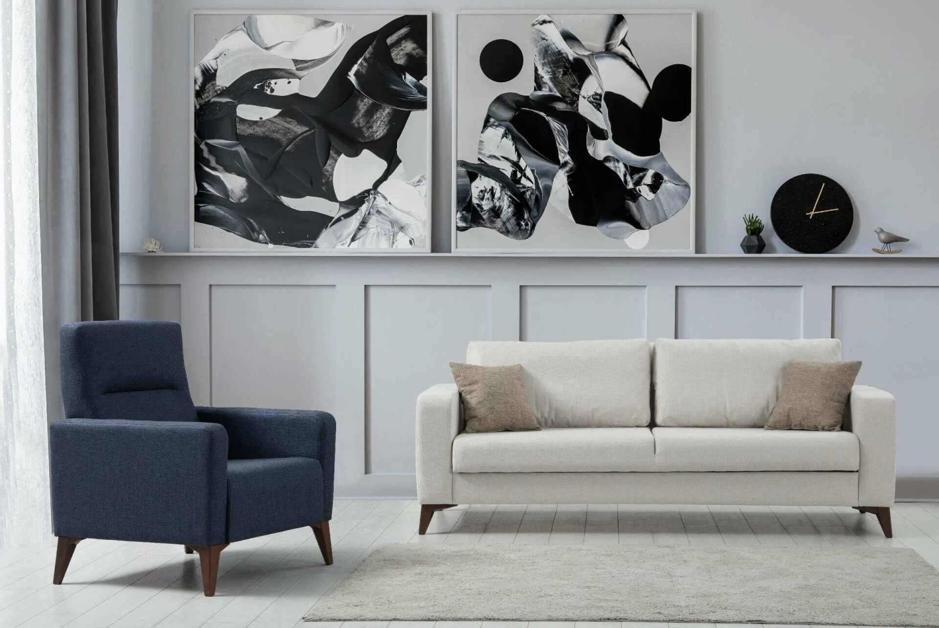 Kristal 3+1 Berjer Koltuk Takımı Bej + Lacivert