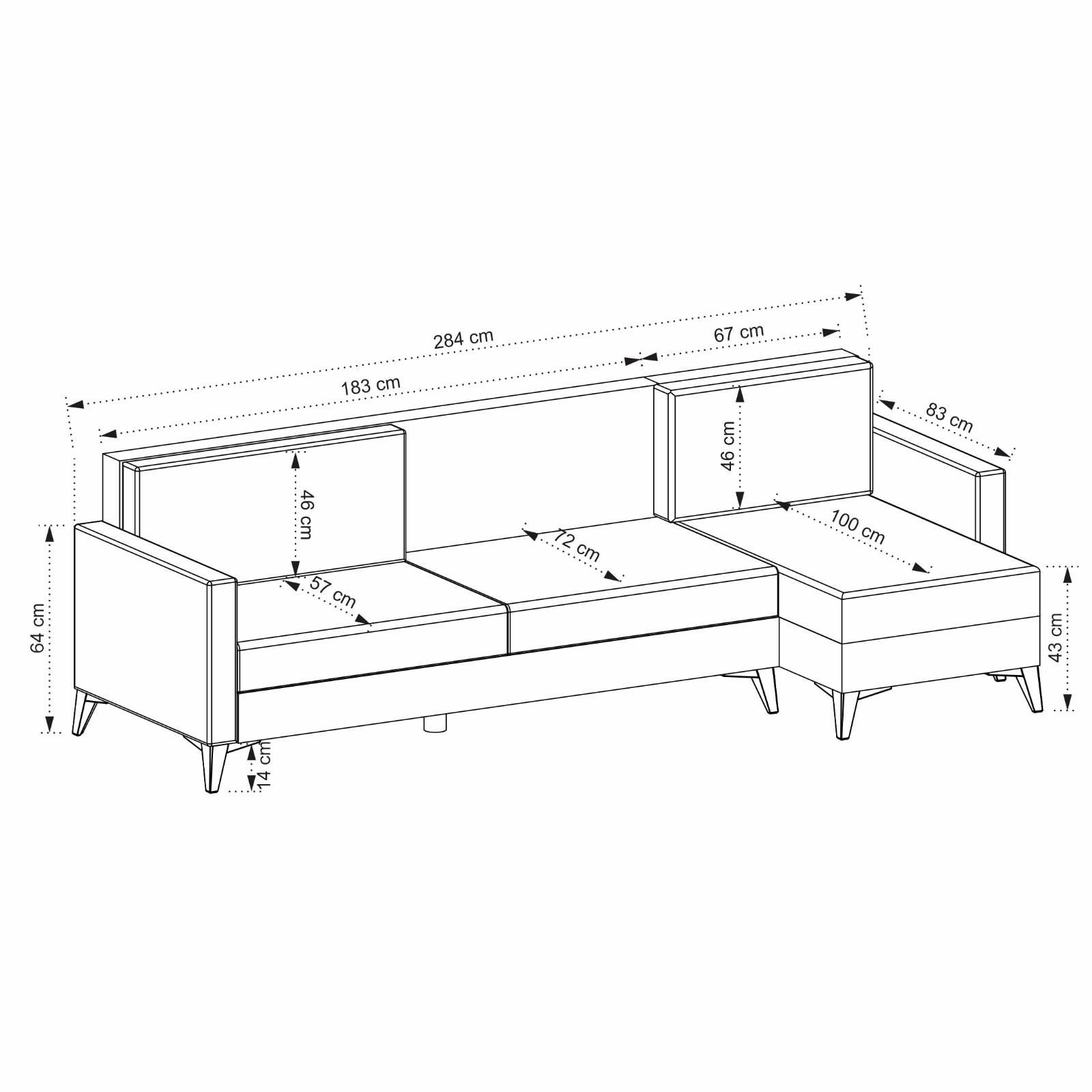 ✅ Geniş Ölçüler – 284 cm genişlik, 90 cm derinlik ve 86 cm yükseklik ölçüleri ile ferah bir oturum alanı sunar.