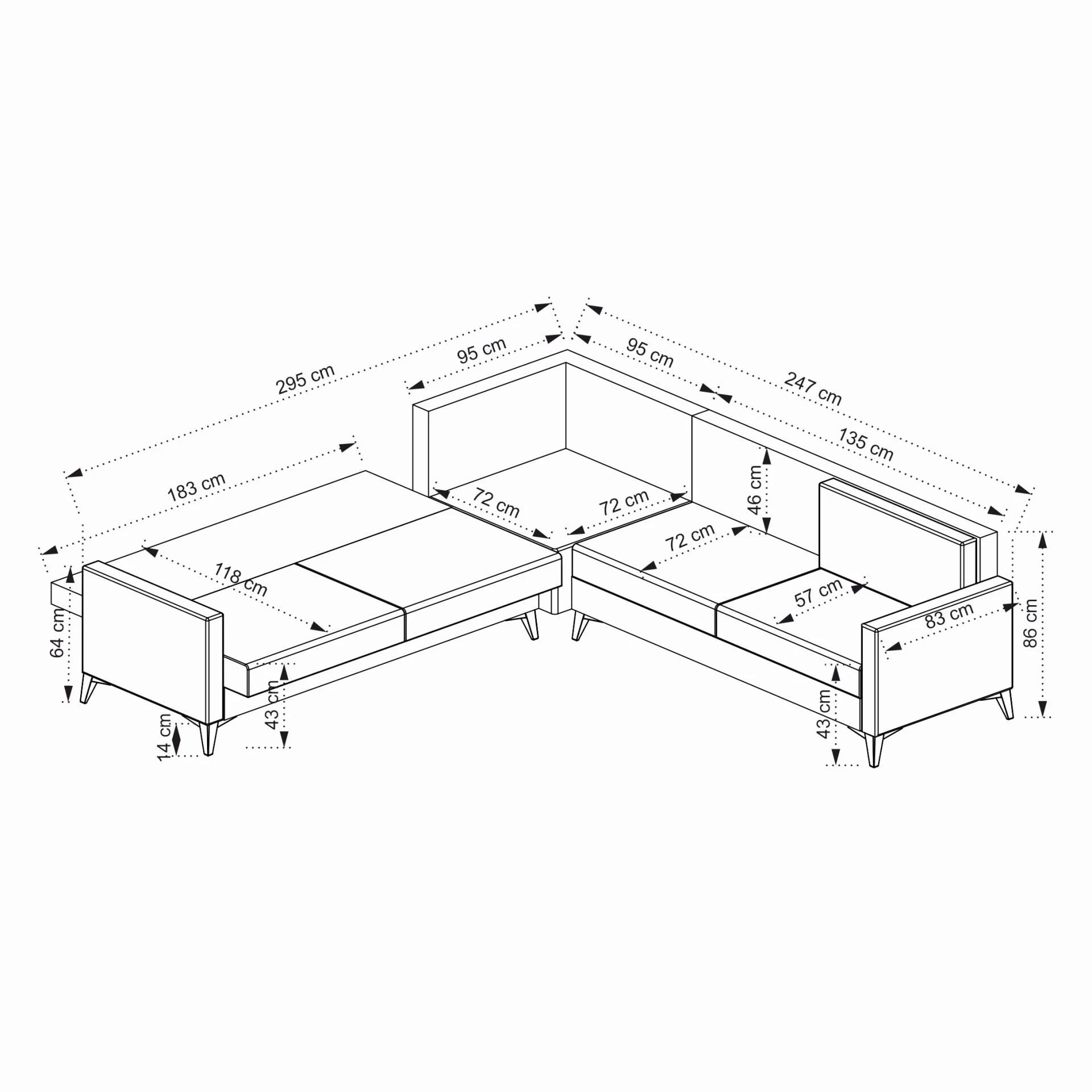 ✅ Geniş Ölçüler – 552 cm genişlik, 90 cm derinlik ve 86 cm yükseklik ölçüleri ile ferah bir oturum alanı sunar.