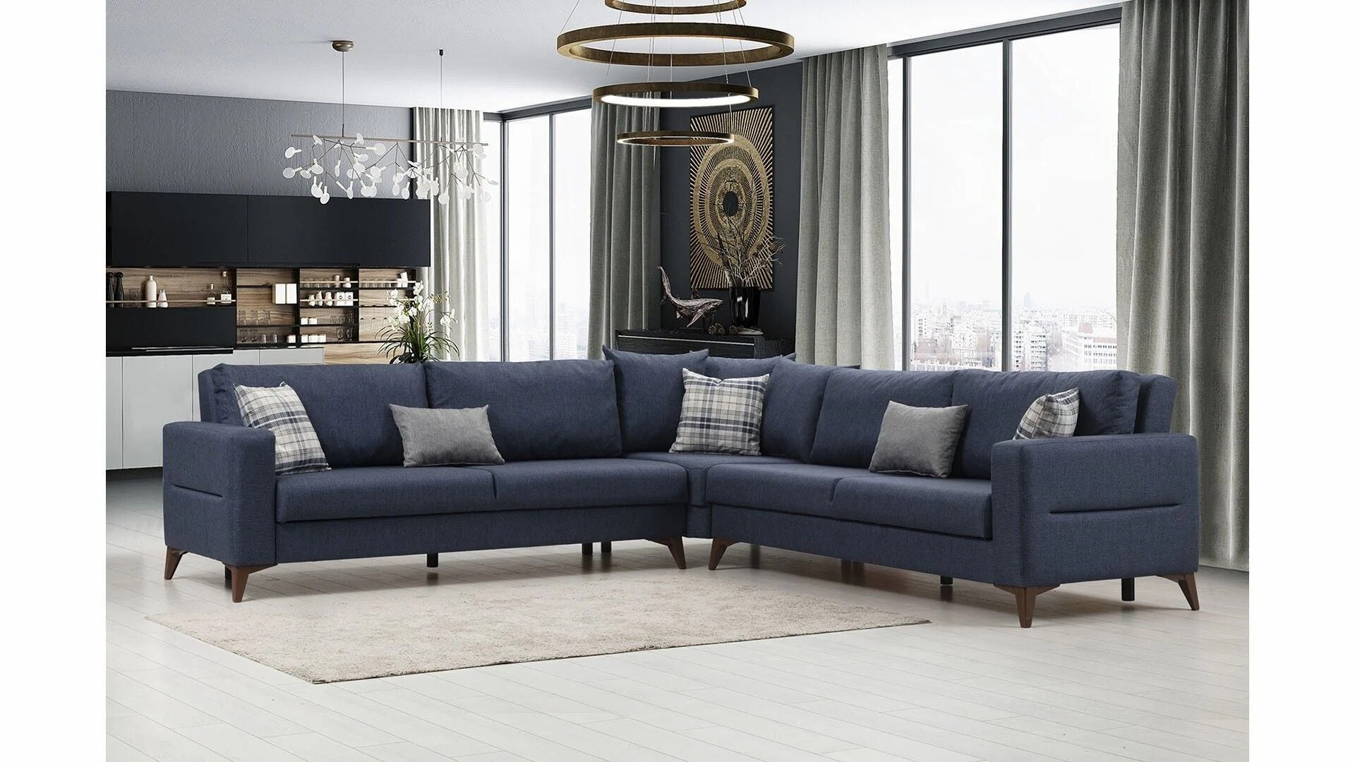 Kristal (3+K+3) L Köşe Koltuk Takımı Lacivert