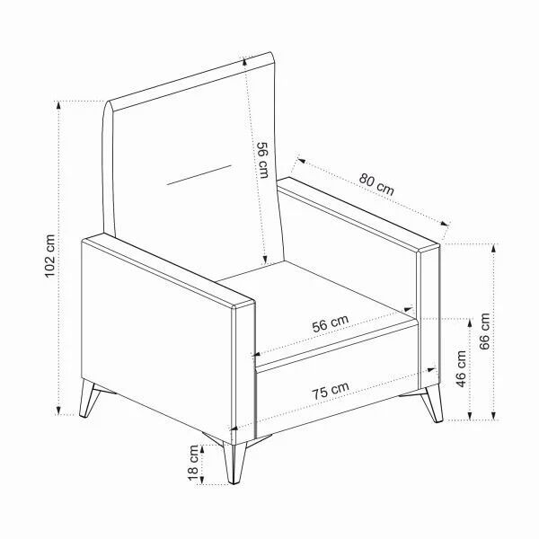 28 DNS oturma süngeri ve 22 DNS sırt süngeri, ideal sertlikte oturum ve sırt desteği sağlayarak uzun süreli kullanımlarda konforu maksimum seviyeye çıkarır. Yüksek sırt yapısı ergonomik destek sunarken, kompakt ölçüleriyle salon veya oturma odası gibi alanlarda rahatlıkla kullanılabilir.