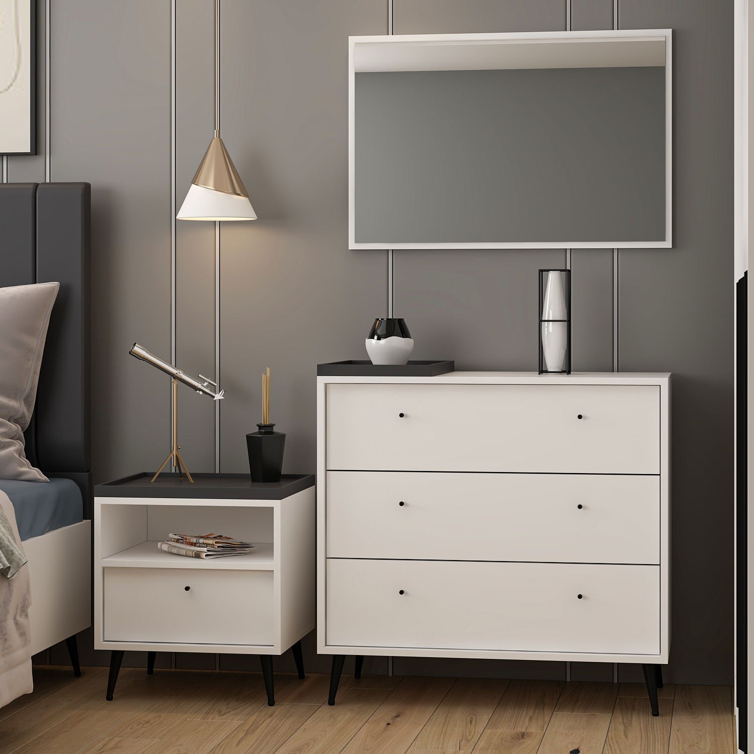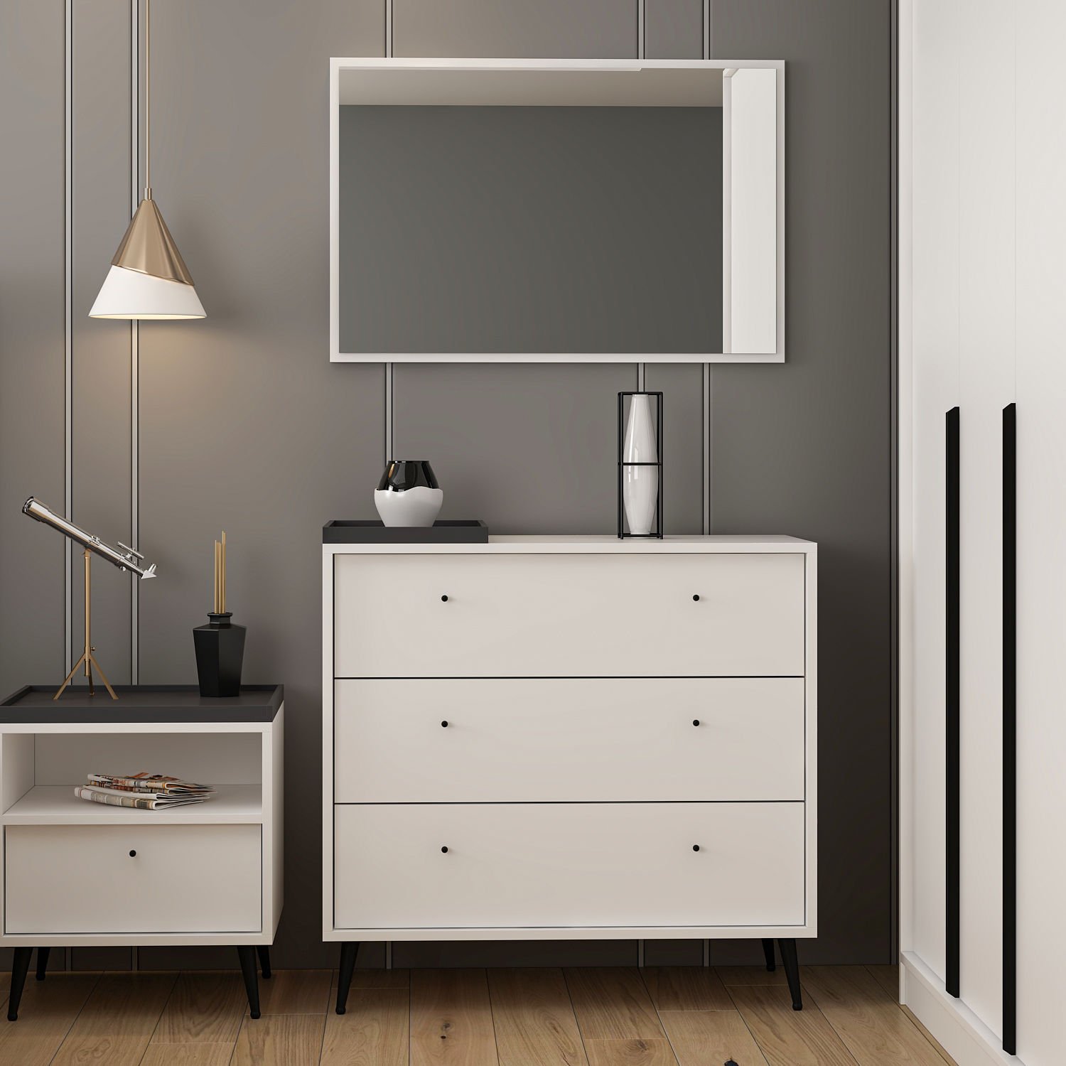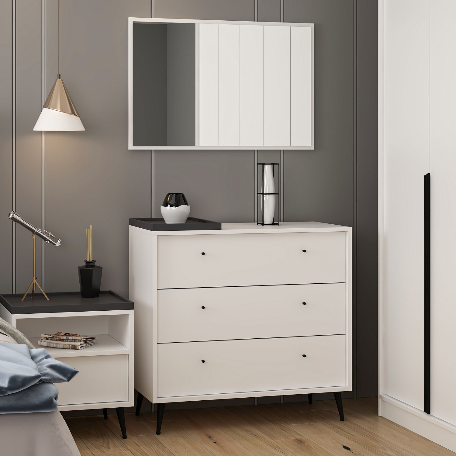 Lara Aynalı Şifonyer 3 Çekmece - Beyaz, modern tasarımı ve fonksiyonel yapısıyla odalarınıza hem şıklık hem de düzen kazandırır. Saf beyaz rengi, ferah ve temiz bir görünüm sunarak her dekorasyon tarzıyla uyum sağlar.
