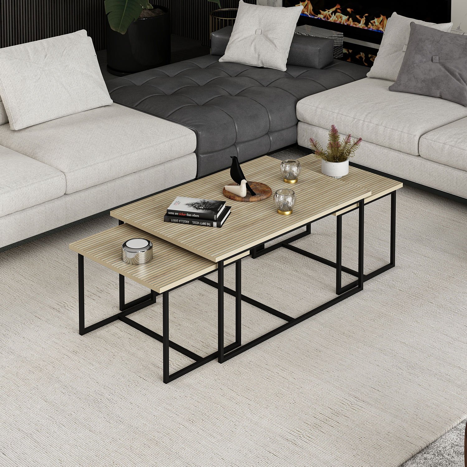 Levada 3'lü Zigonlu Sehpa- Bona Modern yaşam alanları için pratik ve şık bir çözüm sunan sehpa, siyah rengi ve metal detaylarıyla minimal dekorasyon anlayışını destekler. Farklı boyutlardaki üç sehpadan oluşan bu set, ihtiyaç anında kolayca ayrılarak kullanılabilir; kullanılmadığında ise iç içe geçerek alandan tasarruf sağlar.