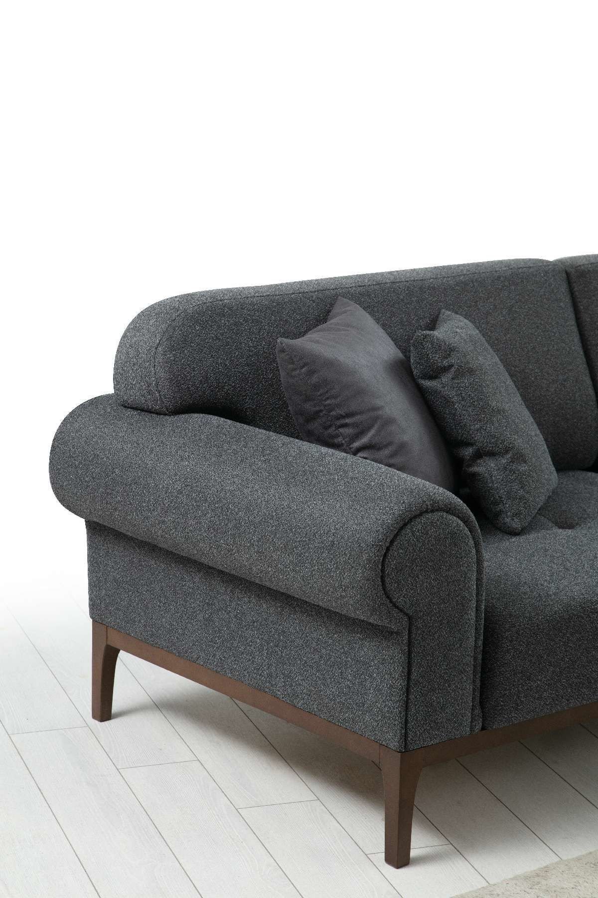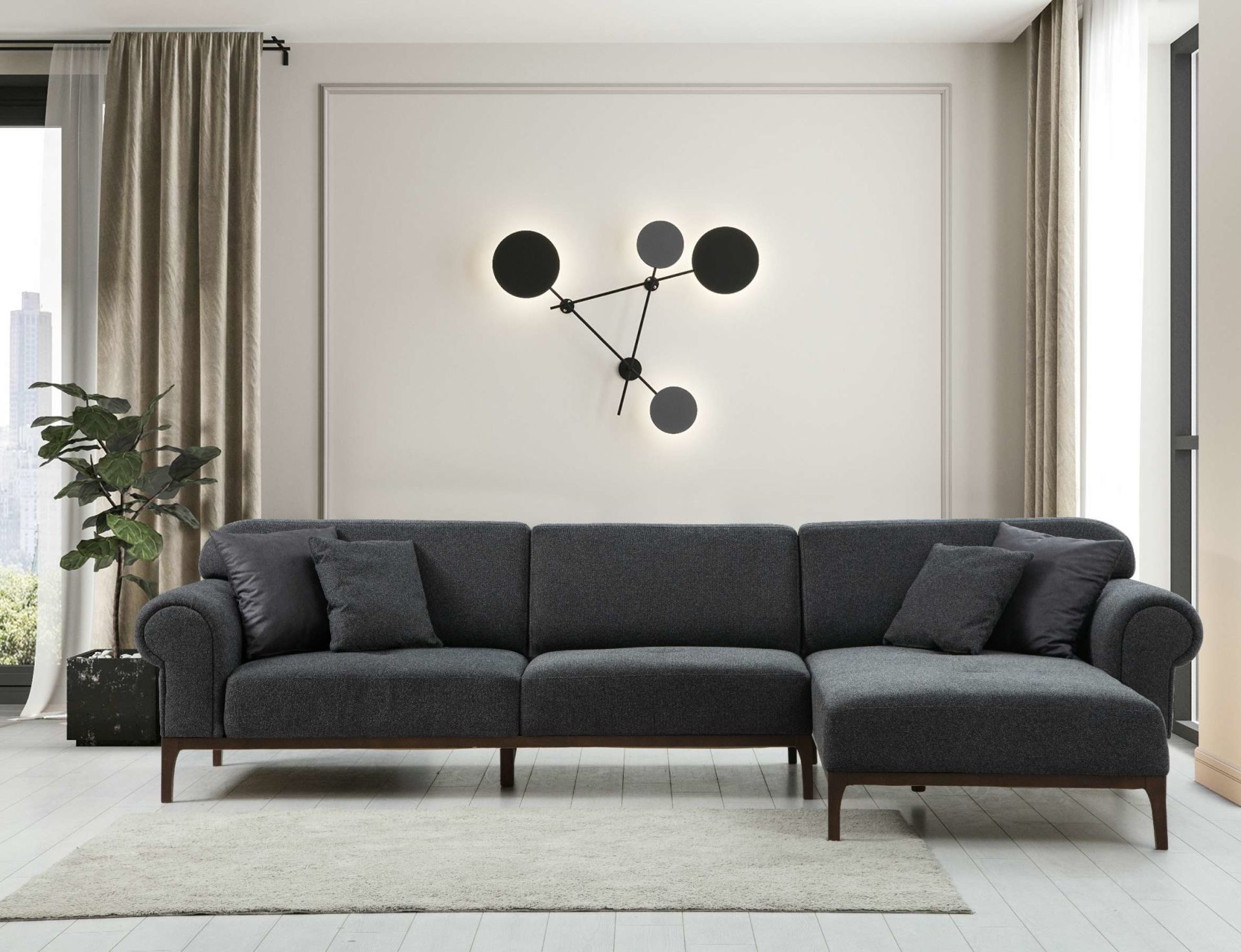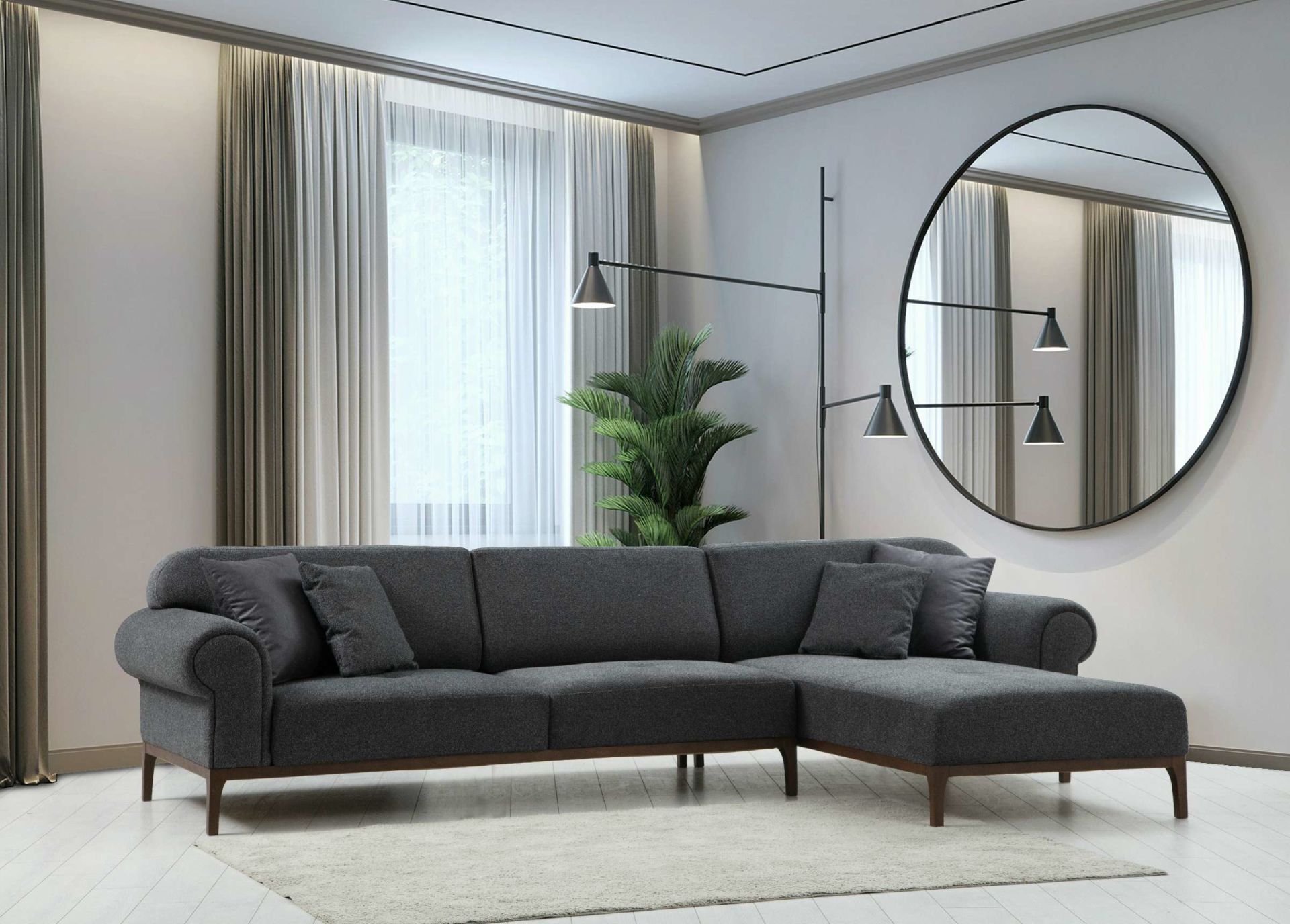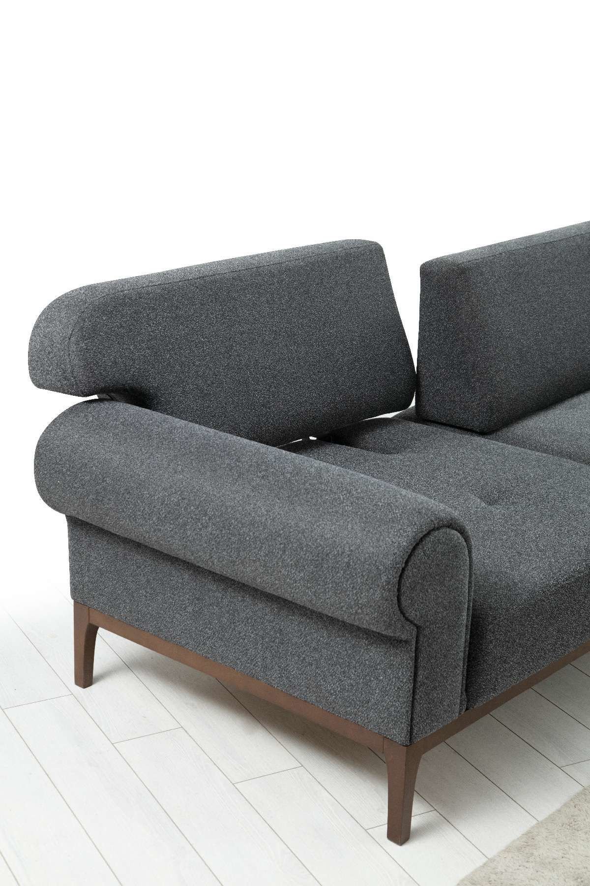 London Sırt Mekanizmalı Köşe Takımı – Koyu Gri, geniş oturum alanı ve modern tasarımıyla oturma odalarına hem işlevsellik hem de şıklık katar. Köşe formu sayesinde alanı verimli kullanır, aile buluşmaları ve kalabalık misafirler için ideal bir çözüm sunar. Sırt mekanizması ile kişisel rahatlık sağlarken, yatak olabilme özelliği sayesinde misafir ağırlamayı pratik hale getirir. 30 DNS oturma ve 24 DNS sırt süngeri, uzun süreli oturumlarda dengeli bir konfor sunar. 22 cm yüksekliğindeki ceviz renkli ahşap ayakları ise zarif duruşunun yanı sıra temizlik kolaylığı sağlar.