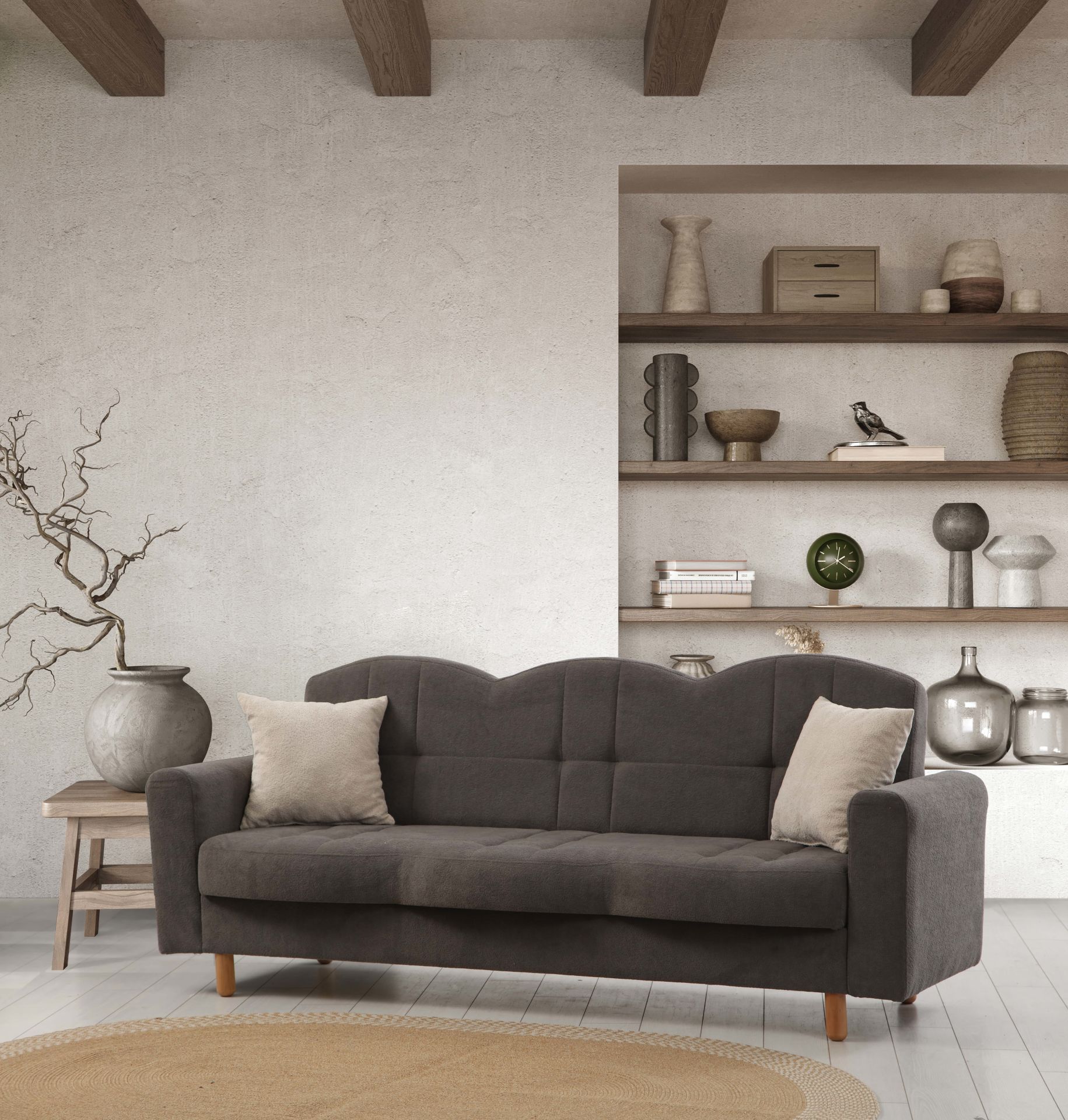 28 DNS oturma süngeri ve 22 DNS sırt süngeri, dengeli sertlikte rahat bir oturum deneyimi sunar. Sandıklı yapısı, depolama ihtiyacınızı karşılar ve yaşam alanınızı düzenli tutmanıza yardımcı olur. Tek kişilik yatak olabilme özelliği ile fonksiyonellik artırılır.