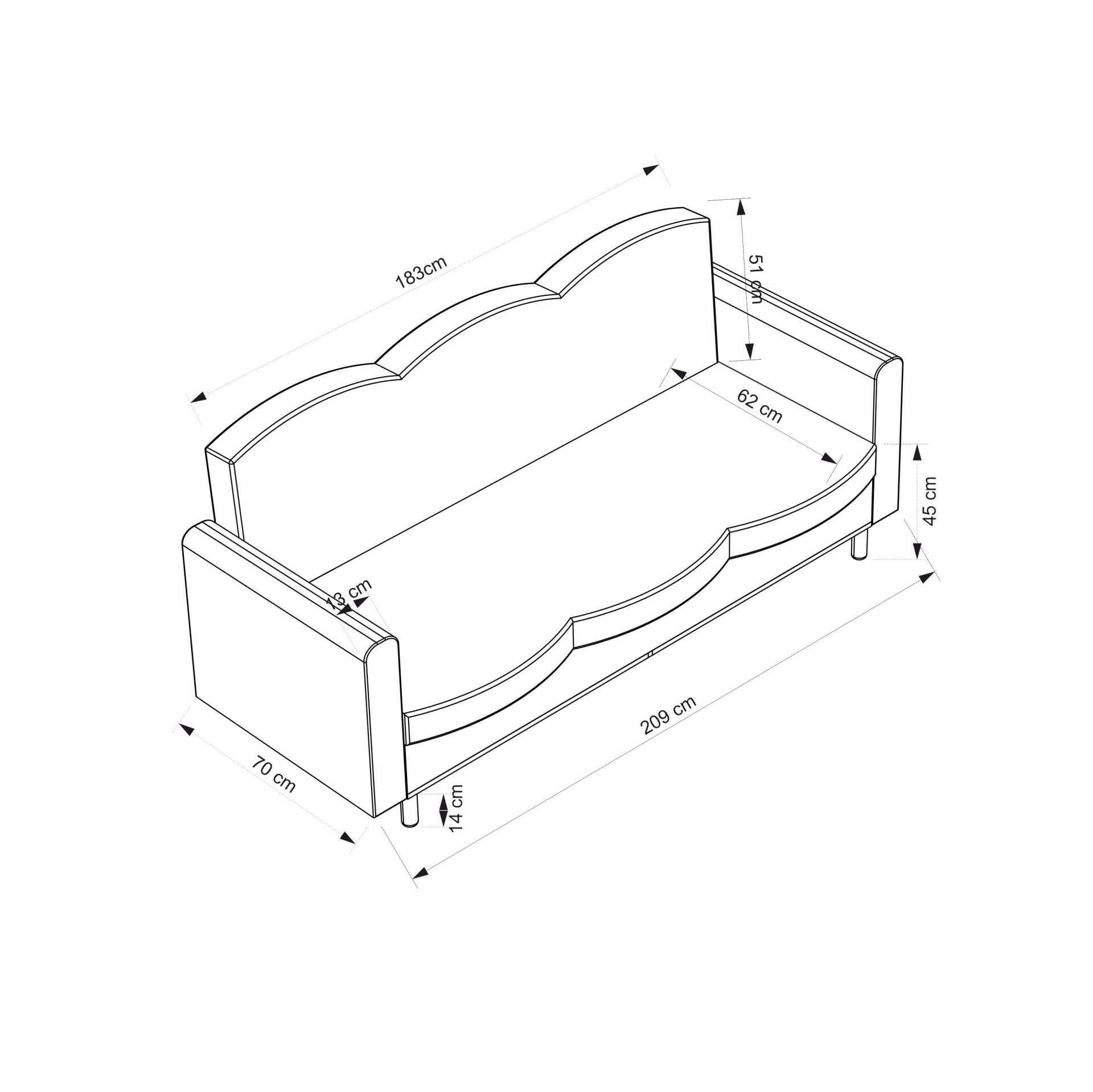 - Geniş ölçüler: 209 cm genişlik, 70 cm derinlik, 96 cm yükseklik.