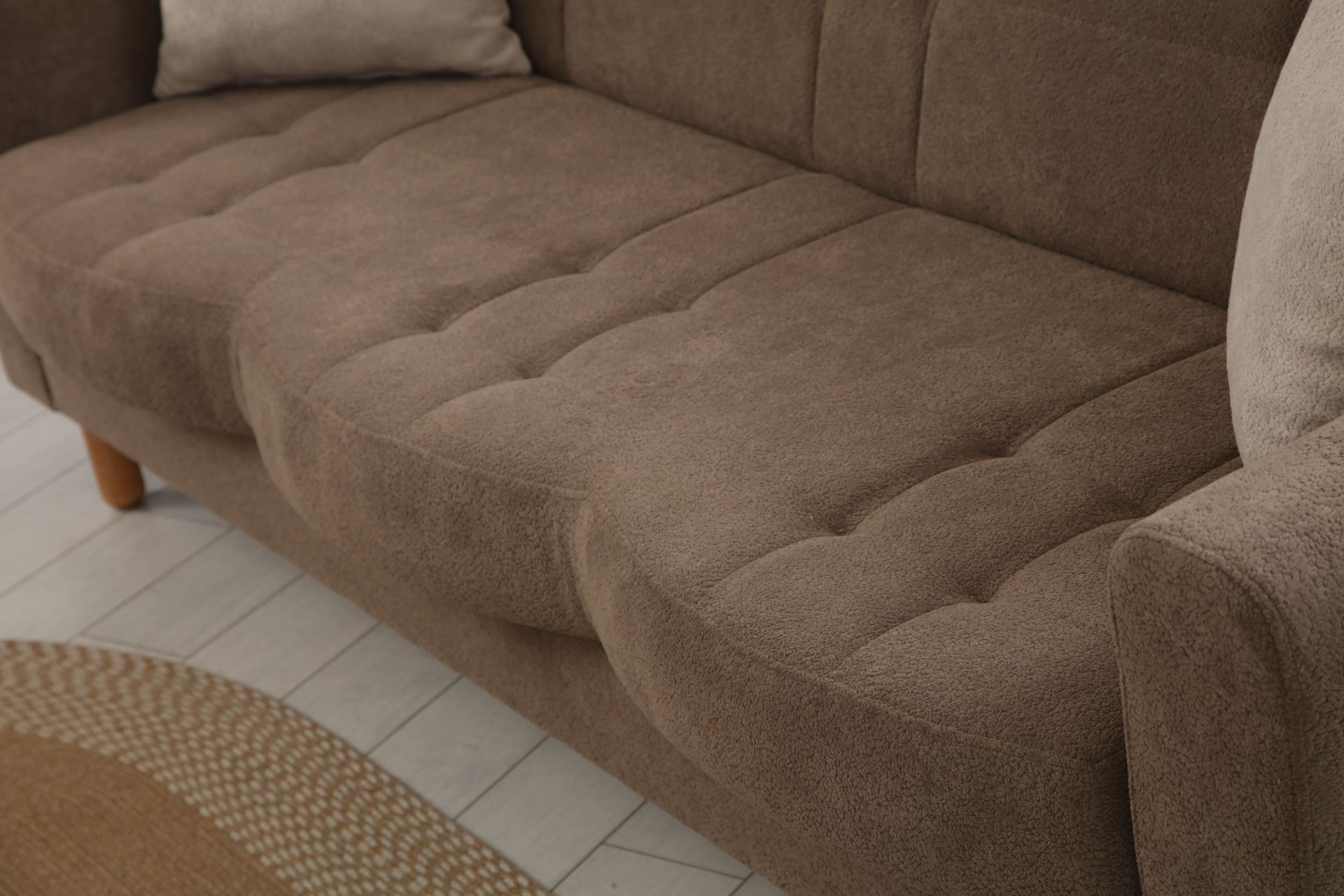 28 DNS oturma süngeri ve 22 DNS sırt süngeri, dengeli sertlikte rahat bir oturum deneyimi sunar. Sandıklı yapısı, depolama ihtiyacınızı karşılar ve yaşam alanınızı düzenli tutmanıza yardımcı olur. Tek kişilik yatak olabilme özelliği ile fonksiyonellik artırılır.