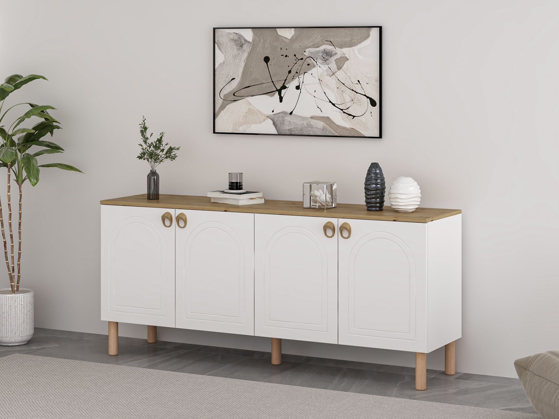 Lotus Bohem Tarz Konsol - Beyaz/Artisan, yüksek kaliteli melamin kaplı 18 mm yonga levhadan üretilmektedir.
