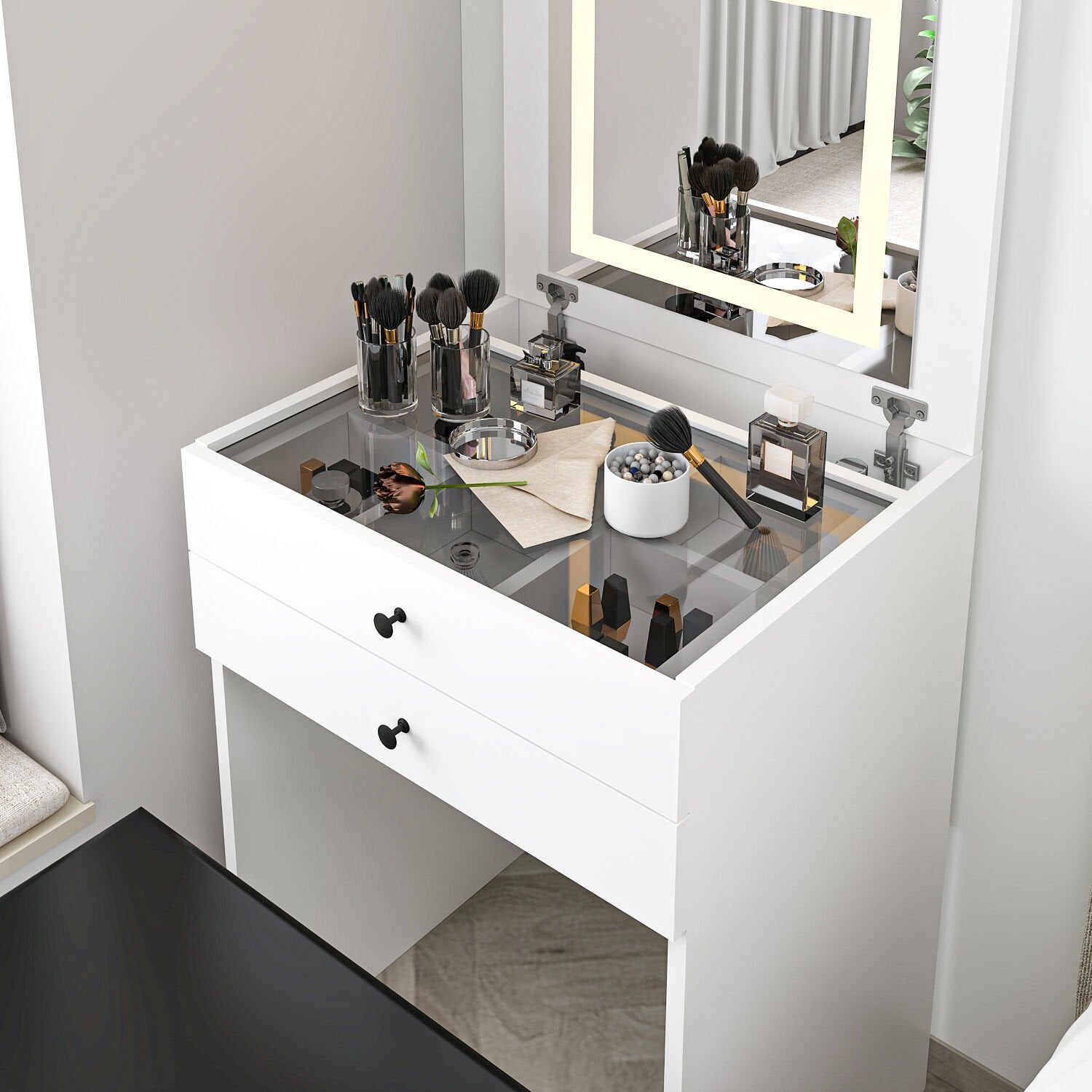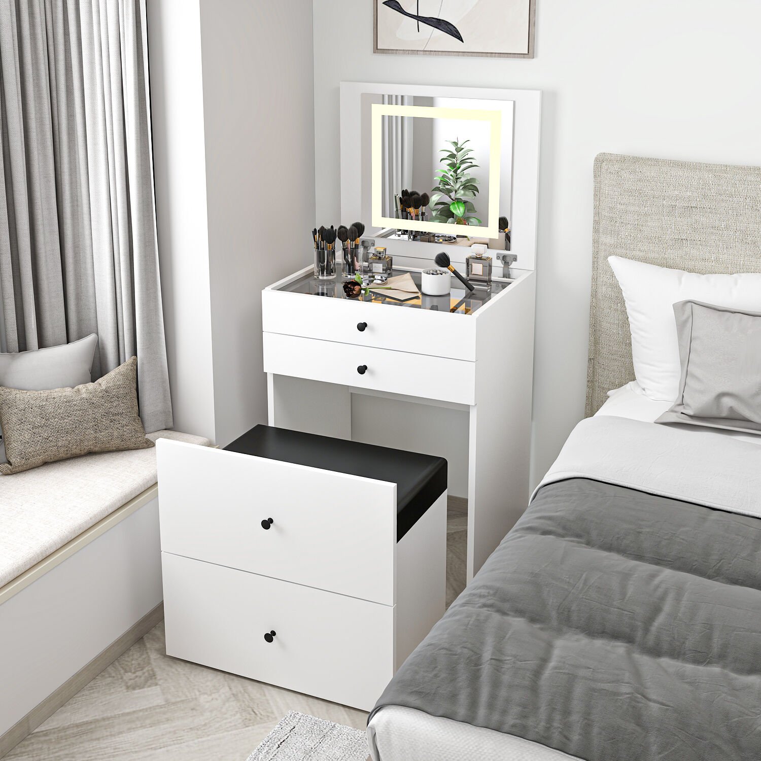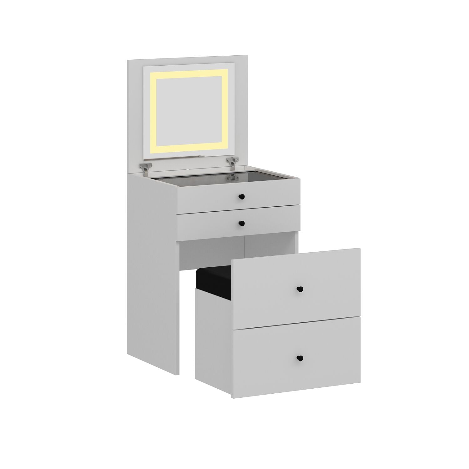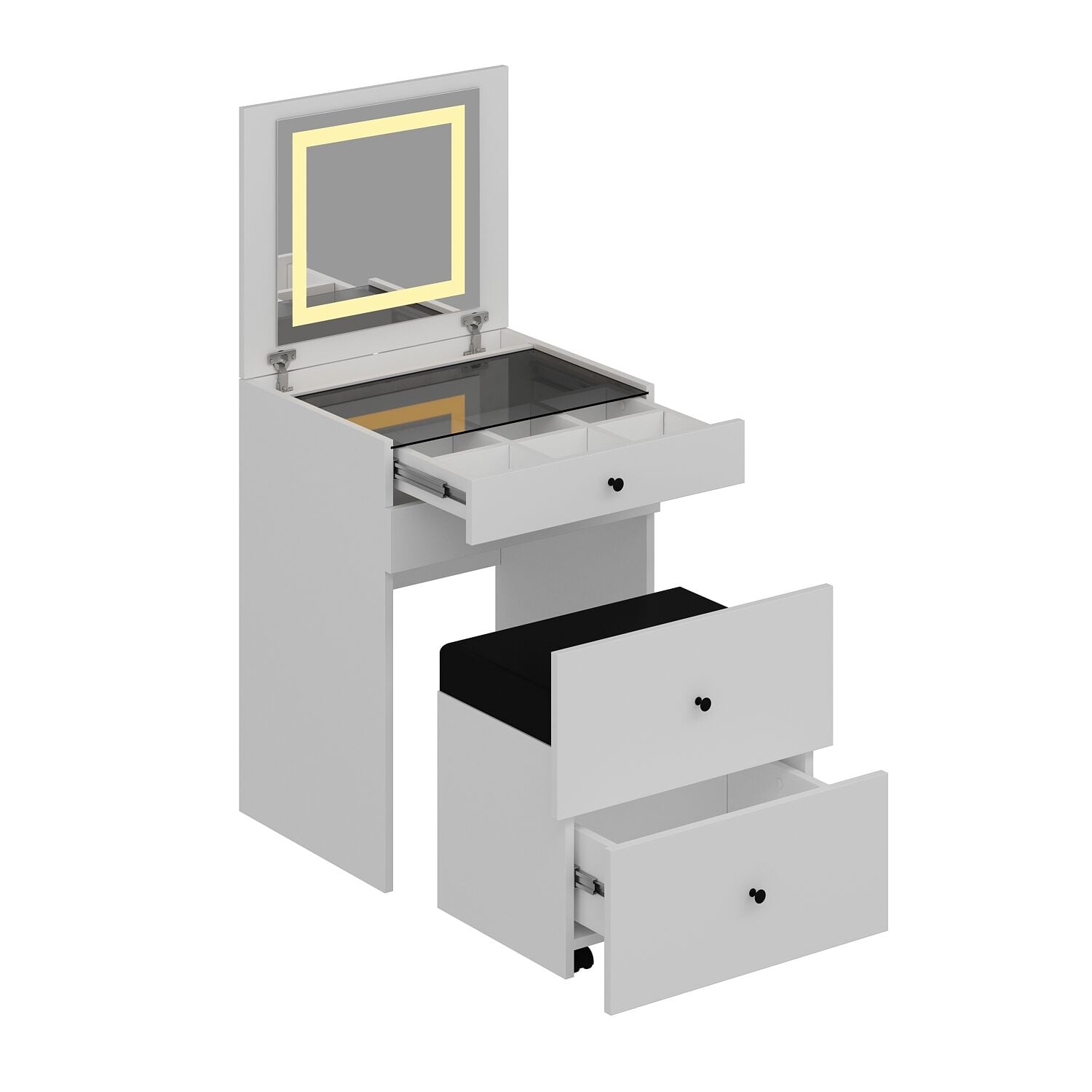 Luna Gizli Puflu Led Aynalı Makyaj Masası - Beyaz