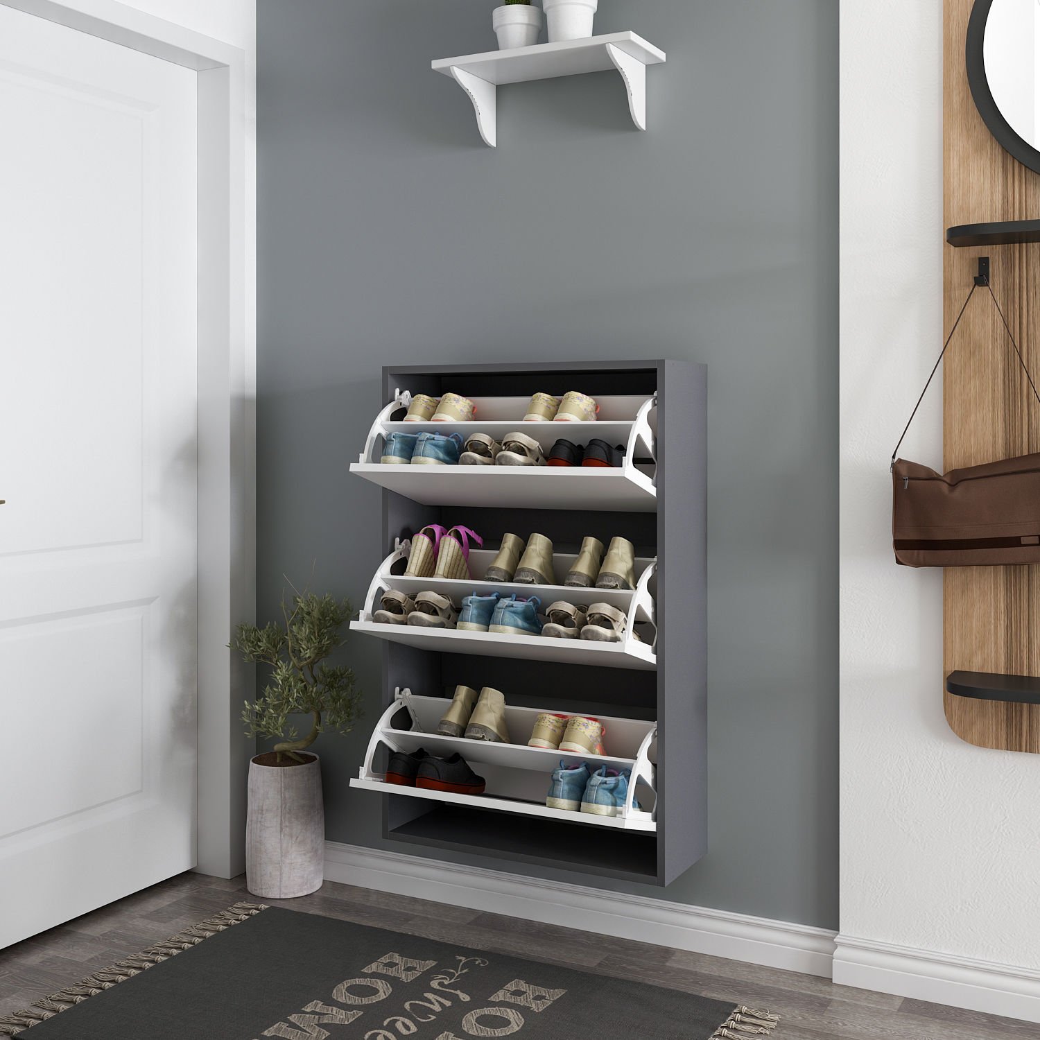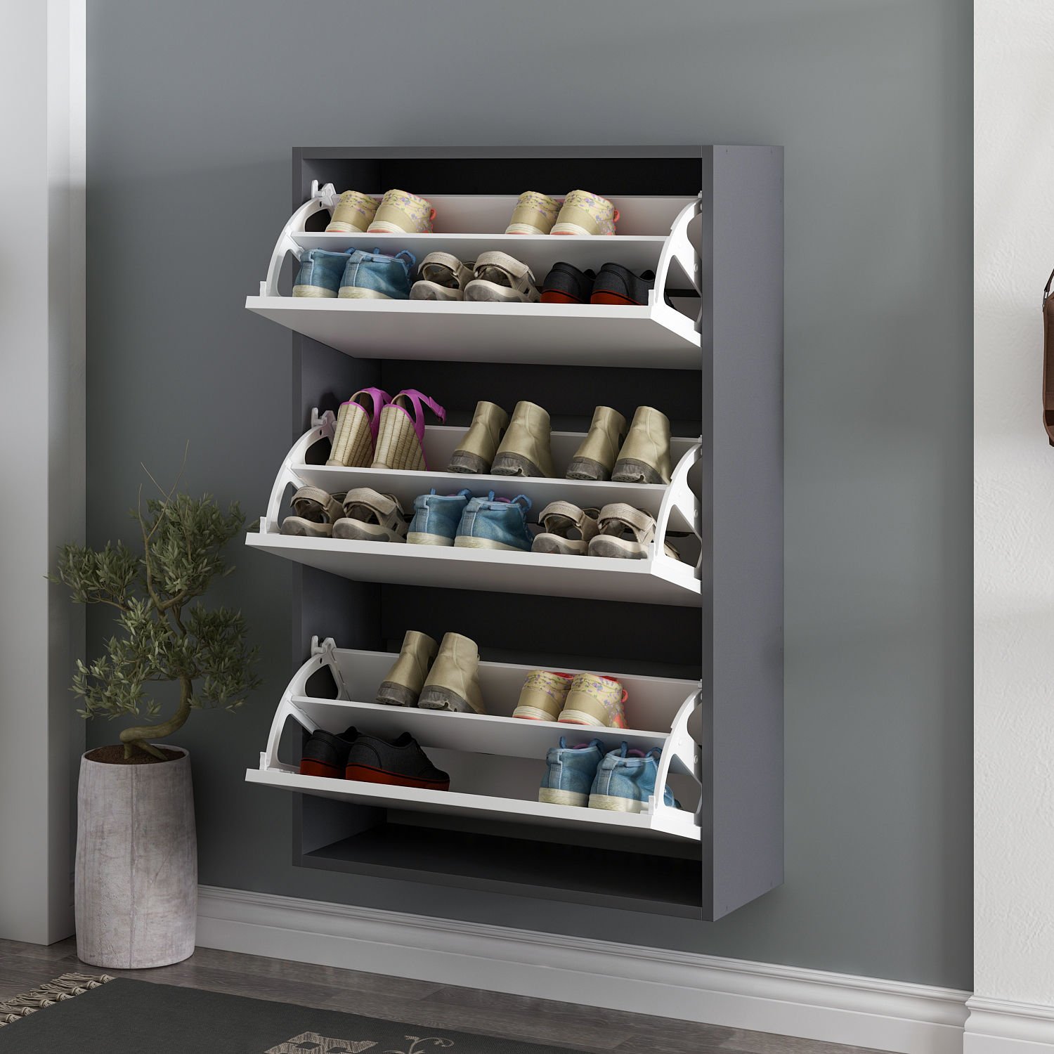 Lupa Düşer Kapaklı 3 Bölmeli Ayakkabılık – Antrasit