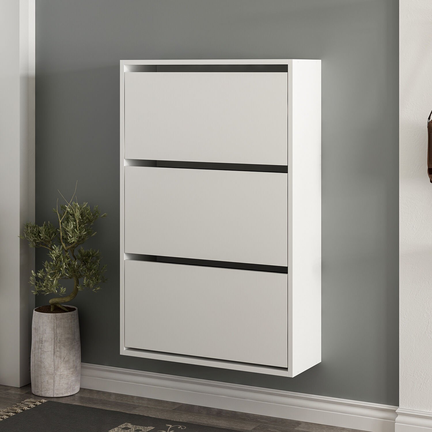 Evinizin girişinde düzen ve fonksiyonellik sağlayan Lupa Düşer Kapaklı 3 Bölmeli Ayakkabılık – Beyaz, kompakt boyutu ve sade tasarımıyla dikkat çeker.