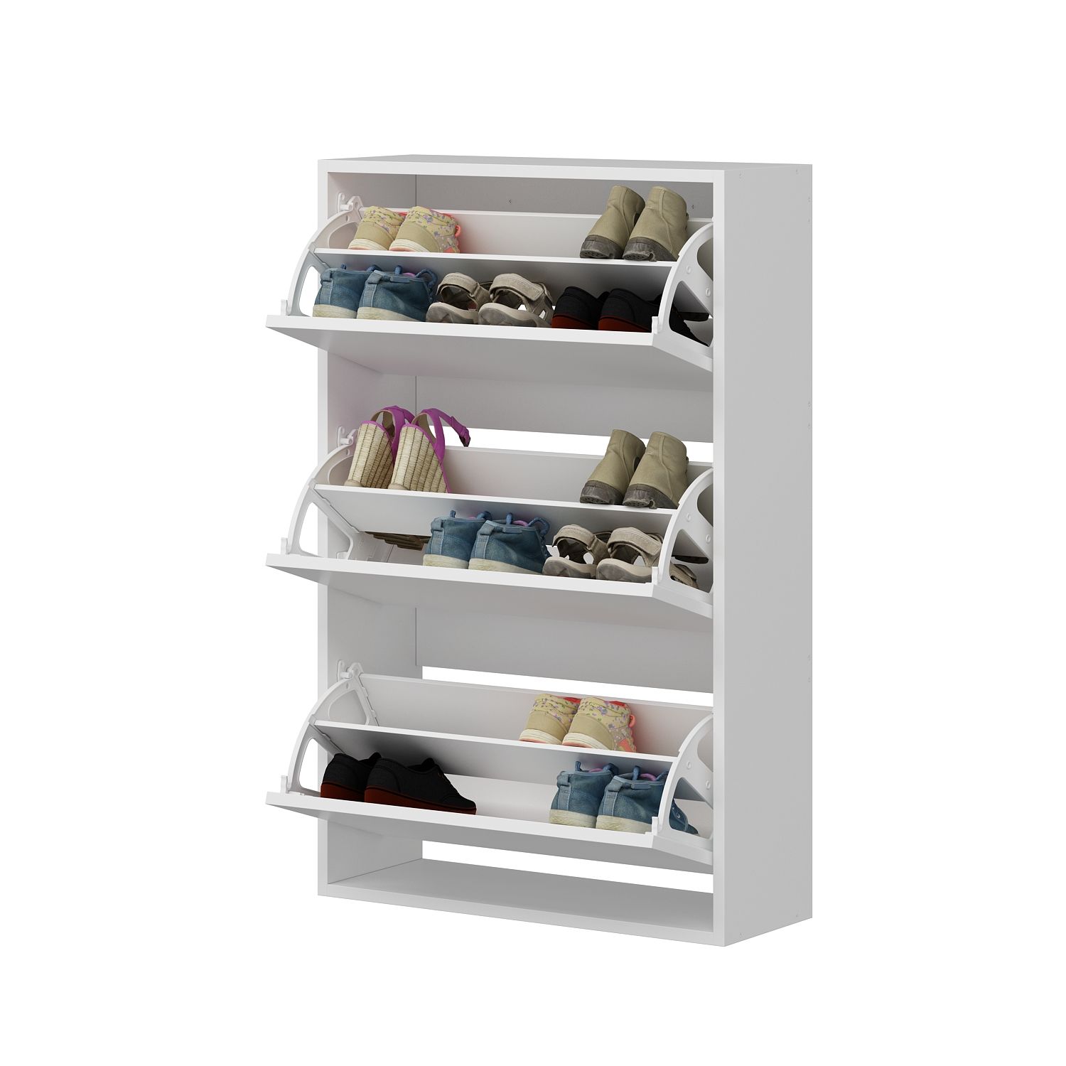 Lupa Düşer Kapaklı 3 Bölmeli Ayakkabılık – Beyaz