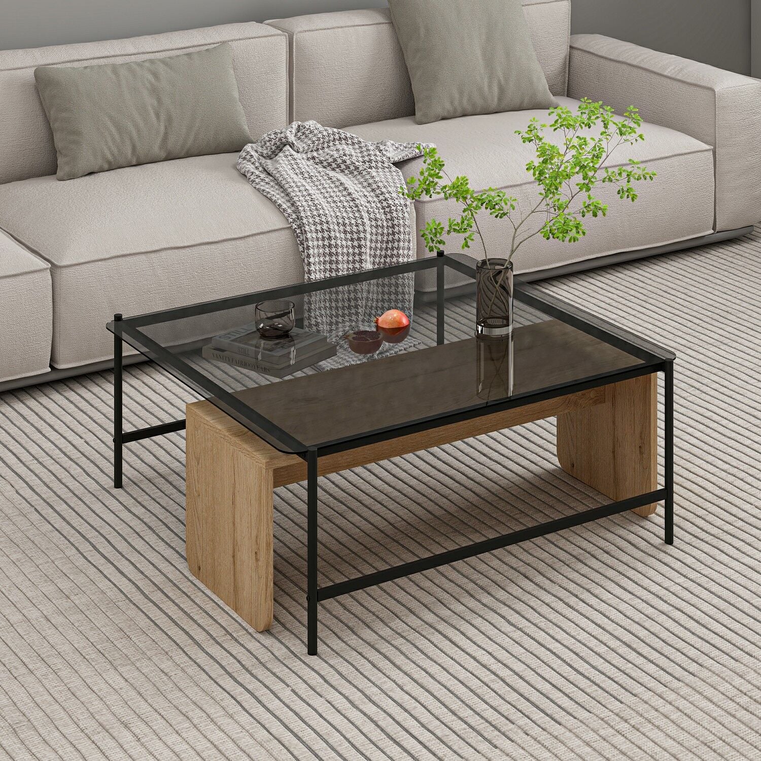 Maren Orta Sehpa Camlı Metal Ayaklı-Sepet